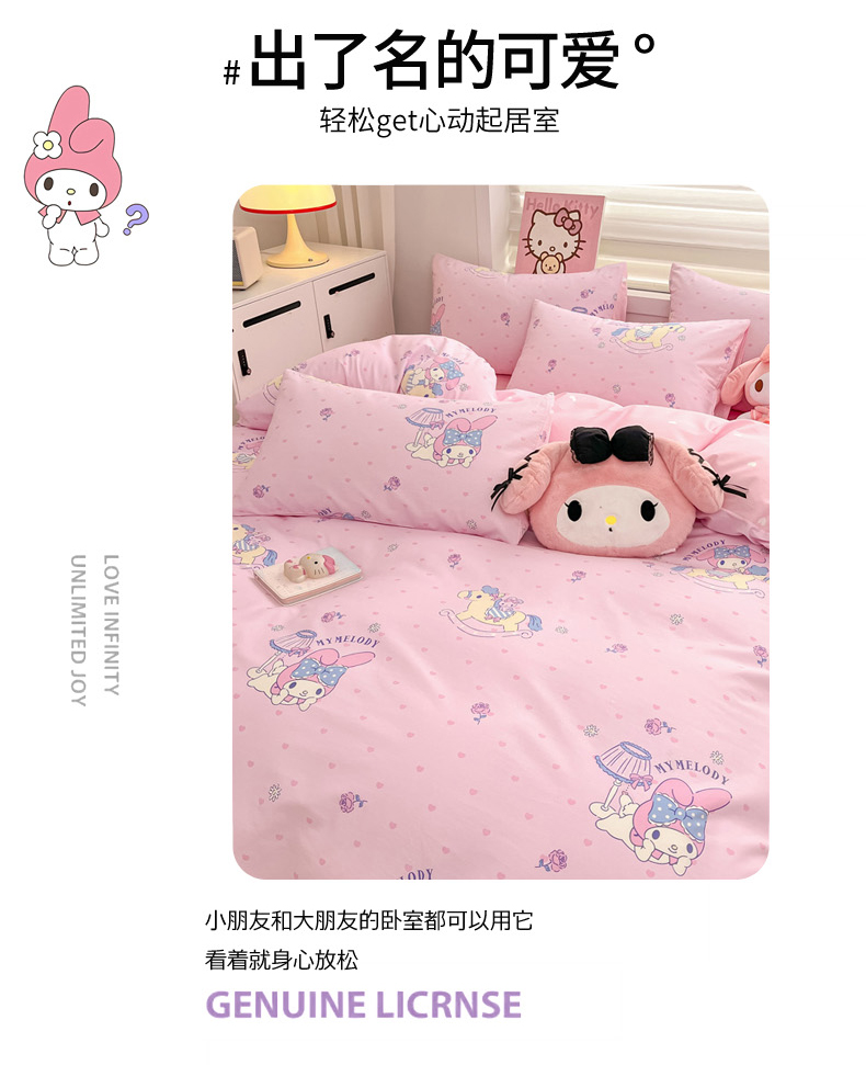 当前位置: 91家纺网 > 商品网购 > 床品套件 > 四件套 > 全棉普通四件套 > 暮思家居 2025新款正版授权三丽鸥全棉纯棉四件套系列-第三批 美乐蒂木马