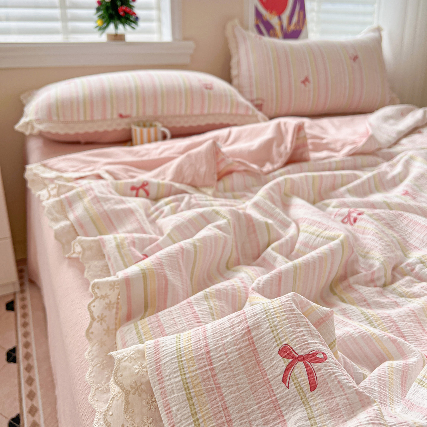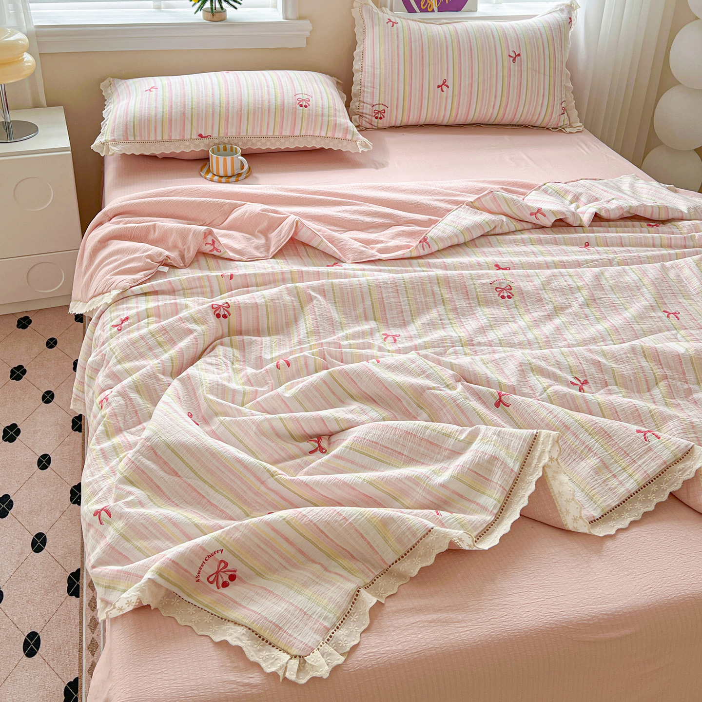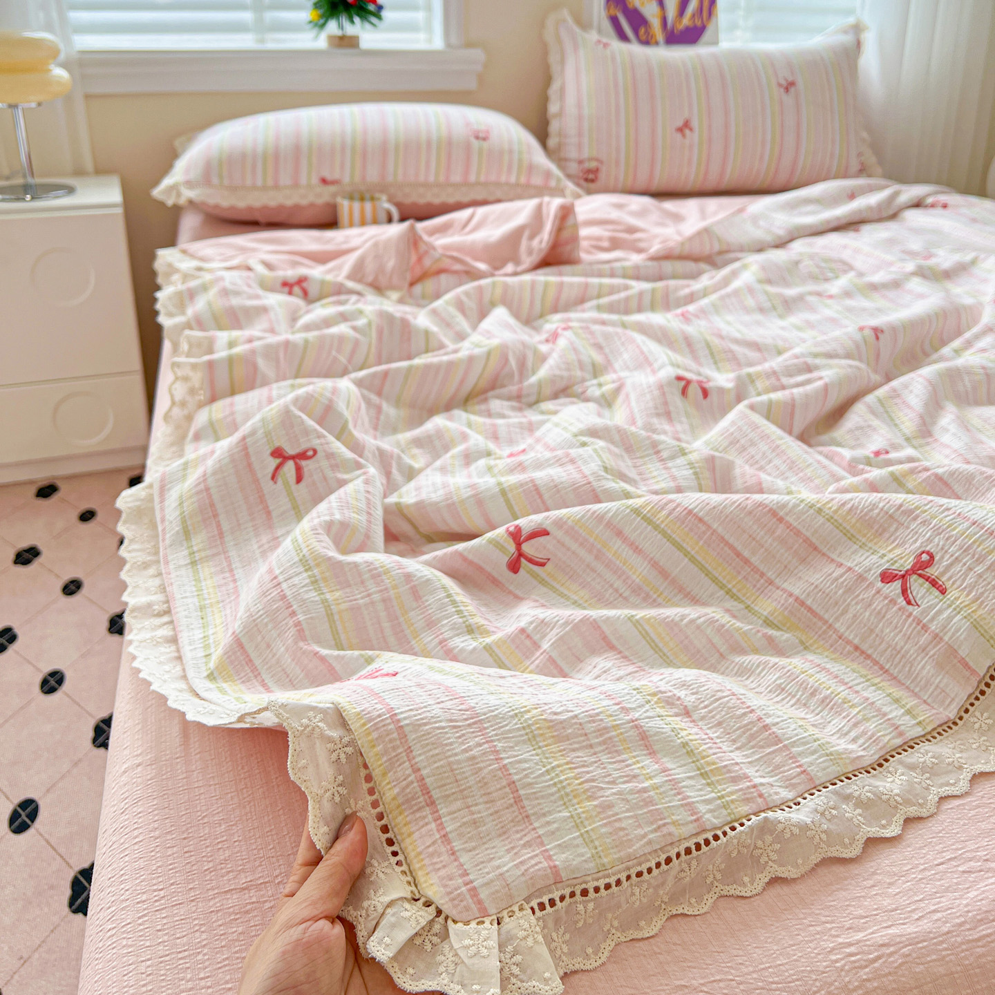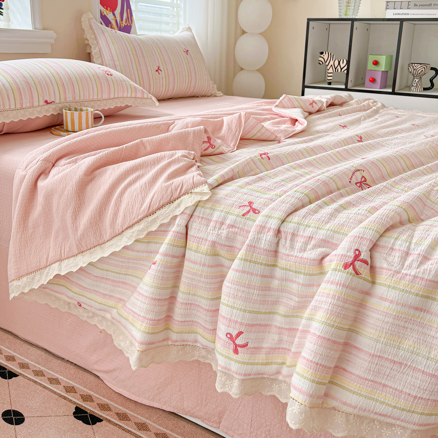 2025新款云感皱皱纱全棉花边款夏被四件套 奶油泡芙
