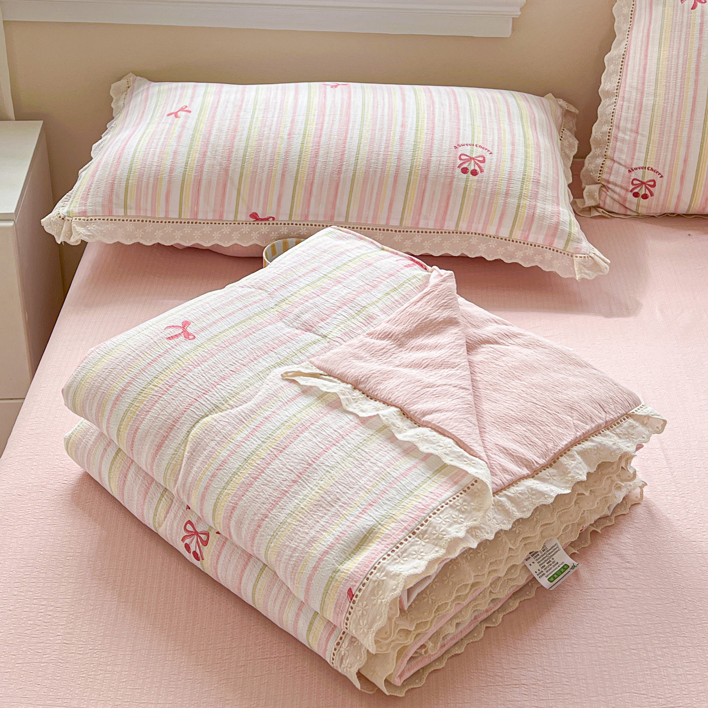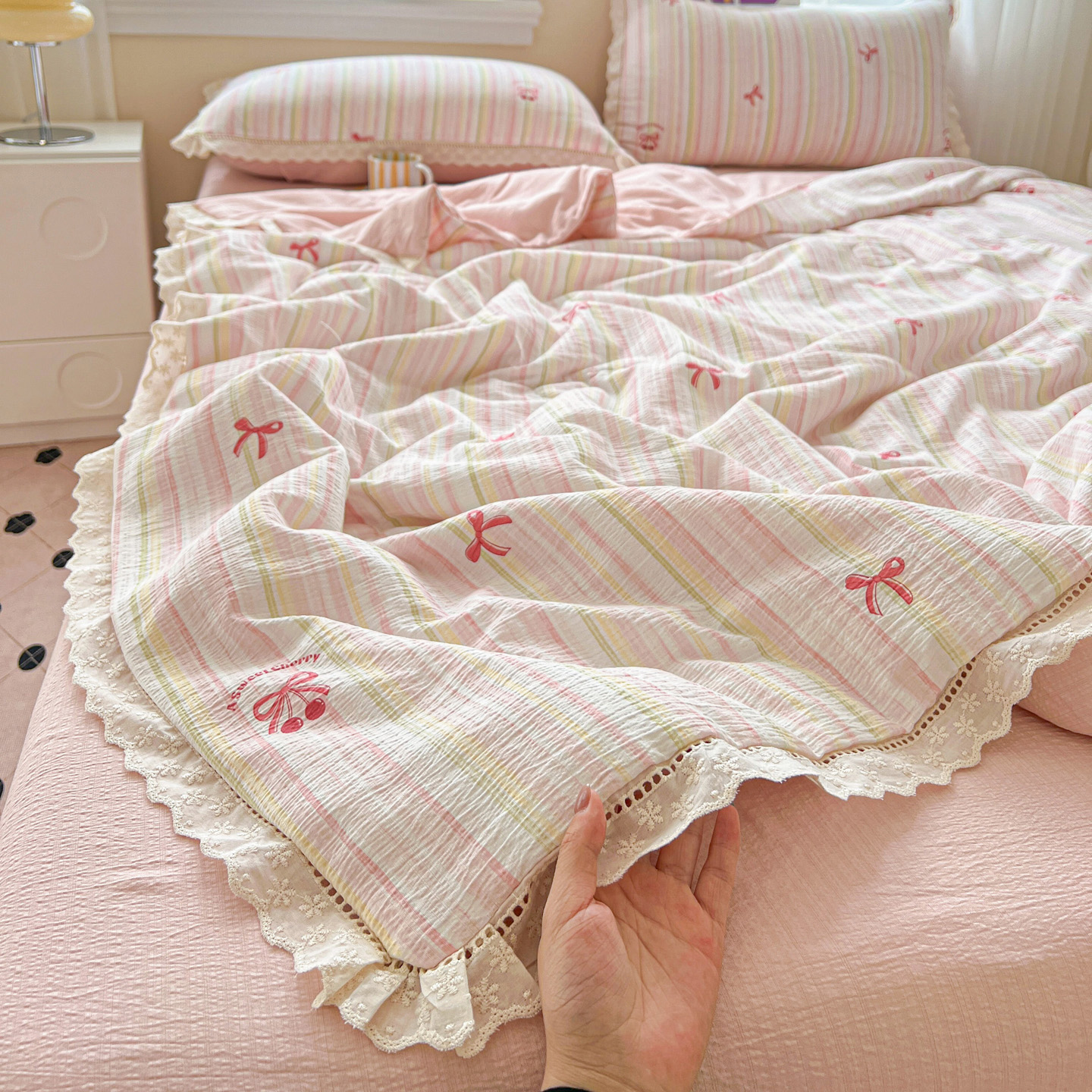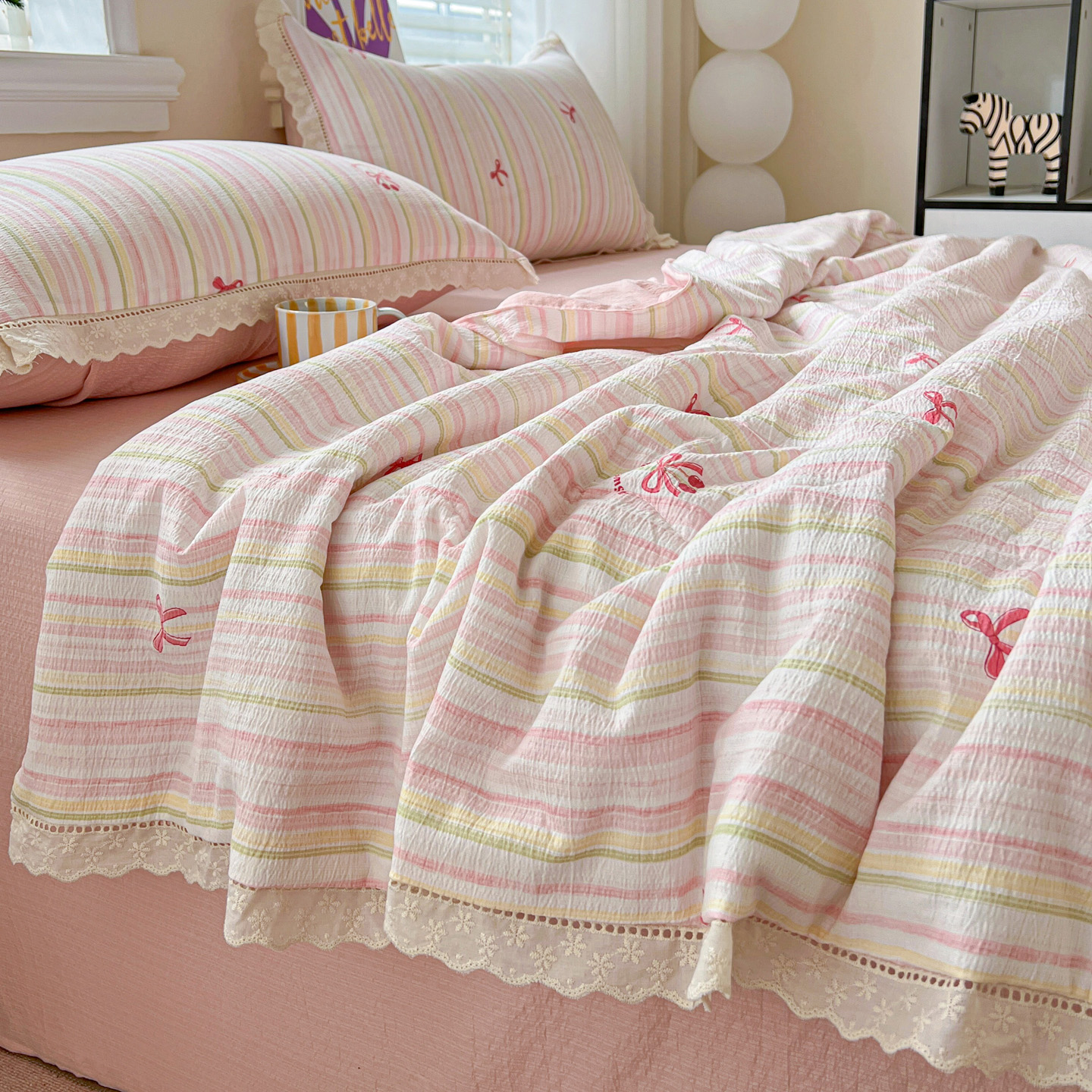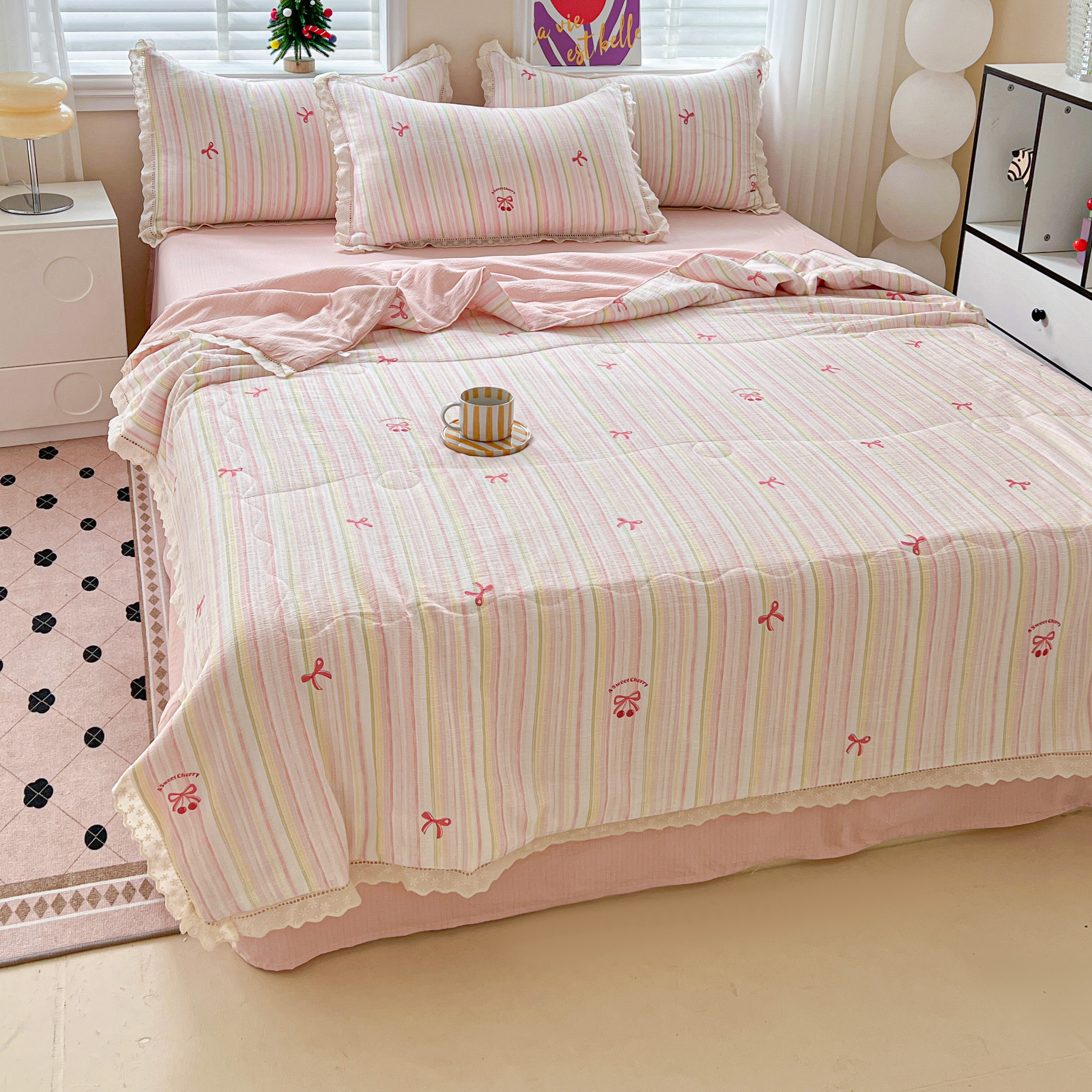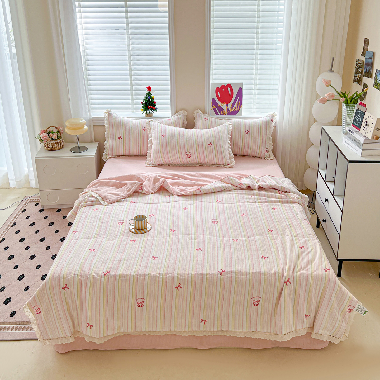 2025新款云感皱皱纱全棉花边款夏被四件套 奶油泡芙
