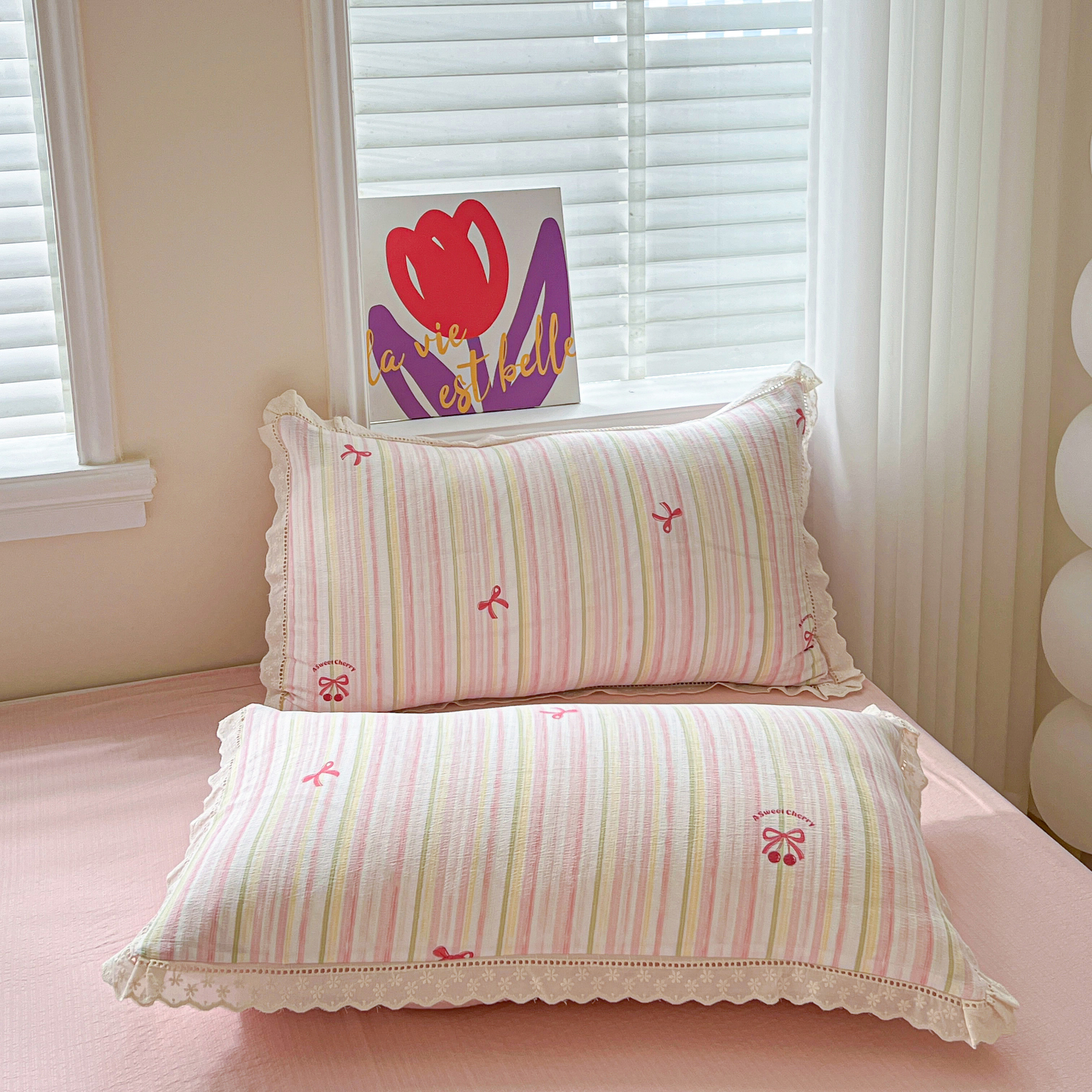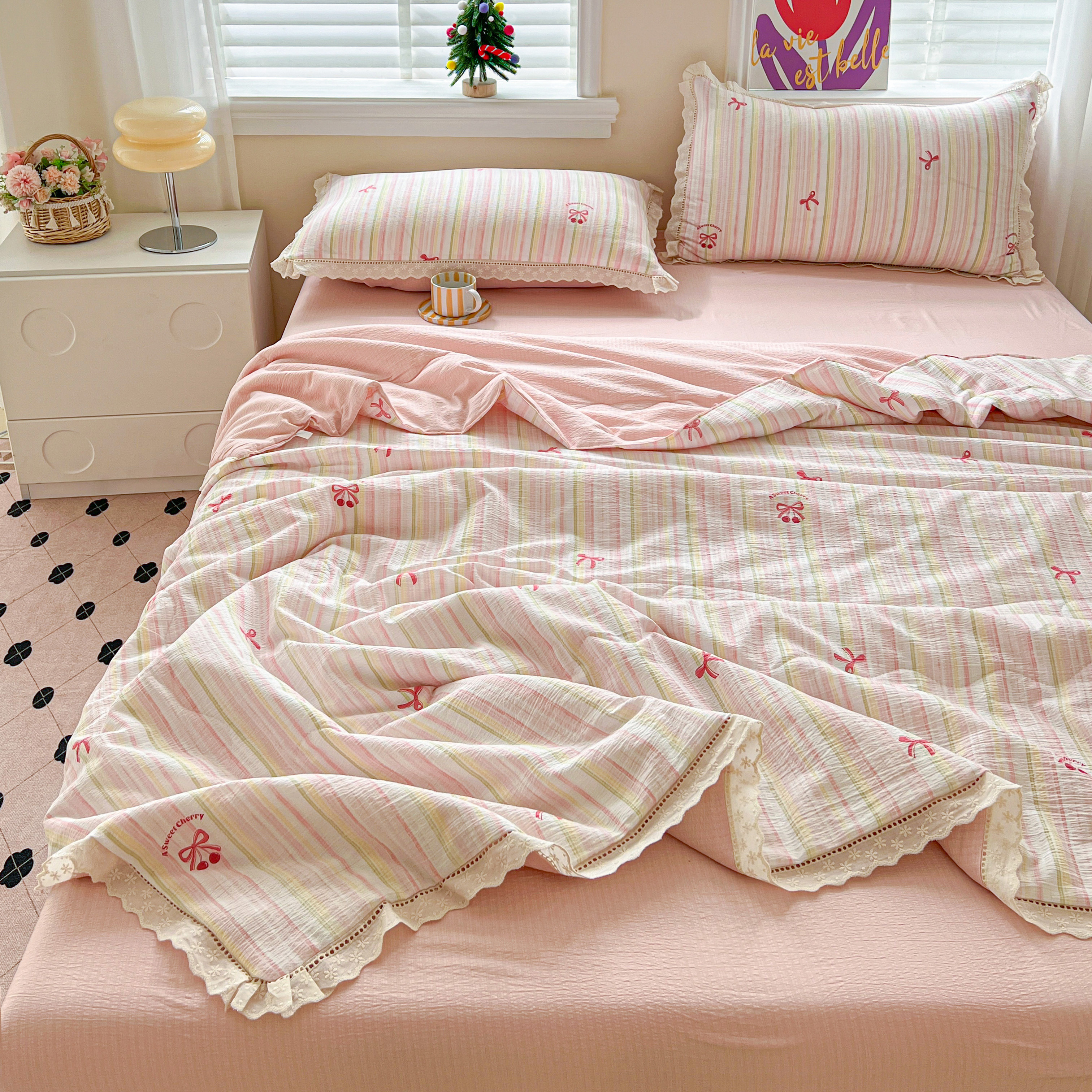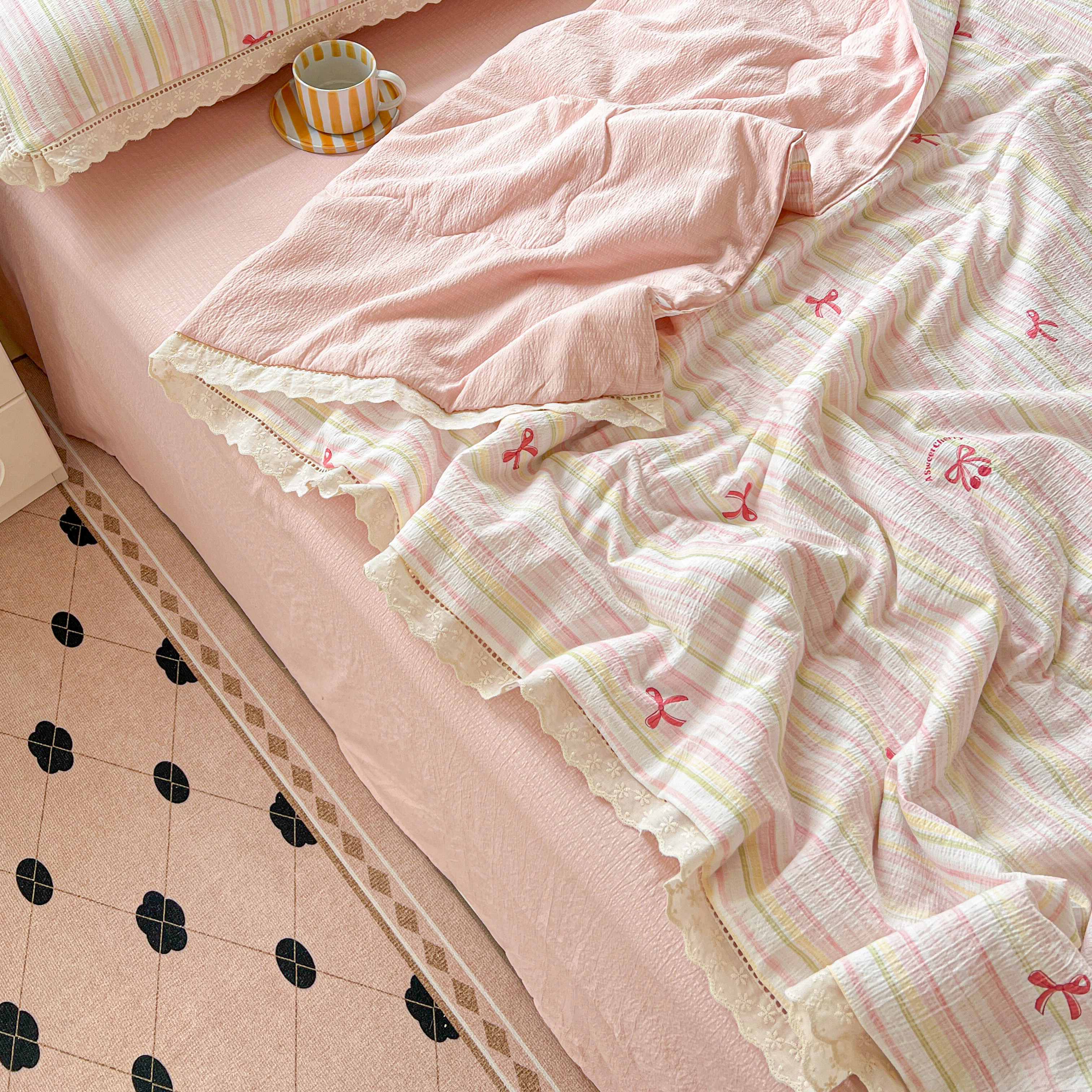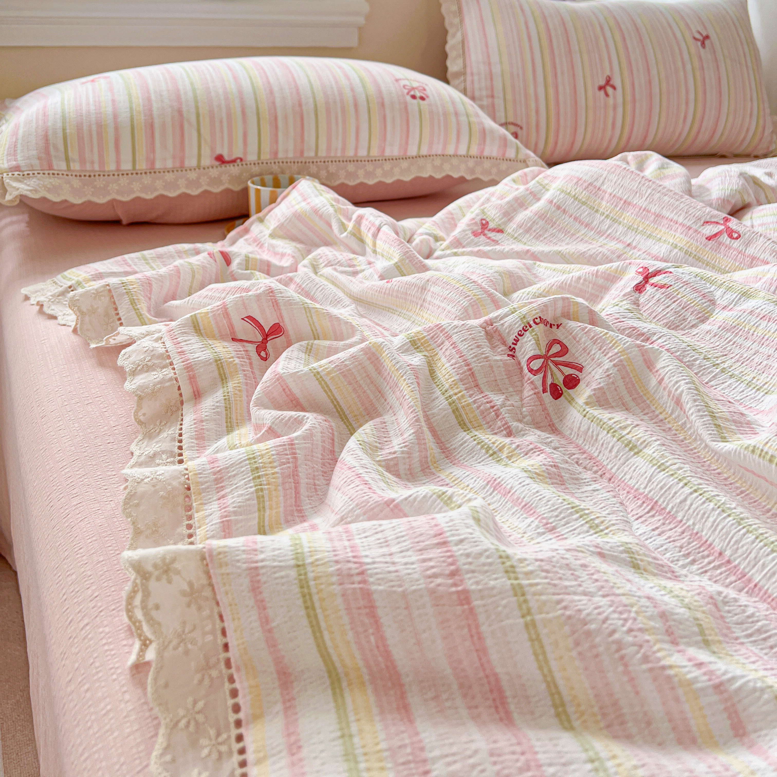 2025新款云感皱皱纱全棉花边款夏被四件套 奶油泡芙