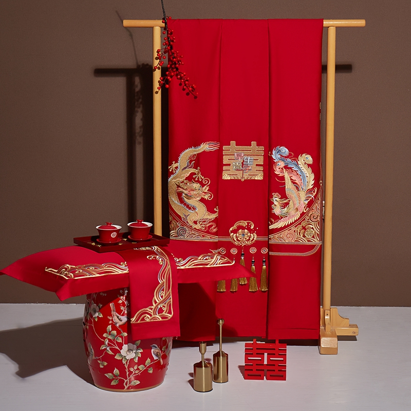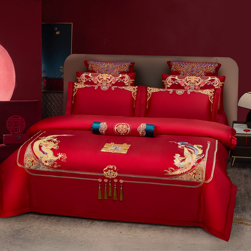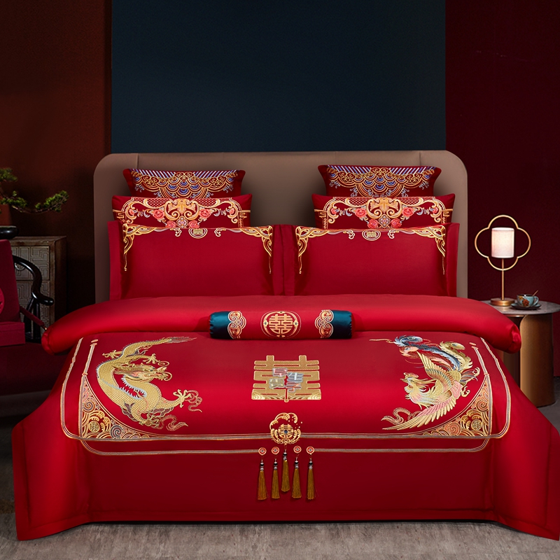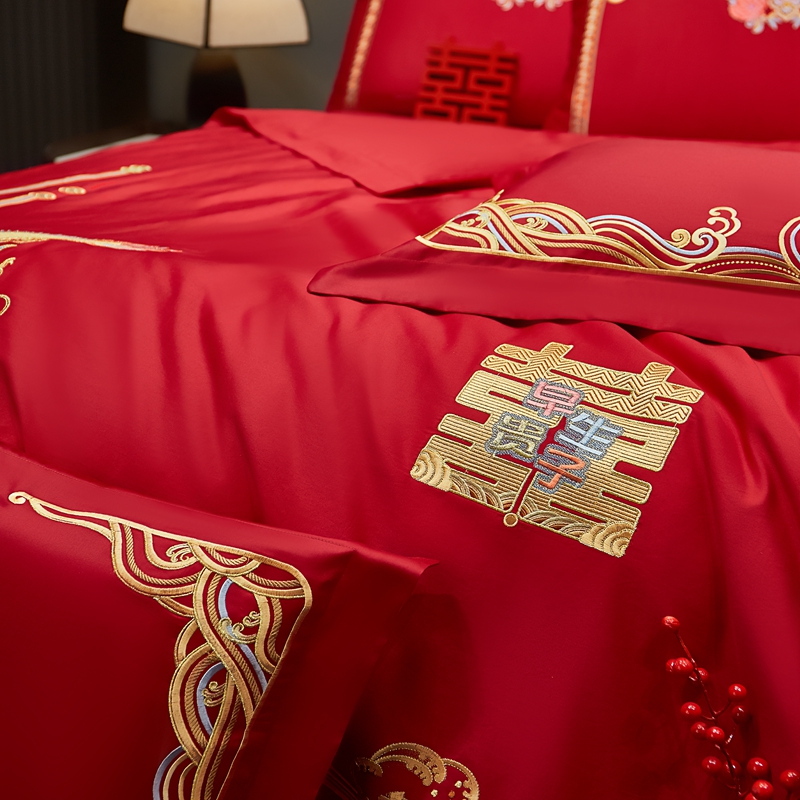 当前位置: 91家纺网 > 商品网购 > 床品套件 > 四件套 > 婚庆四件套 > 布乐意 2025新款全棉长绒棉贡缎提花全工艺喷气重工新中式绣花大红婚庆四件套多件套直播早生贵子