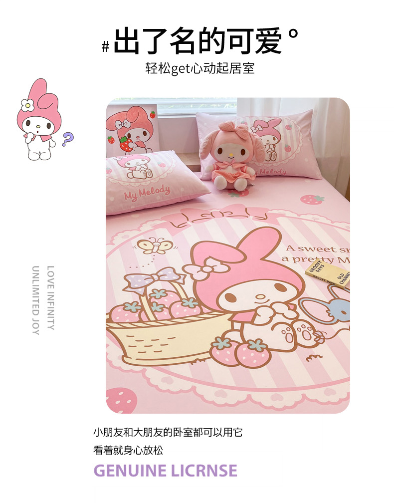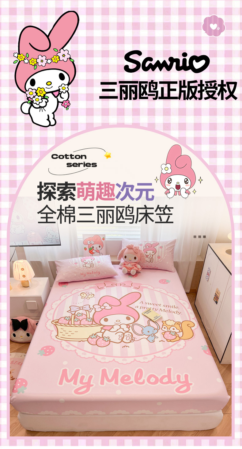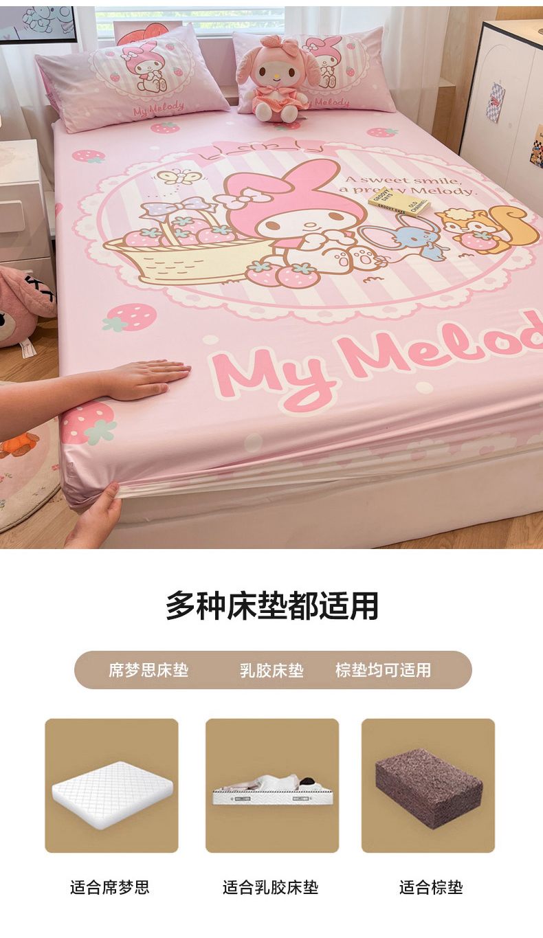 • 91家纺网 家纺一手货源 找家纺 暮思家居 2025新款正版授权三丽鸥大阪全棉数码印花纯棉单品床笠床笠单件单床笠(专版花型) 棉A版-草莓美乐蒂