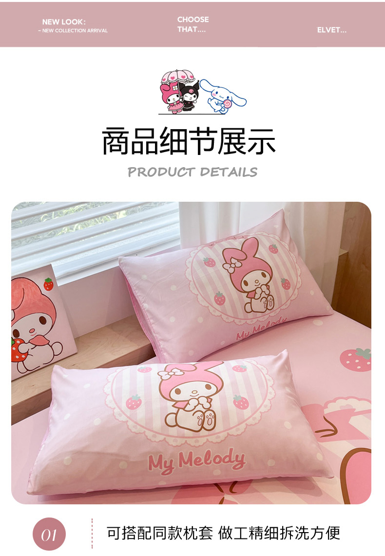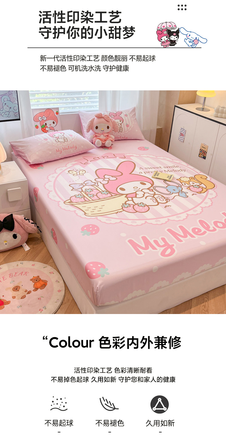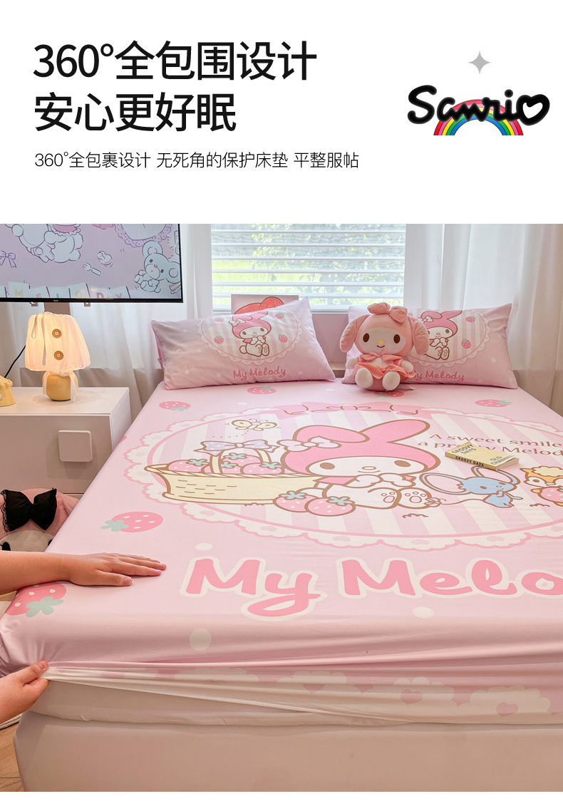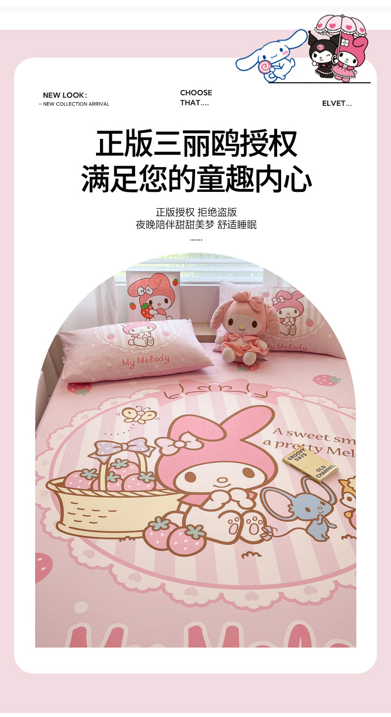 • 91家纺网 家纺一手货源 找家纺 暮思家居 2025新款正版授权三丽鸥大阪全棉数码印花纯棉单品床笠床笠单件单床笠(专版花型) 棉A版-草莓美乐蒂