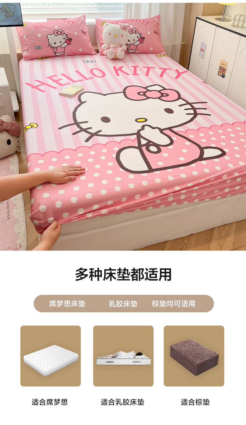 暮思家居 2025新款正版授权三丽鸥大阪全棉数码印花纯棉单品床笠床笠单件单床笠(专版花型) 棉A版-条纹KT