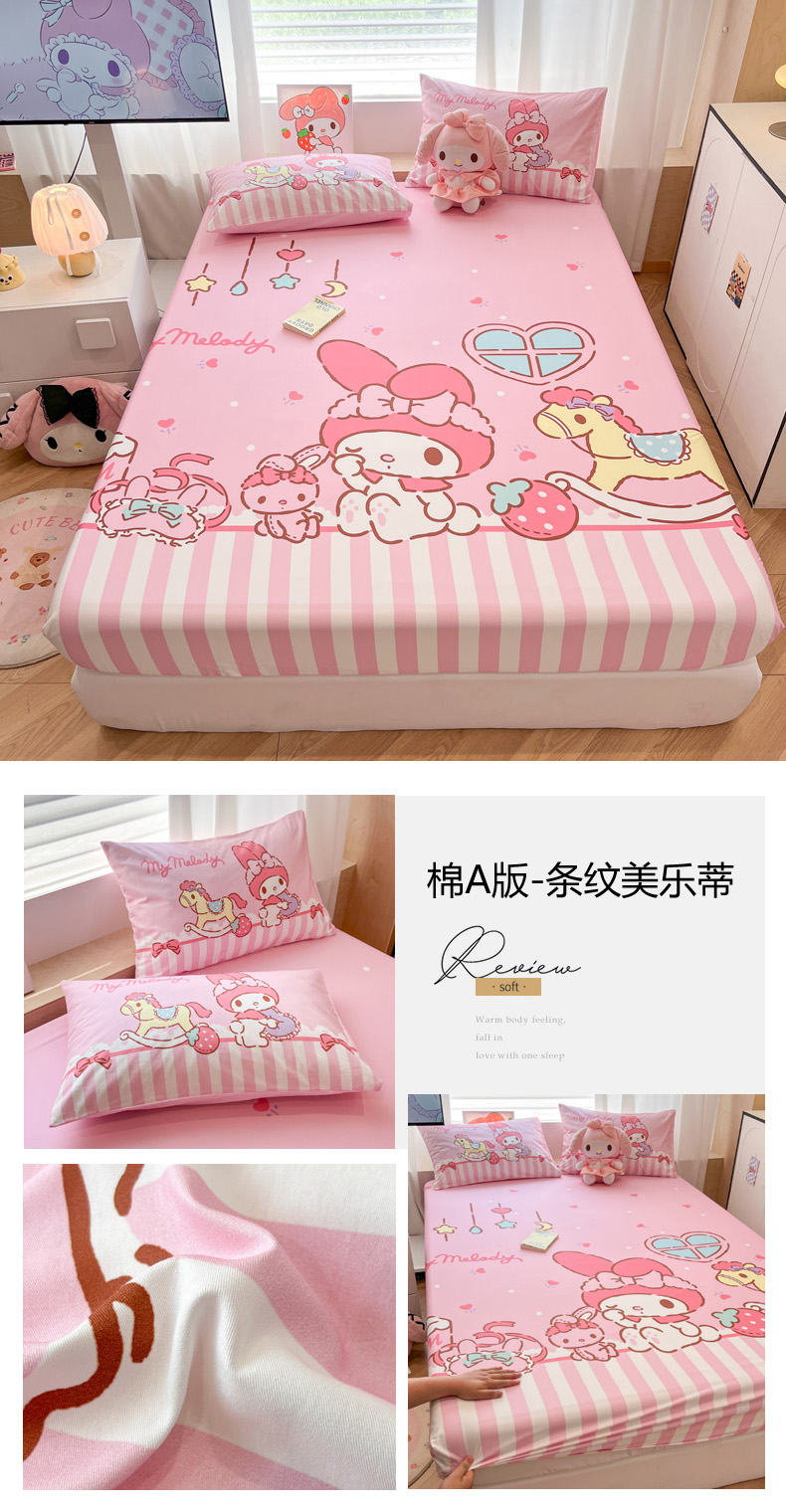 • 91家纺网 家纺一手货源 找家纺 暮思家居 2025新款正版授权三丽鸥大阪全棉数码印花纯棉单品床笠床笠单件单床笠(专版花型) 棉A版-条纹KT