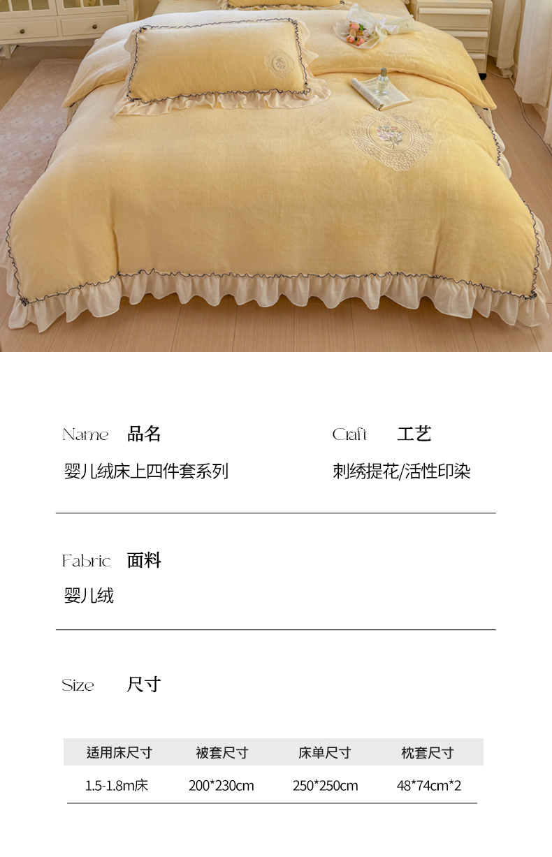 (总)橘子家 2025轻奢法式花边公主风婴儿绒牛奶绒高克重四件套,爱恋,安妮,茶野,风铃草,花间梦,花间梦,花满园,花香,幻蝶,可可草莓,蔓可,蜜桔,浅夕,乔依,甜梦,甜心,晚风,小熊抱抱,云漫,枝蔓,心动