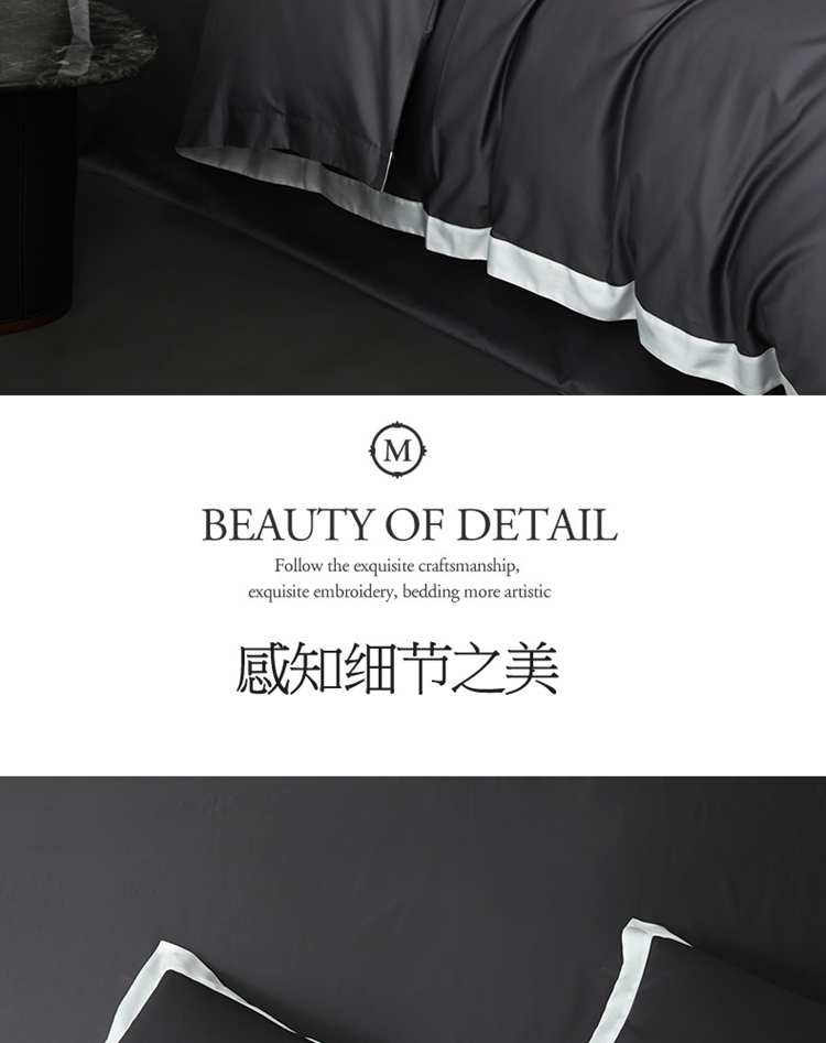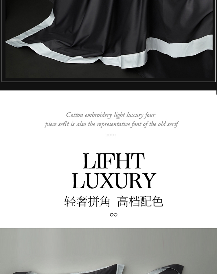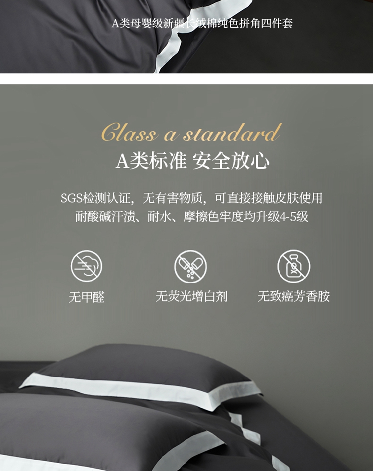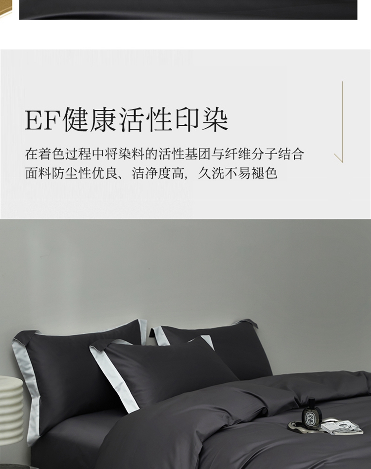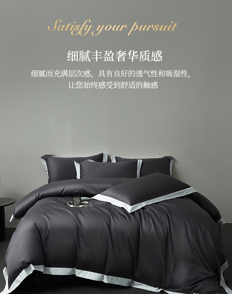 商品名称:柔觉家纺 新款50*50双股长绒棉纯色拼角四件套 雅-帝王灰
