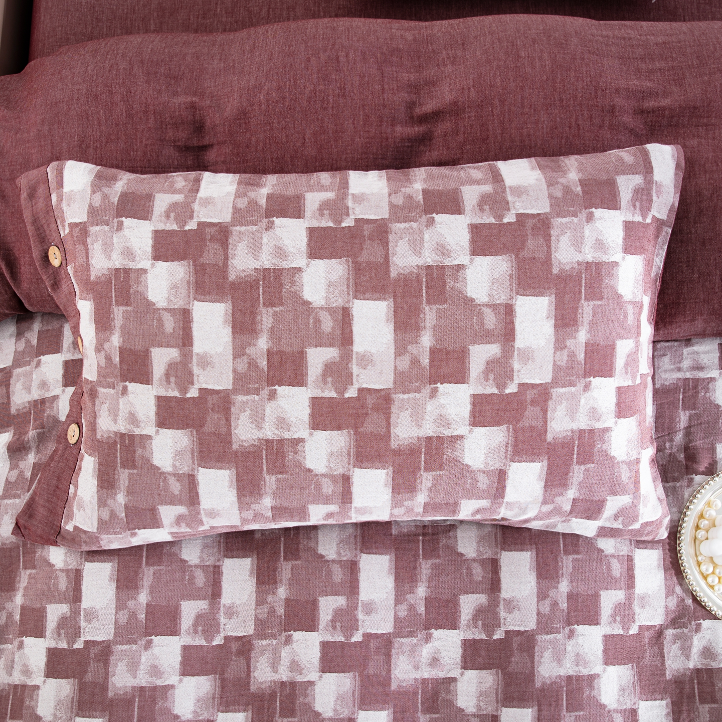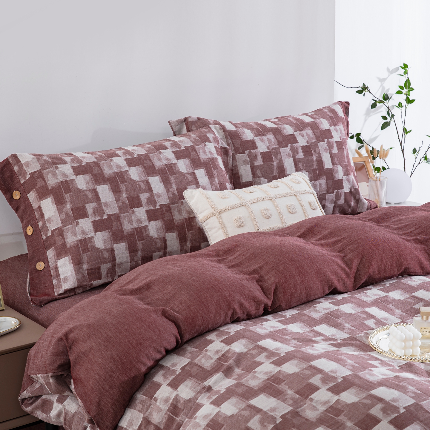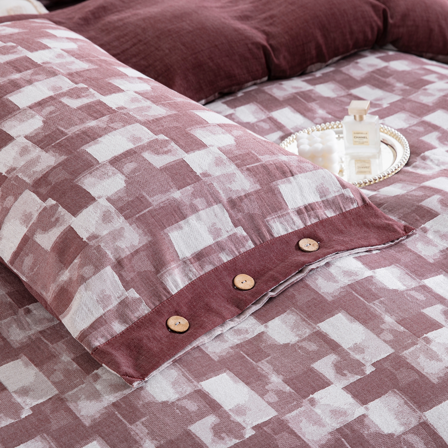 双层纱家居 2025新款全棉色织提花四件套-都市万象 都市万象-豆沙