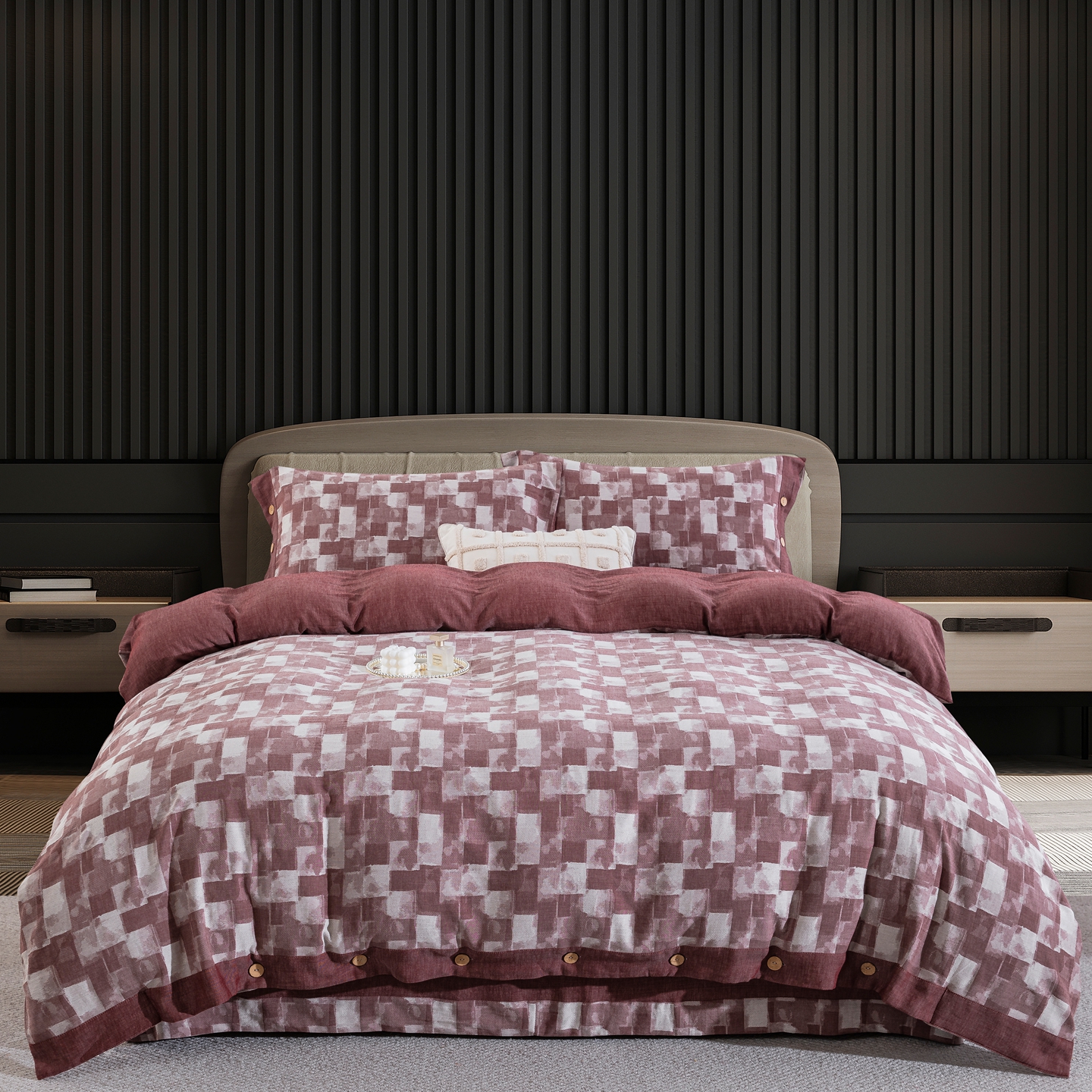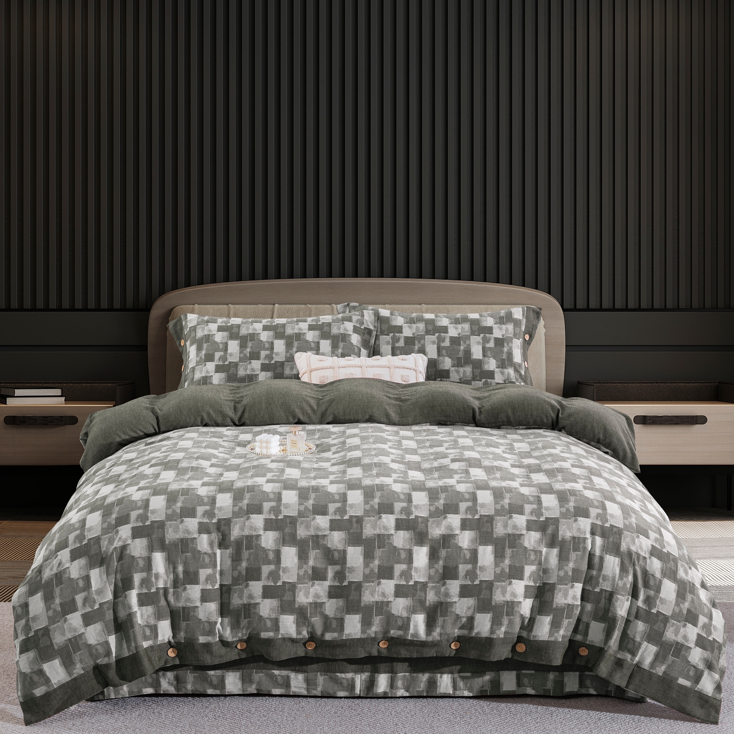 (总)双层纱家居 2025新款黑大格双层纱四件套,黑大格