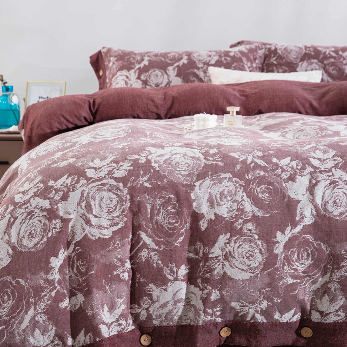 (总)双层纱家居 2025新款全棉色织提花四件套-玫瑰庄园