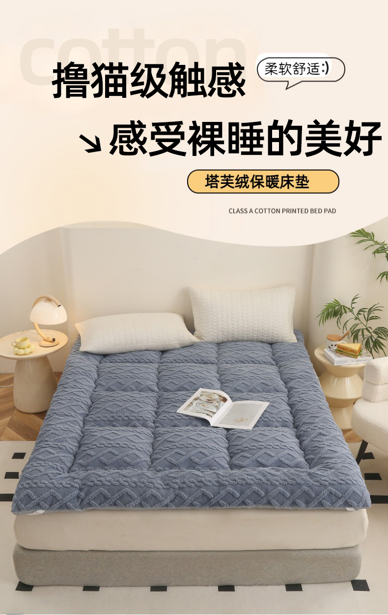 (总)承柔家纺 2025年新款加厚塔芙绒床垫床褥垫子,豆沙,灰色,绿色