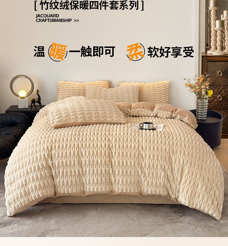 商品名称:(总)潮邦创意家居 2025冬季竹纹绒牛奶绒四件套-暖绒竹韵系列