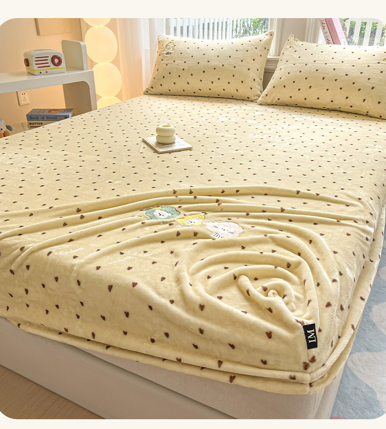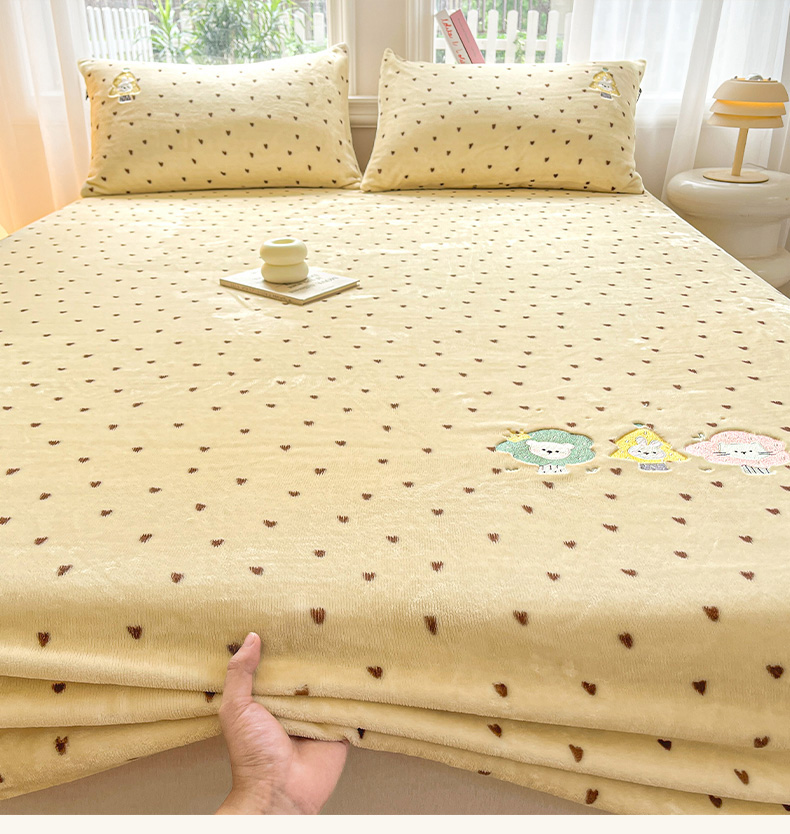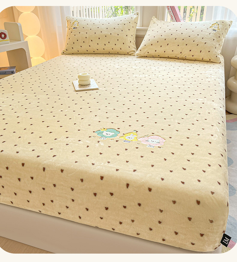 乐美家纺 2025新款A类高克重刺绣牛奶绒床笠三件套 萌宠派对