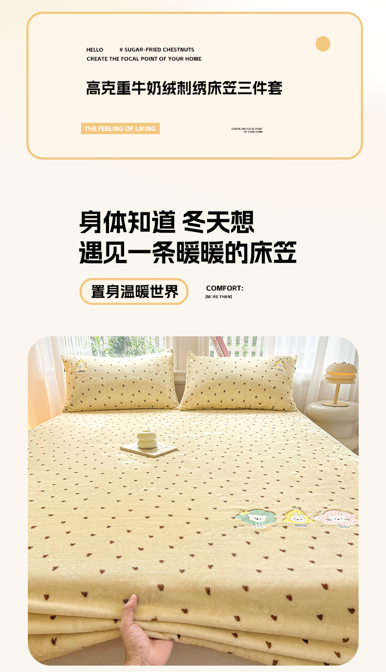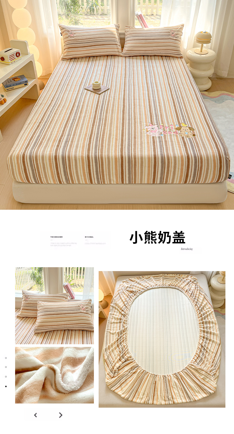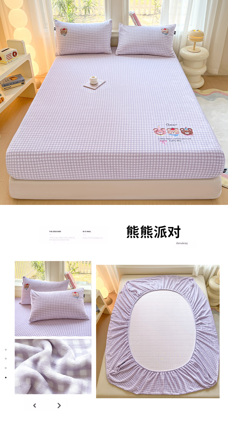 (总)乐美家纺 2025新款A类高克重刺绣牛奶绒床笠三件套,好朋狗,森林乐队,熊熊派对,小熊奶盖,萌宠派对,萝莉猫