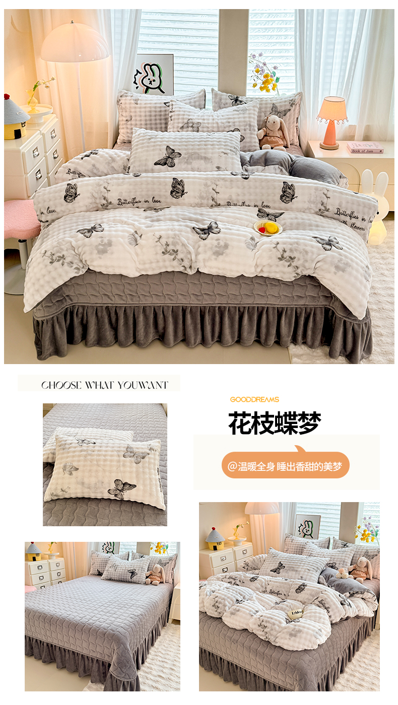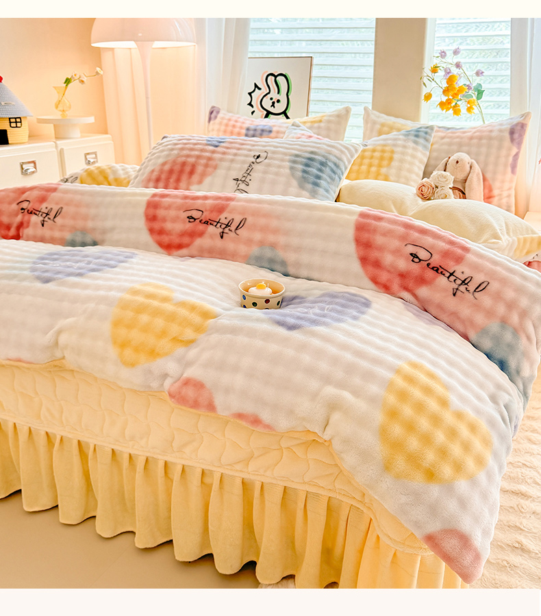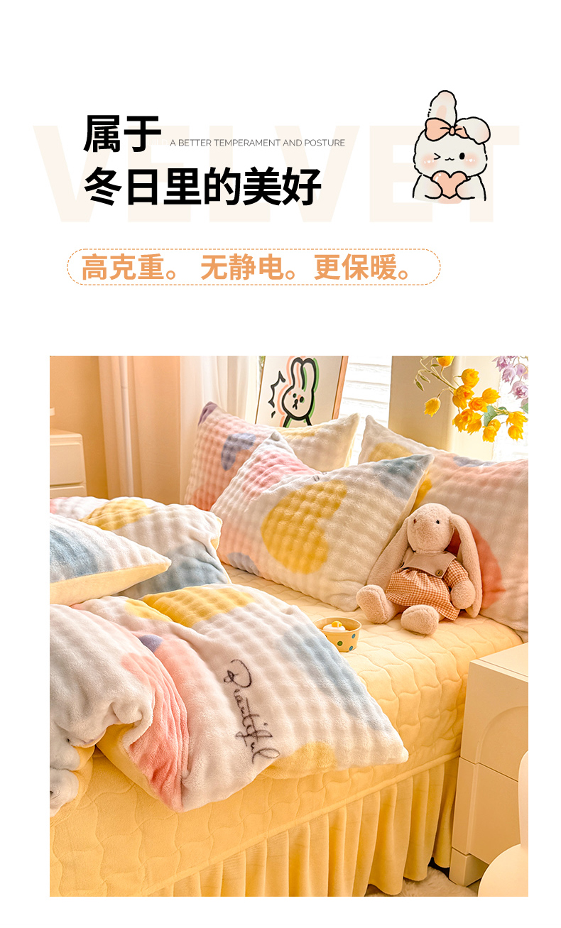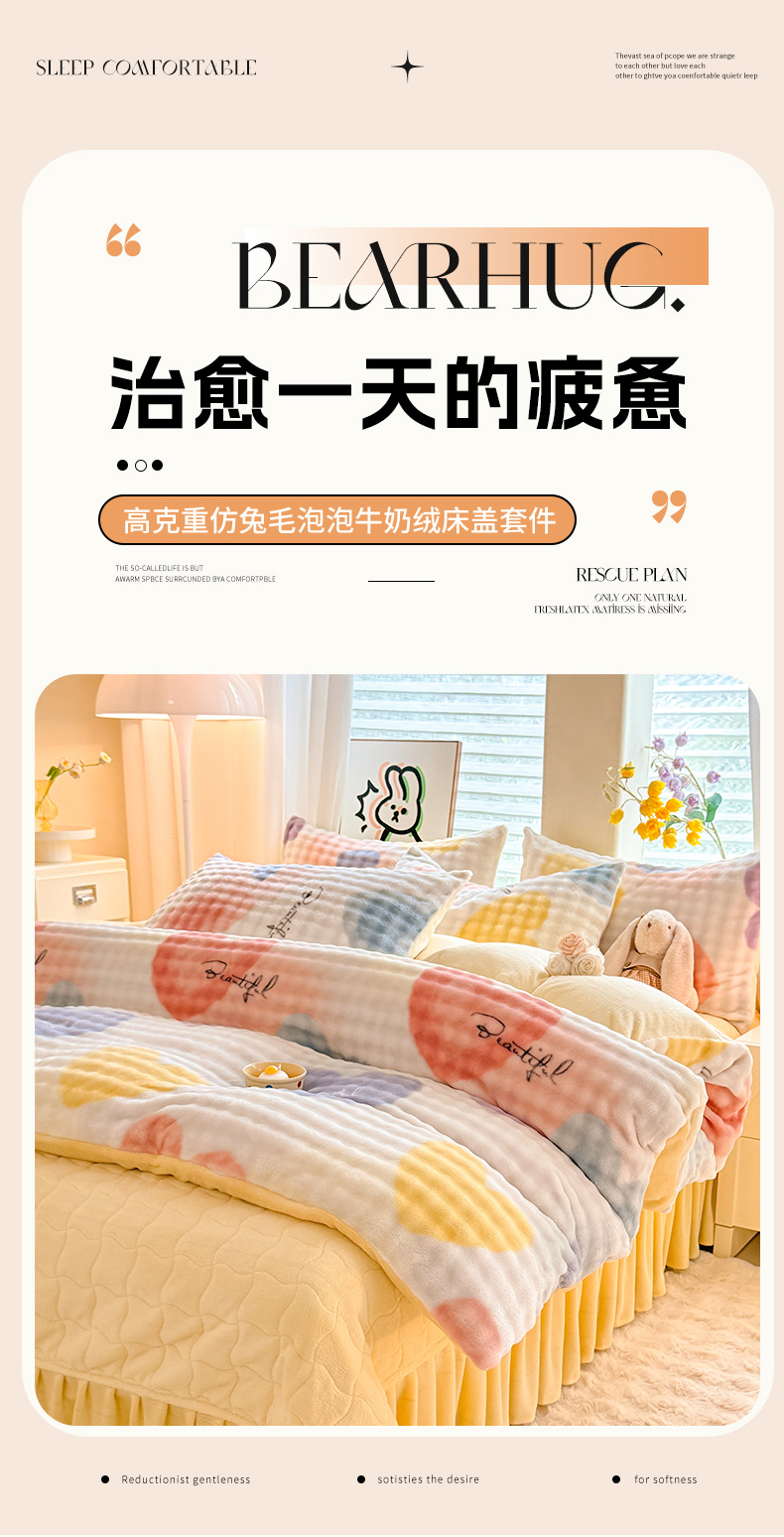 当前位置: 91家纺网 > 商品网购 > 床品套件 > 四件套 > 牛奶绒四件套 > 金盛皇朝家纺 2025新款高克重仿兔毛泡泡牛奶绒床单床盖单件三件四件套 爱心拾暖