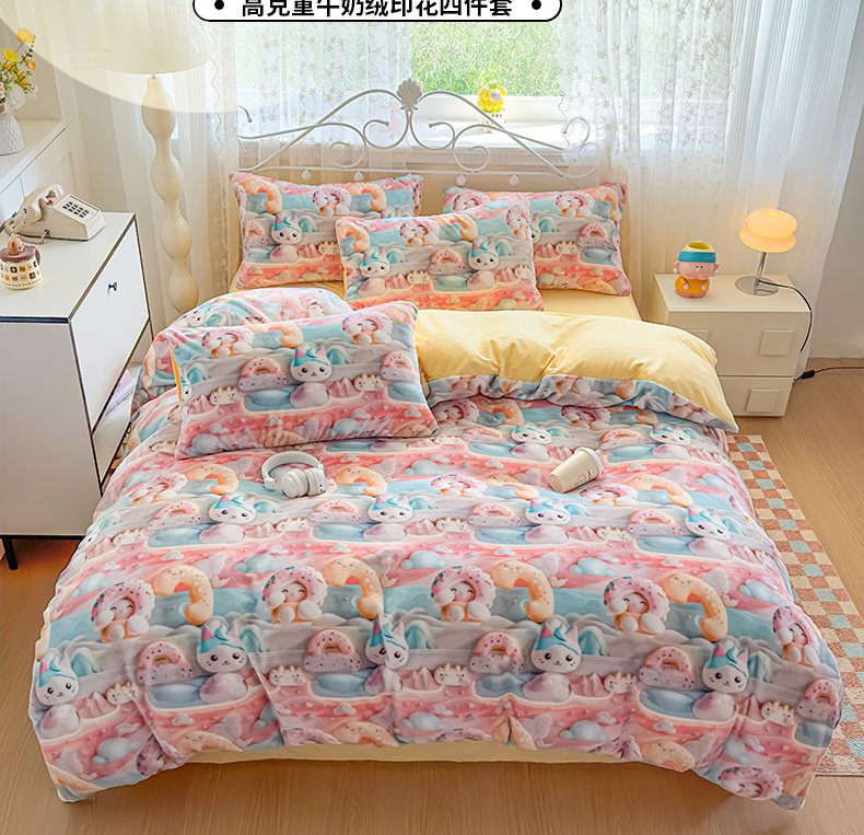 (总)潮邦创意家居 2025新款大版卡通牛奶绒四件套,草莓熊,熊熊零食,遨游太空,大脸猫猫,搞怪小熊,活泼女孩,机灵狗狗,敬礼狗狗,卡通公主,可爱女孩,可爱松鼠,女孩与兔,温馨太空,熊熊party,悠闲生活,友爱龙龙