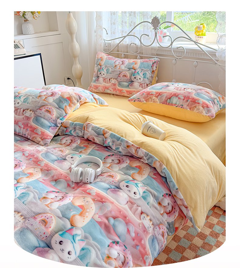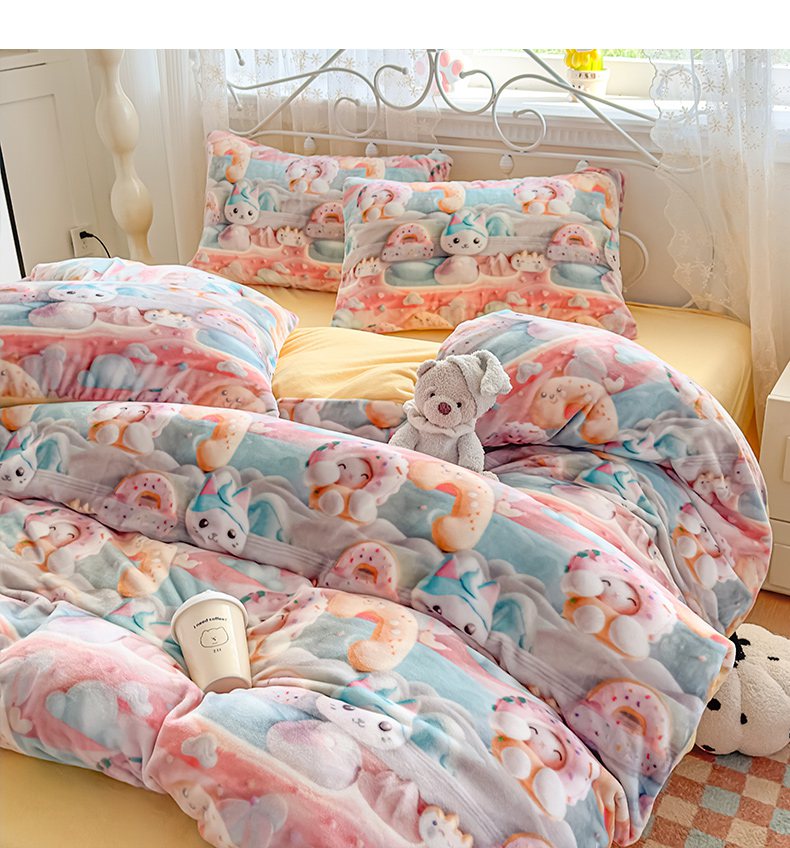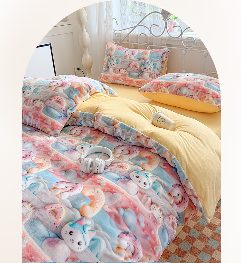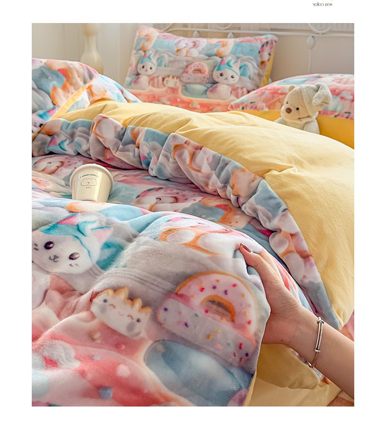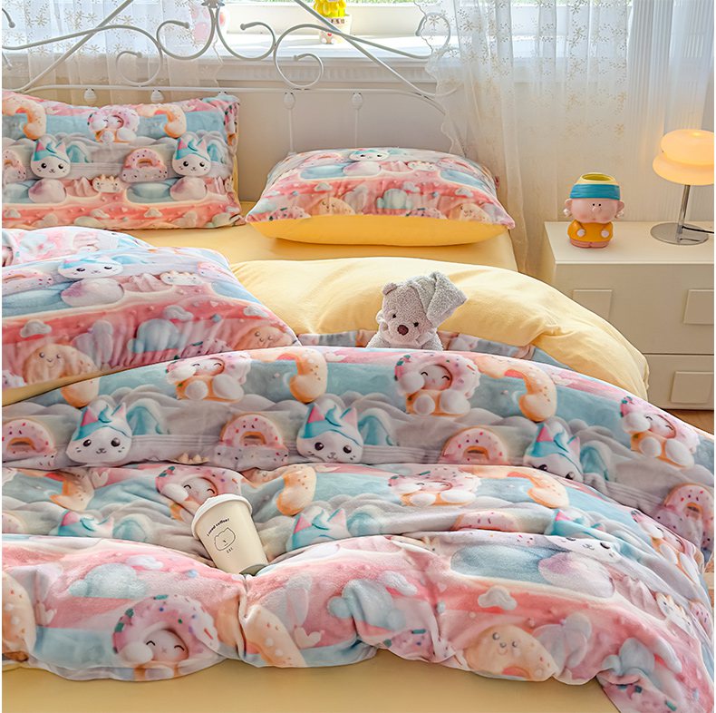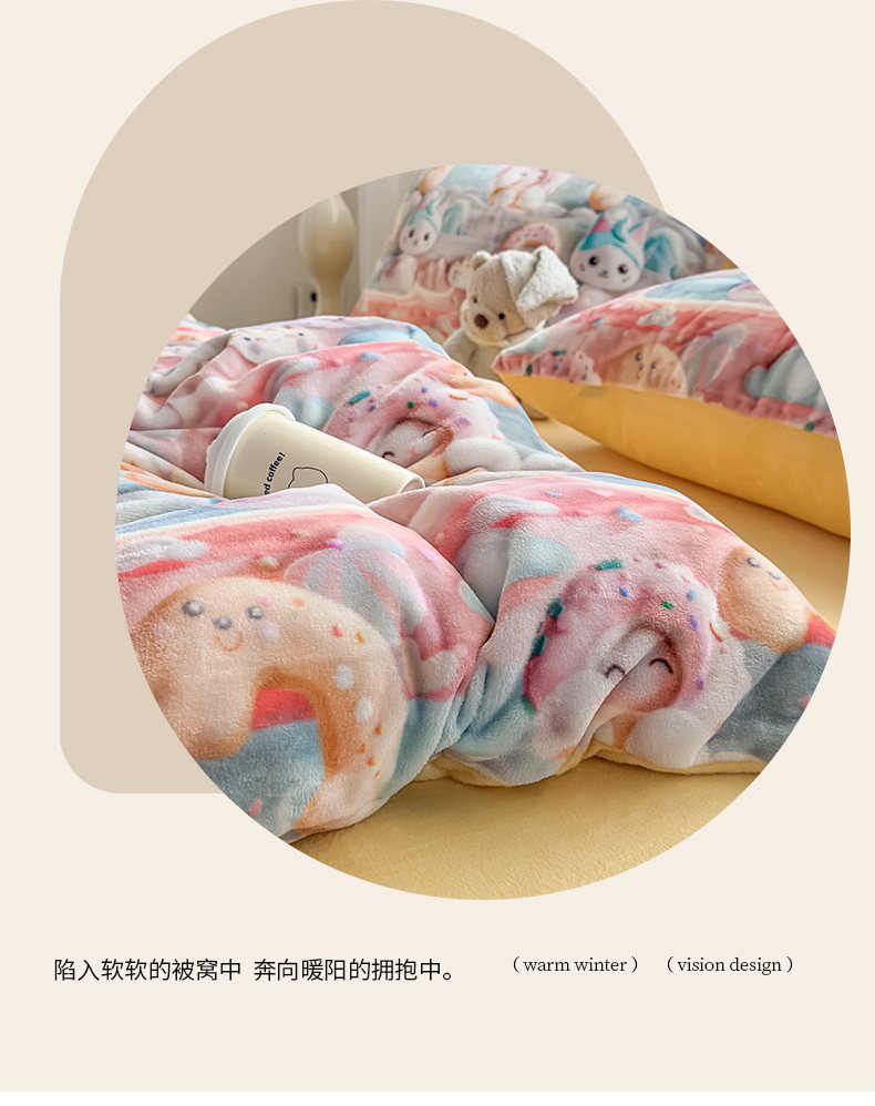 潮邦创意家居 2025新款5D数码牛奶绒印花系列四件套 甜甜圈