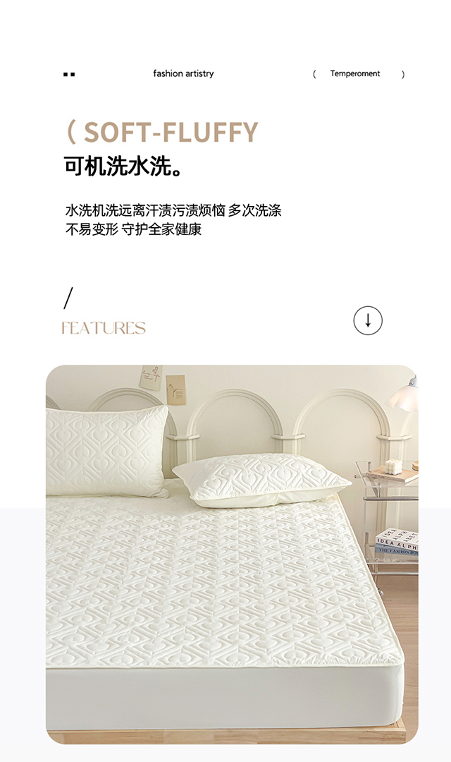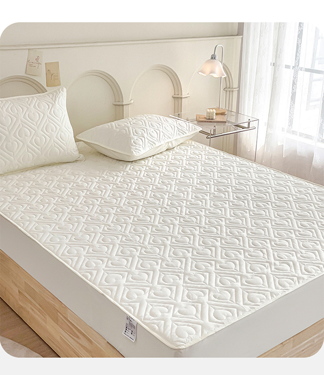 • 91家纺网 家纺一手货源 找家纺 亨通家纺 2025新款A类爱心磨毛防水夹棉床笠 爱心-月光白