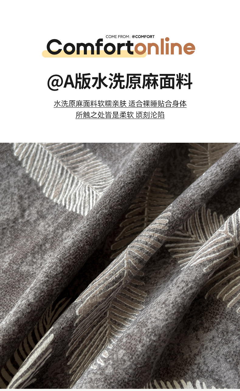 当前位置: 91家纺网 > 商品网购 > 床品套件 > 四件套 > 牛奶绒四件套 > 吾秀家居 2025新款水洗原麻牛奶绒纽扣款四件套 羽叶
