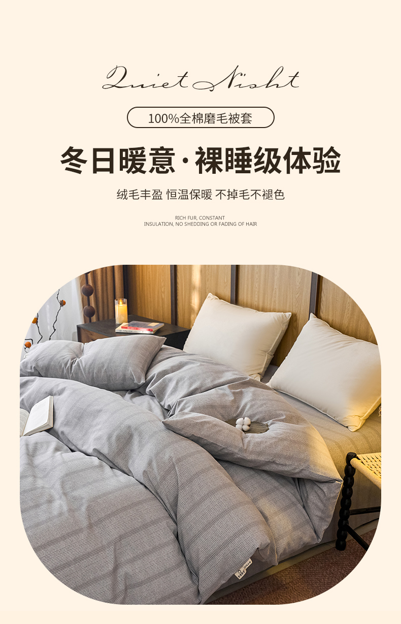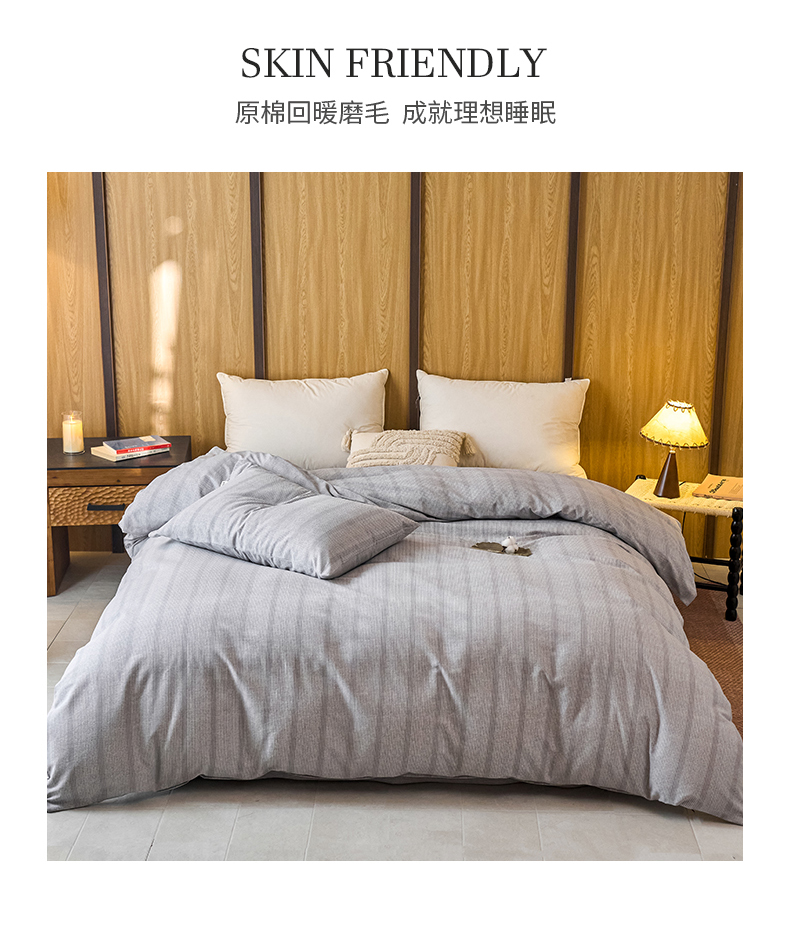 商品名称:春皖家纺 2025新款全棉原棉磨毛色织水洗单被套回暖系列-风格二 暮山灰
