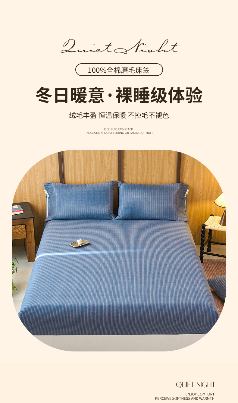 春皖家纺 2025新款全棉原棉磨毛色织水洗单床笠回暖系列-风格二 梦蓝图