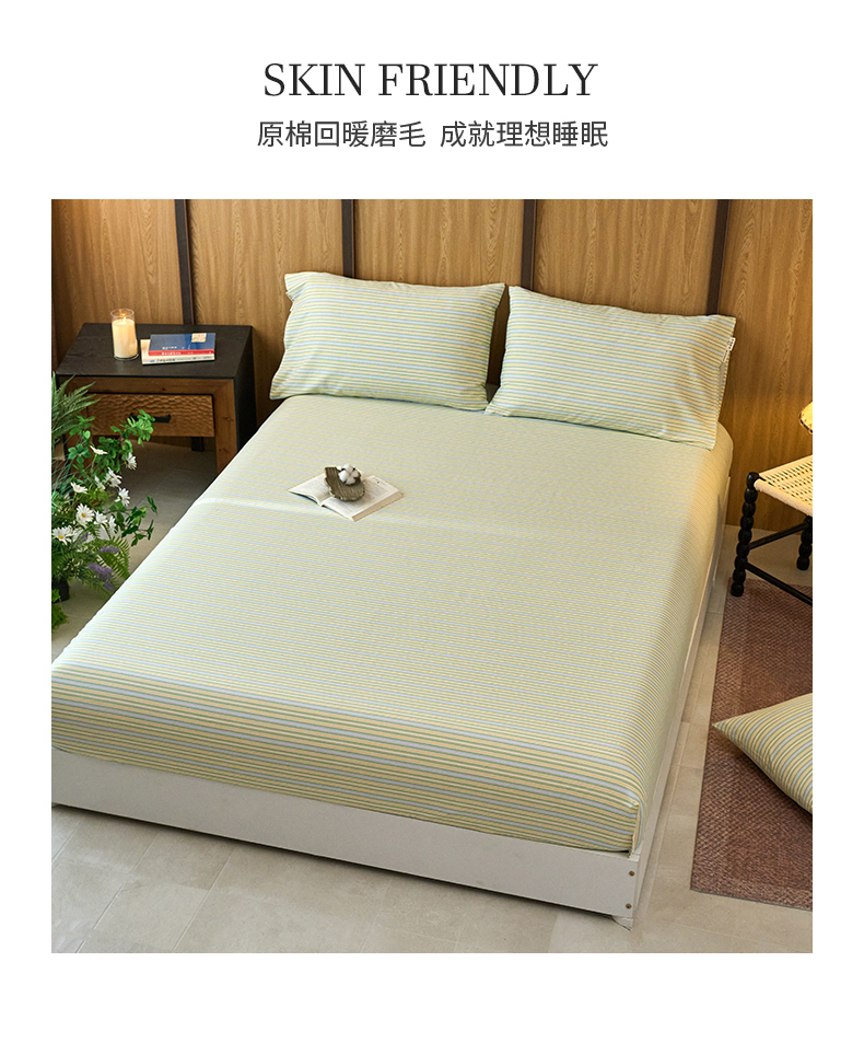 春皖家纺 2025新款全棉原棉磨毛色织水洗单床笠回暖系列-风格二 云水间