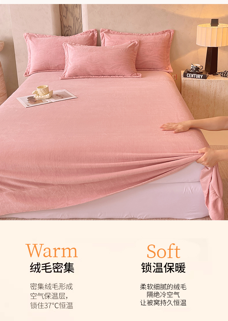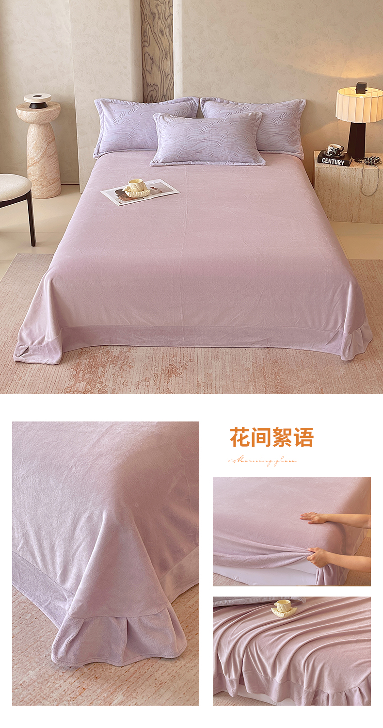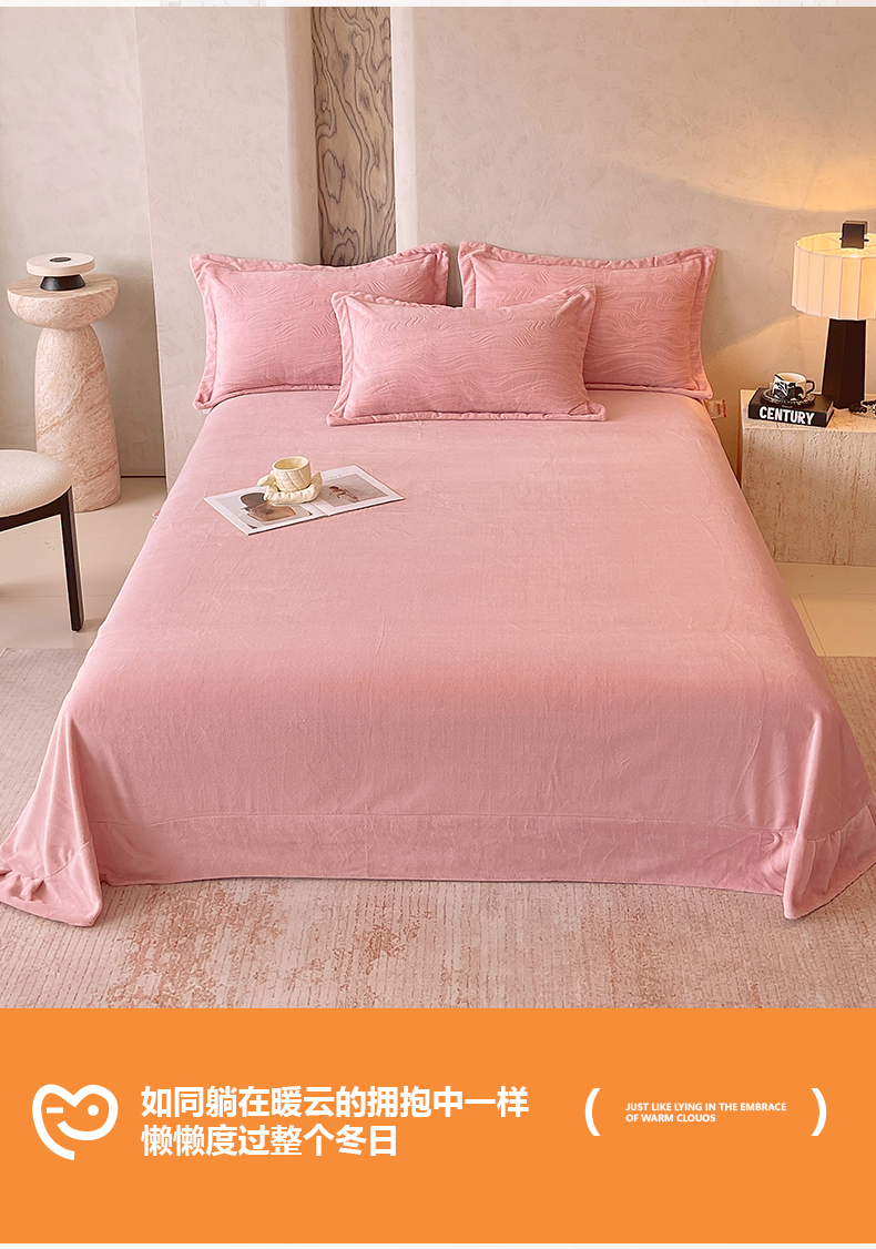 商品名称:春皖家纺 2025新款全消光雕花绒牛奶绒单品床单 柔眠序曲