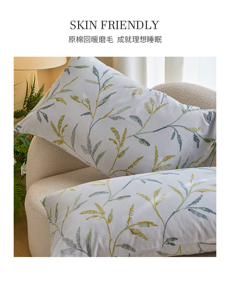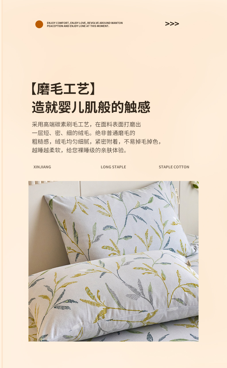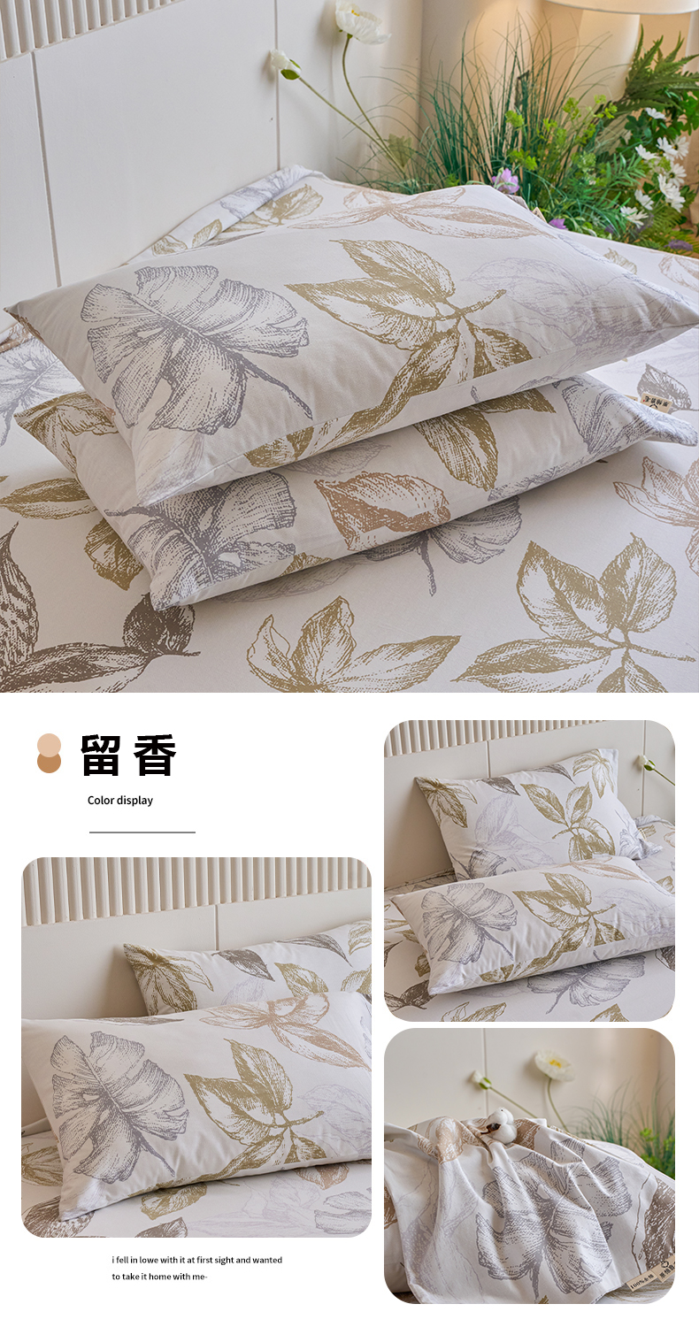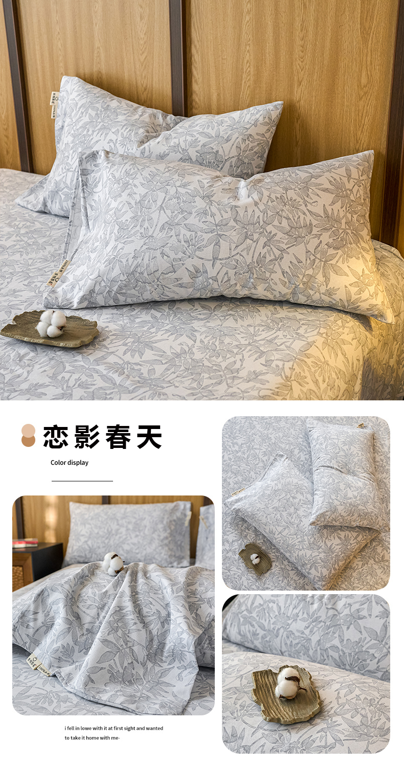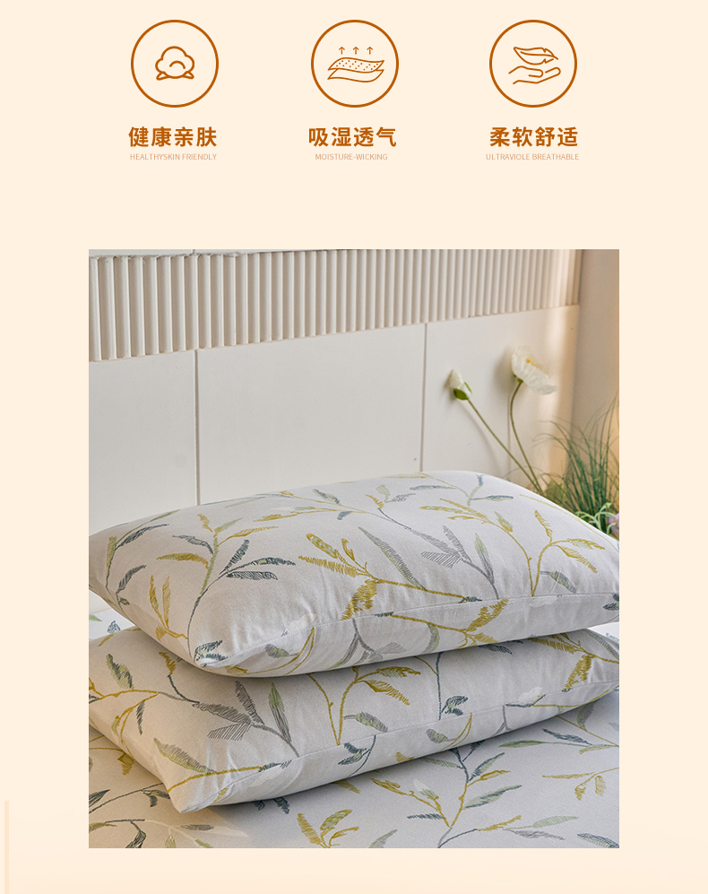 商品名称:春皖家纺 2025新款全棉原棉磨毛色织水洗单枕套回暖系列-风格二 叶晴川