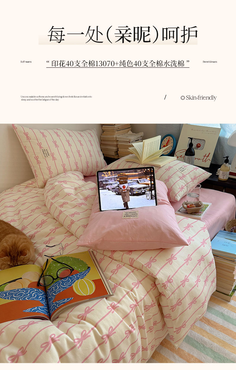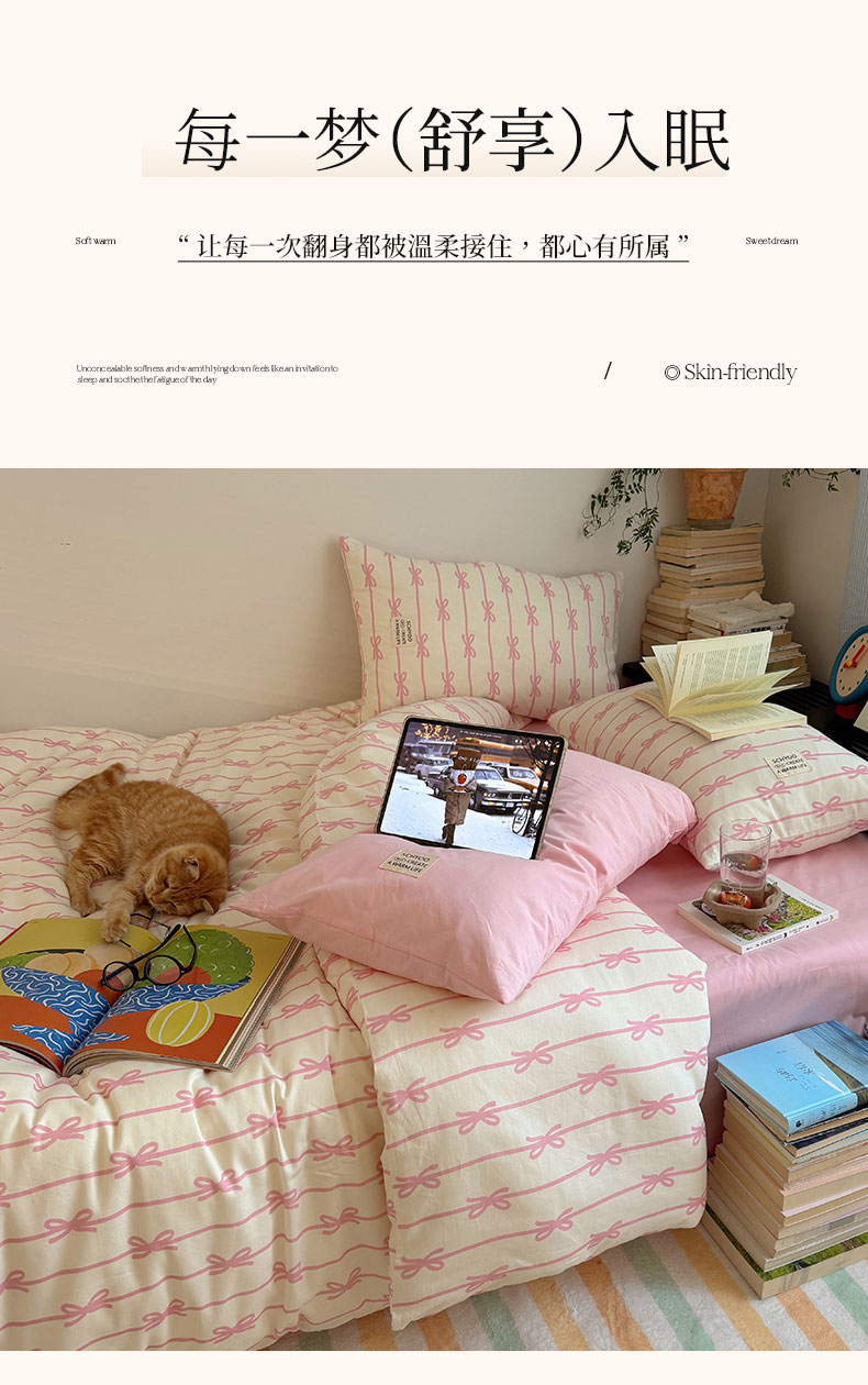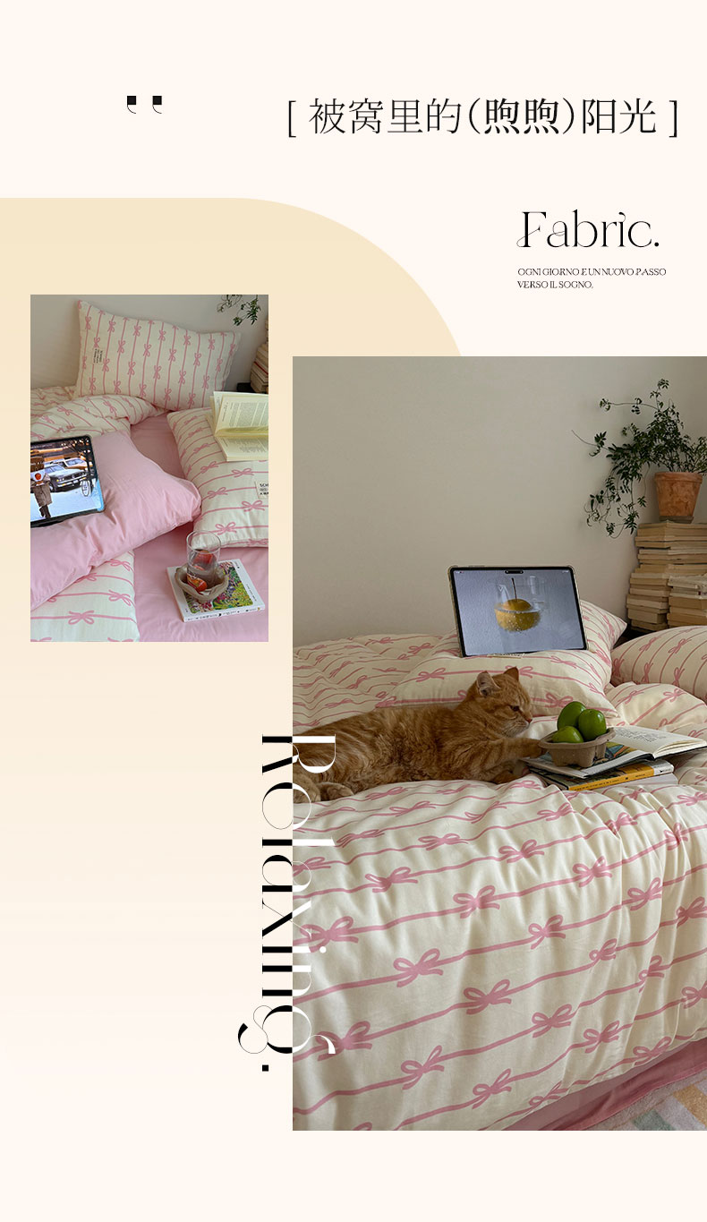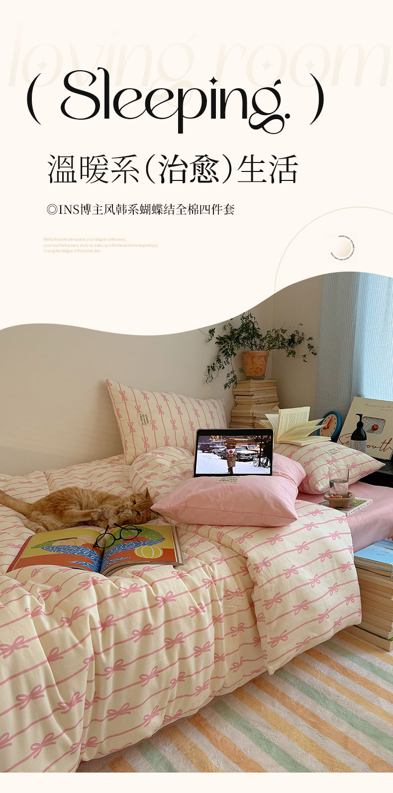 六巷胡同 2026春夏新款INS博主风韩系蝴蝶结全棉四件套 丝带蝴蝶结-粉