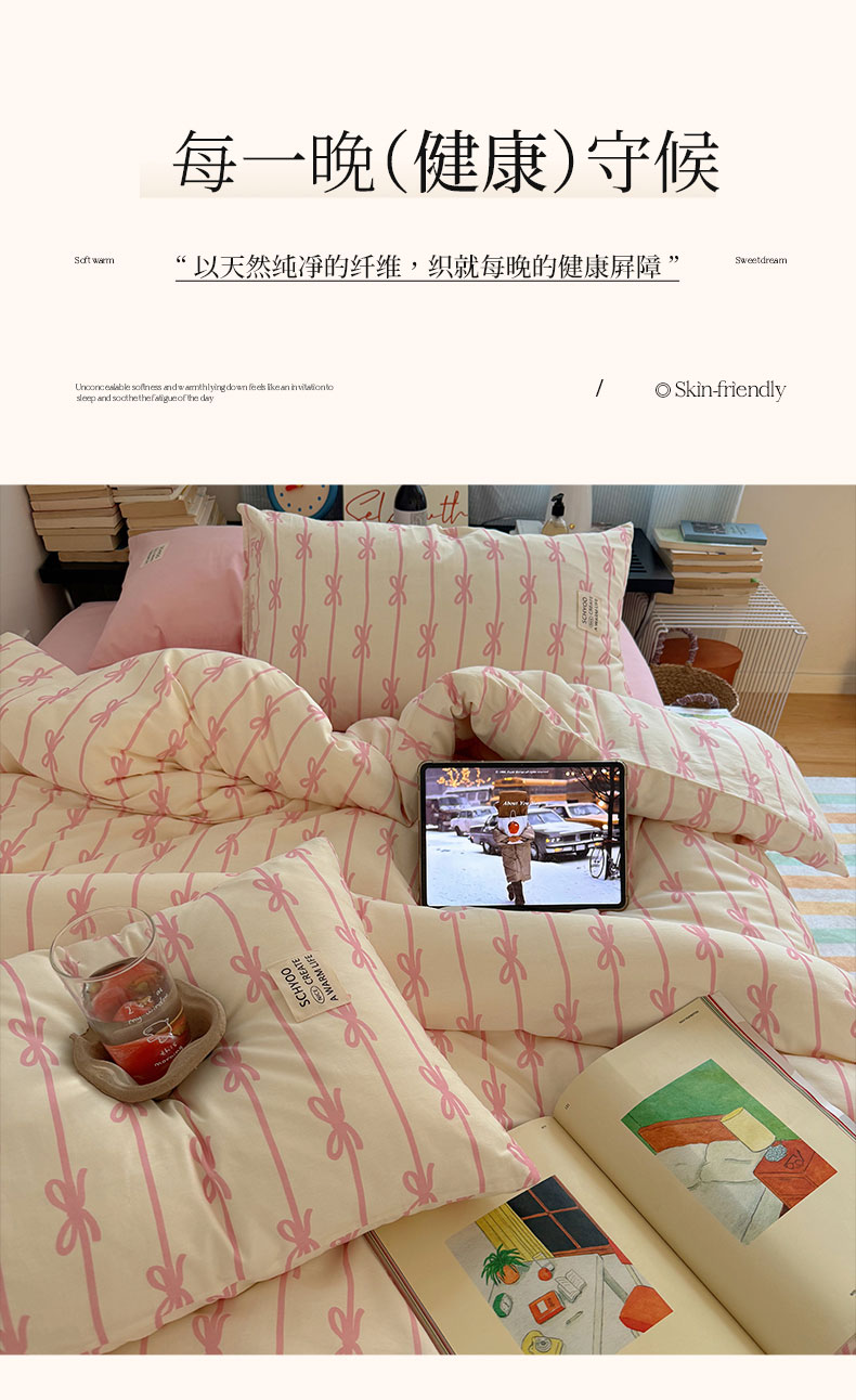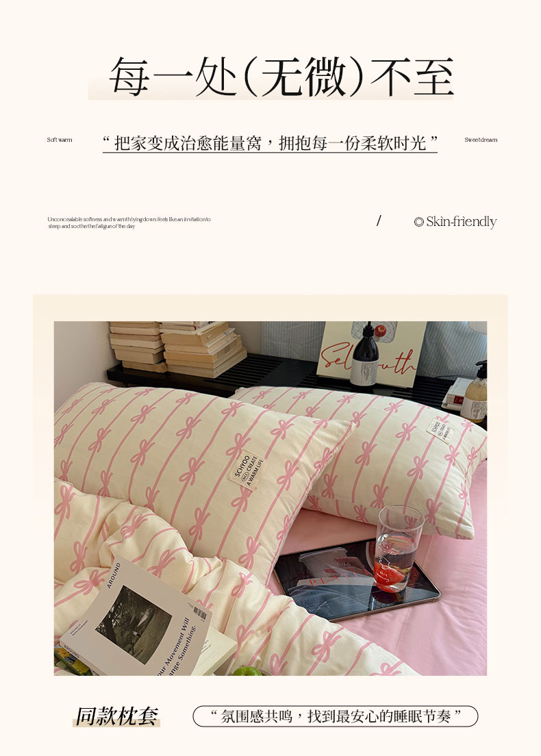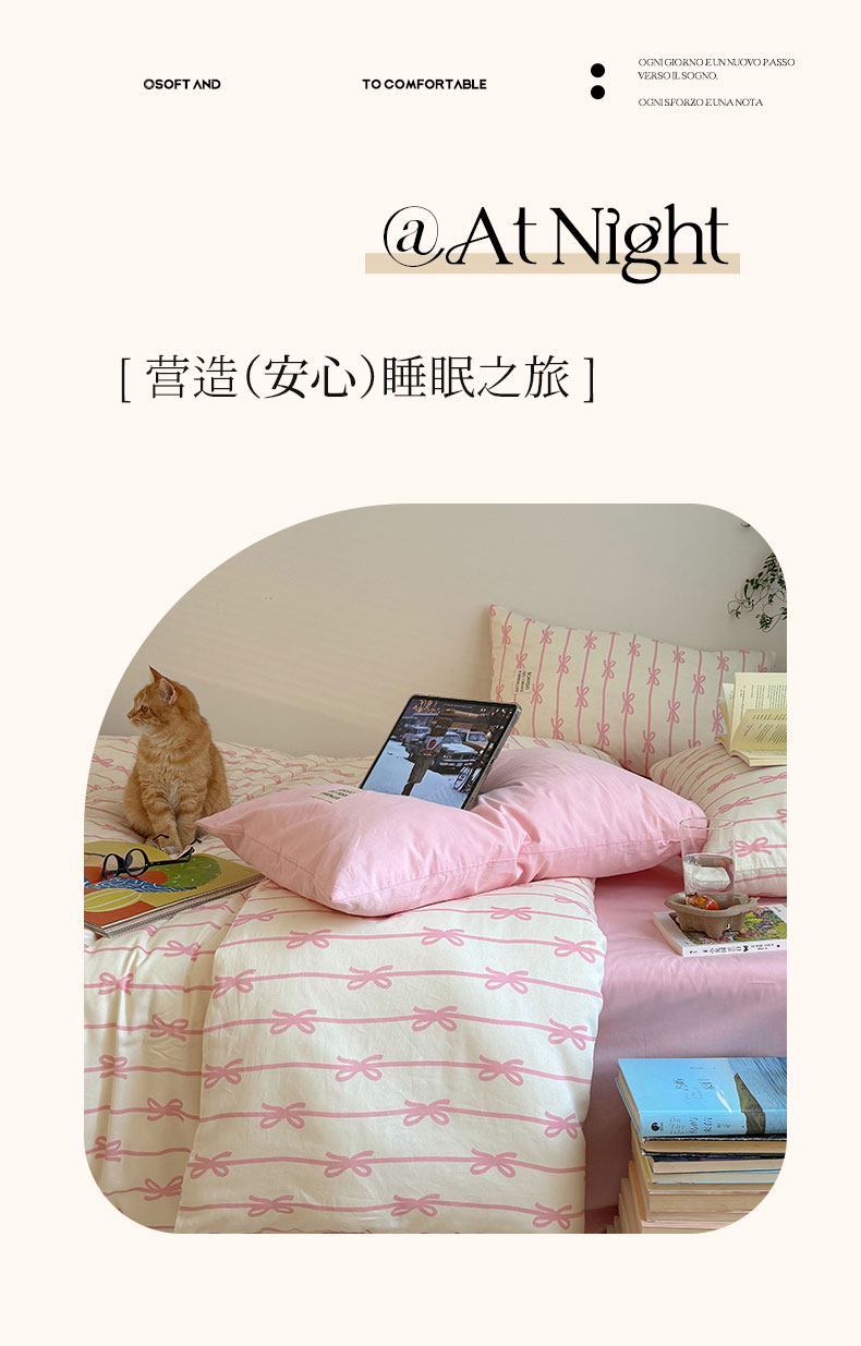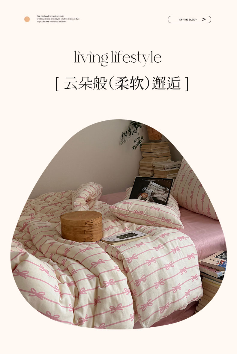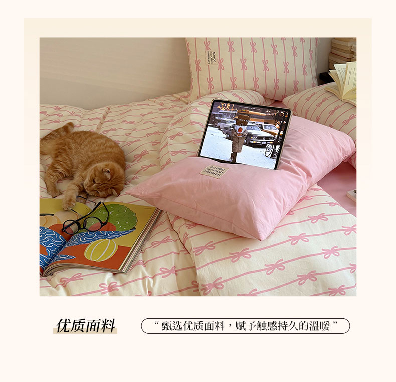商品名称:六巷胡同 2026春夏新款INS博主风韩系蝴蝶结全棉四件套 丝带蝴蝶结-粉