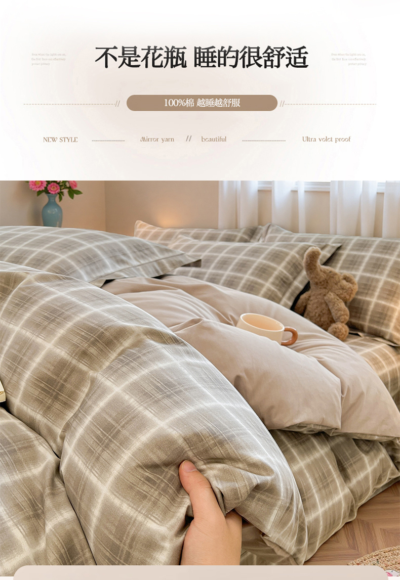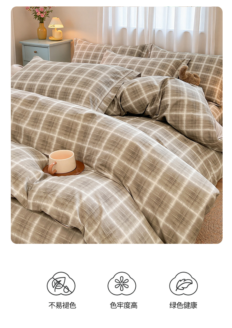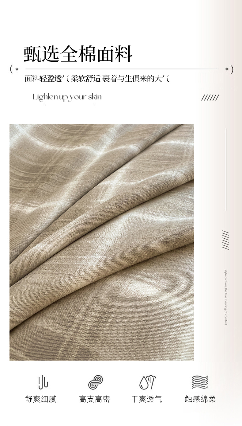 当前位置: 91家纺网 > 商品网购 > 床品套件 > 四件套 > 全棉普通四件套 > 名优家纺 2026新款60S13374高支密全棉印花纯色四件套 软麻-咖