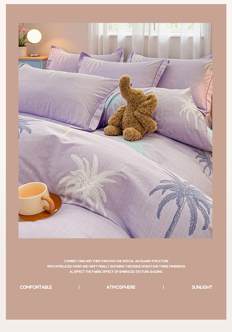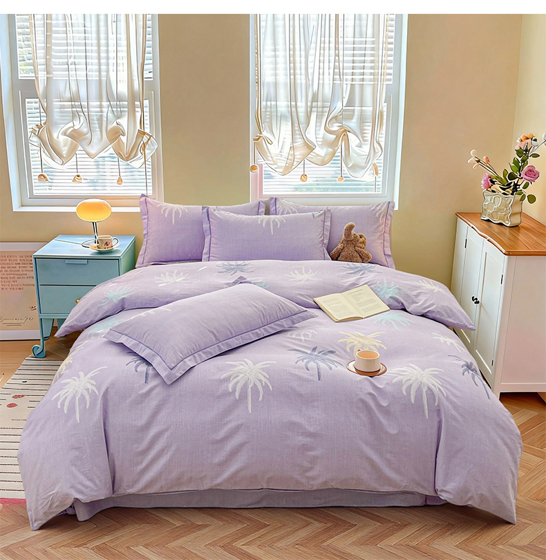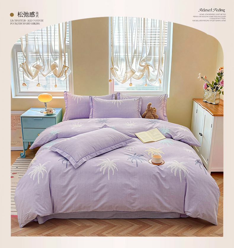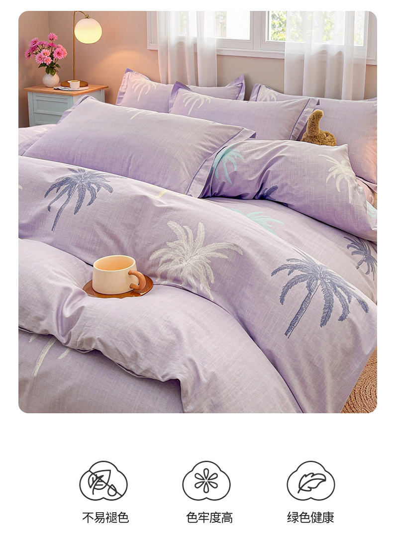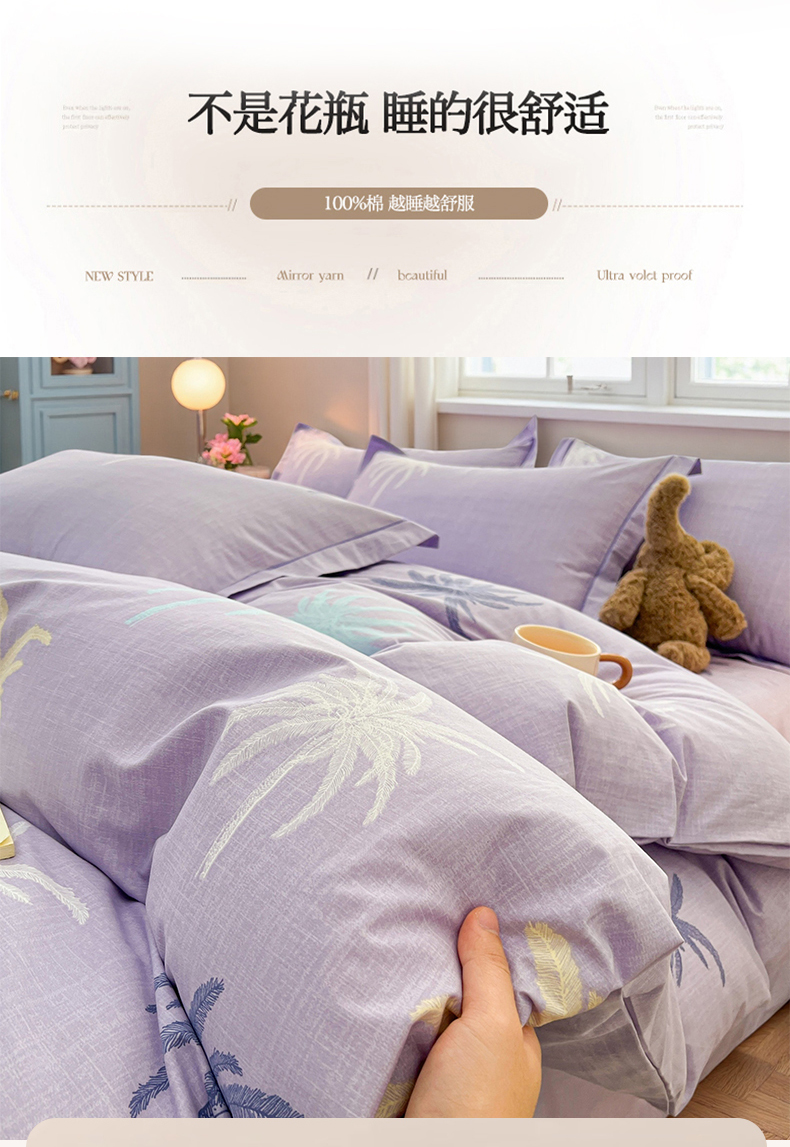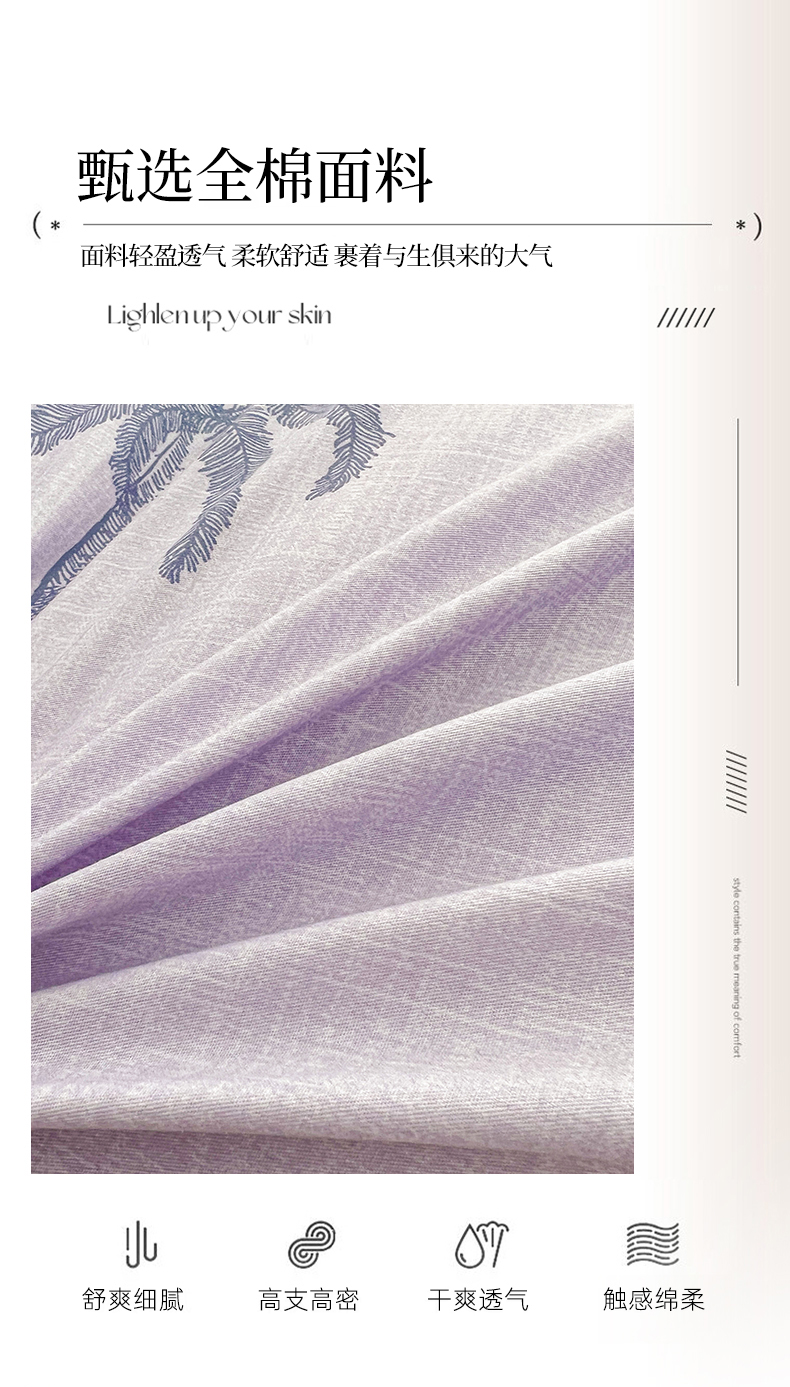 当前位置: 91家纺网 > 商品网购 > 床品套件 > 四件套 > 全棉普通四件套 > 名优家纺 2026新款60S13374高支密全棉印花纯色四件套 云璟-紫