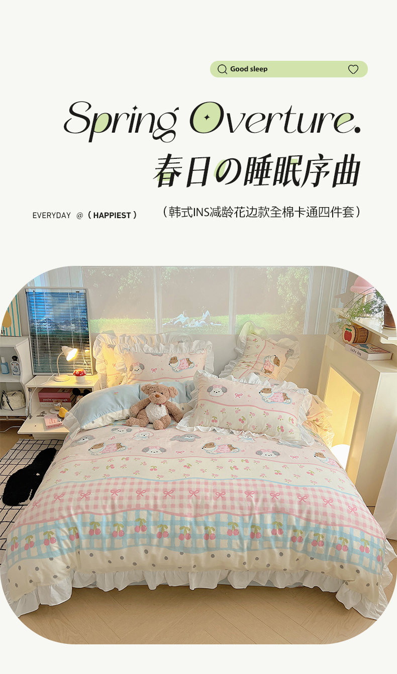 (总)六巷胡同 2025新款韩式INS卡通减龄花边款全棉四件套(第三系),花边波点嘟嘟猫,花边点点面包犬,花边调皮蔷薇狗,花边法棍滑板狗,花边粉格元气猫,花边哈喽泡芙猫,花边蓝格邦尼熊,花边蓝格插画犬,花边泡芙萌趣狗,花边森林音乐会,花边仙人掌粉象,花边熊熊猫咪崽,花边郁金香狗狗