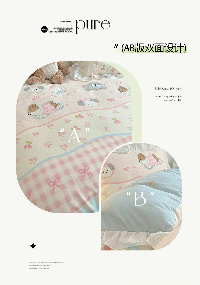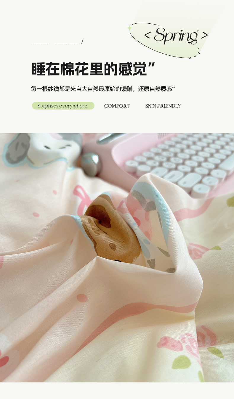 (总)六巷胡同 2026新款INS博主风卡通A类全棉双层纱四件套,双层纱-海盐樱桃熊,双层纱-贝雷腊肠狗,双层纱-达奇家政喵,双层纱-多乐背带熊,双层纱-花圃萝莉猫,双层纱-马卡龙蛋糕,双层纱-萌趣佩佩猪,双层纱-甜心童话猫,双层纱-元气蝴蝶结,双层纱-云朵苏萨犬