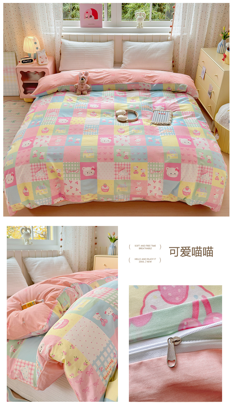 (总)清雅福 2026春夏新款INS小清新40支全棉13372单被套第一批,棒棒糖女孩,春之约定,点点小狗,动物聚会,豆丁小熊,粉心狗,富贵狗,果子象,含羞草,假日小狗
