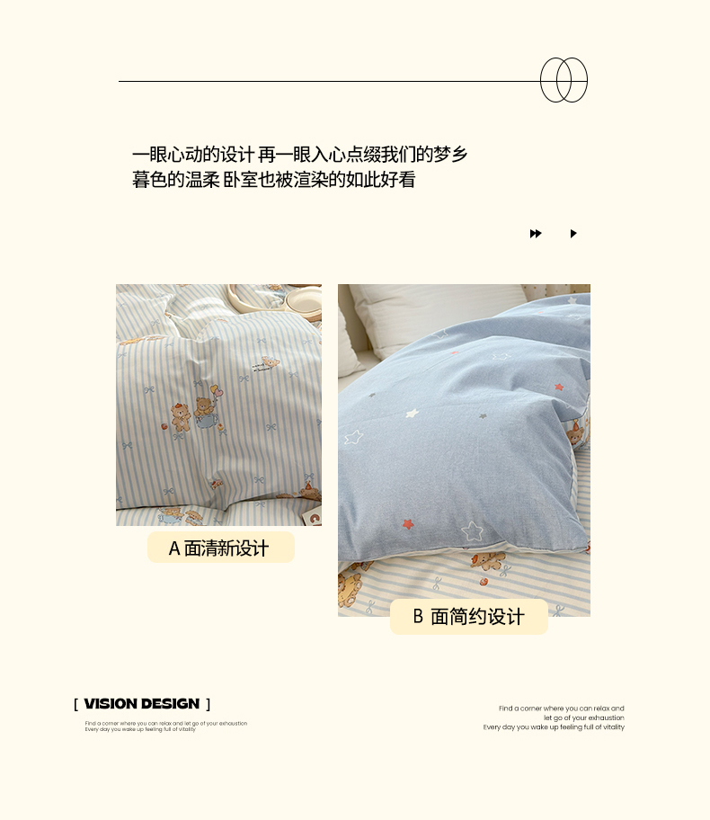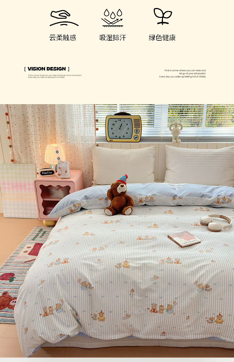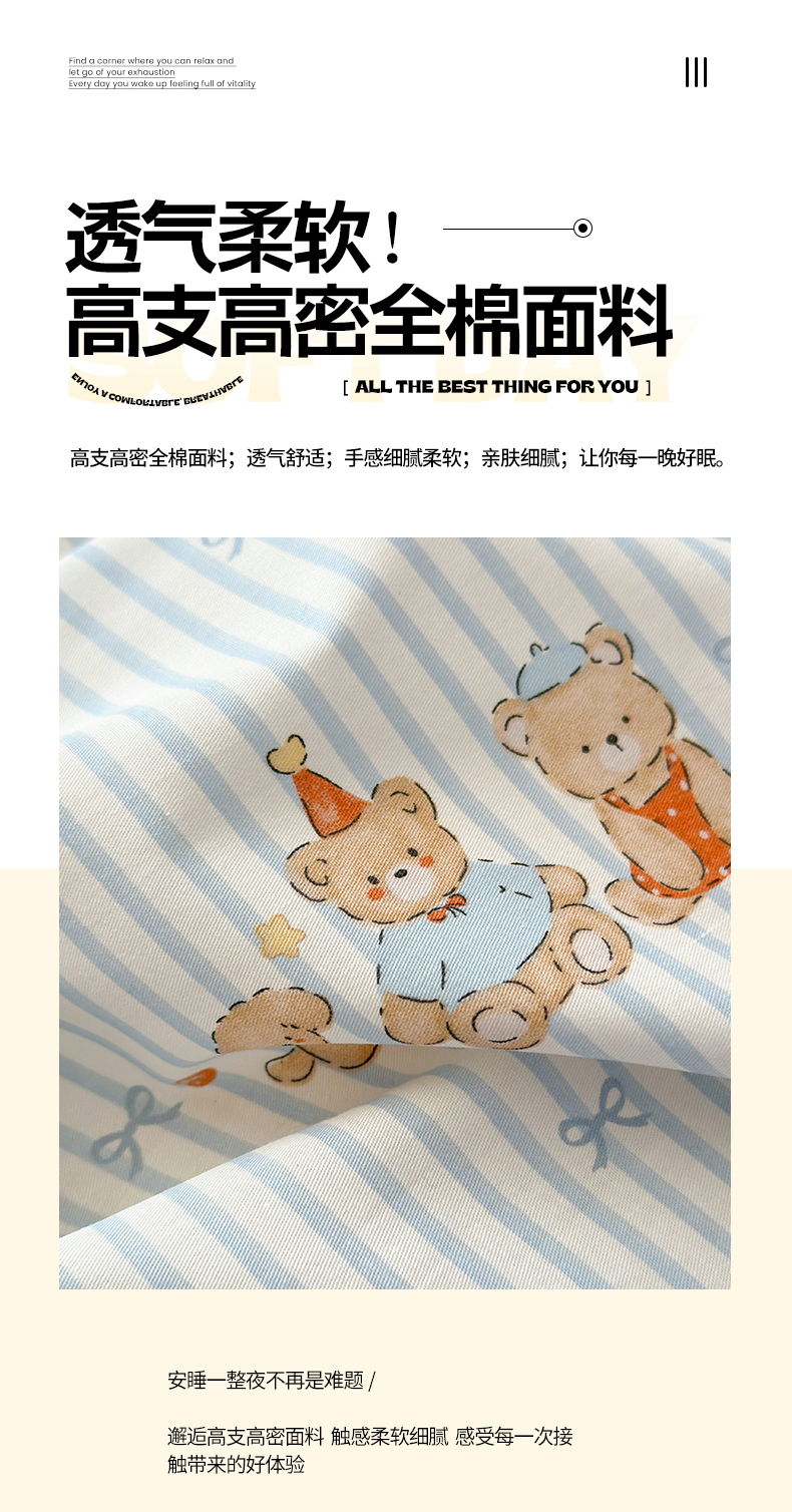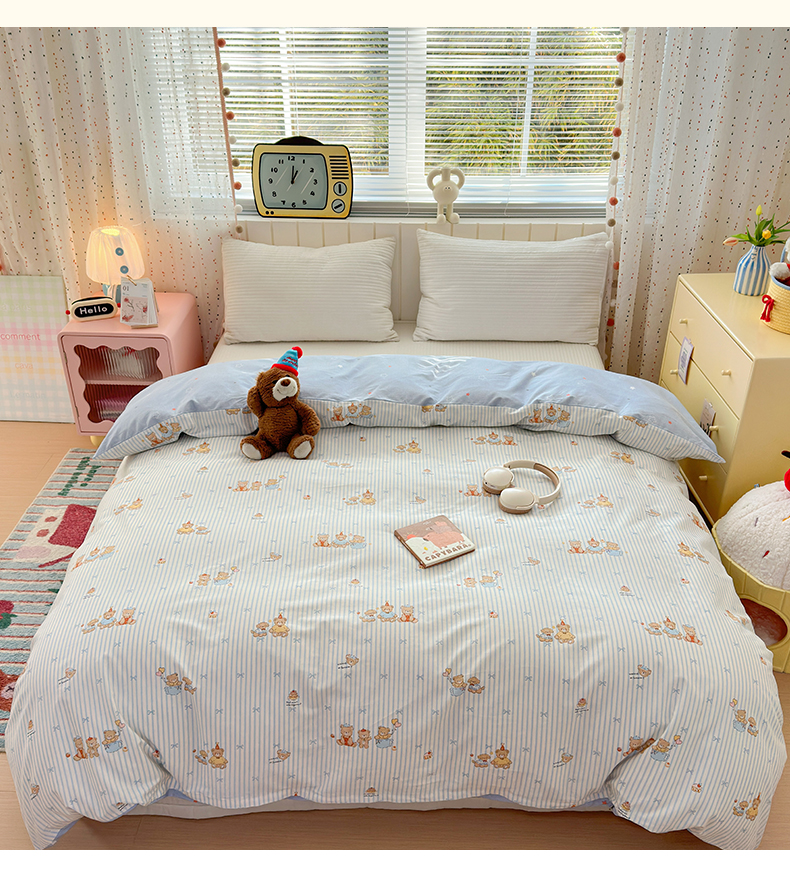 • 91家纺网 家纺一手货源 找家纺 清雅福 2026春夏新款INS小清新40支全棉13372单被套第二批 幸福小熊