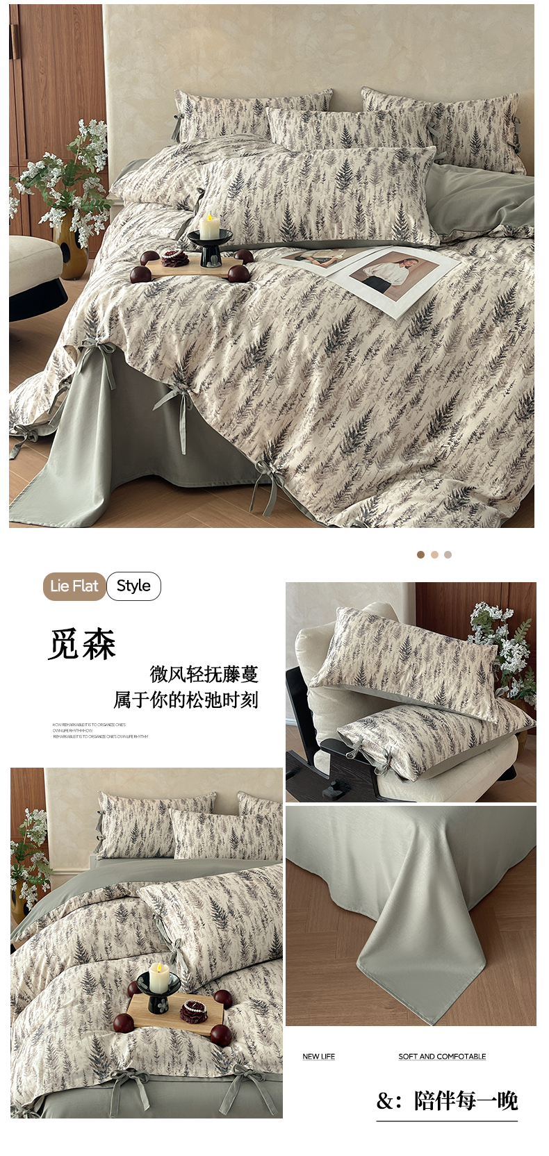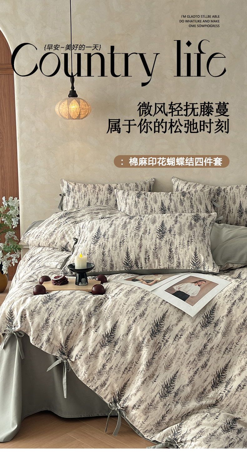 当前位置: 91家纺网 > 商品网购 > 床品套件 > 四件套 > 棉麻四件套 > 沐棉家居 2026春夏新款绑带蝴蝶结棉麻四件套 觅森