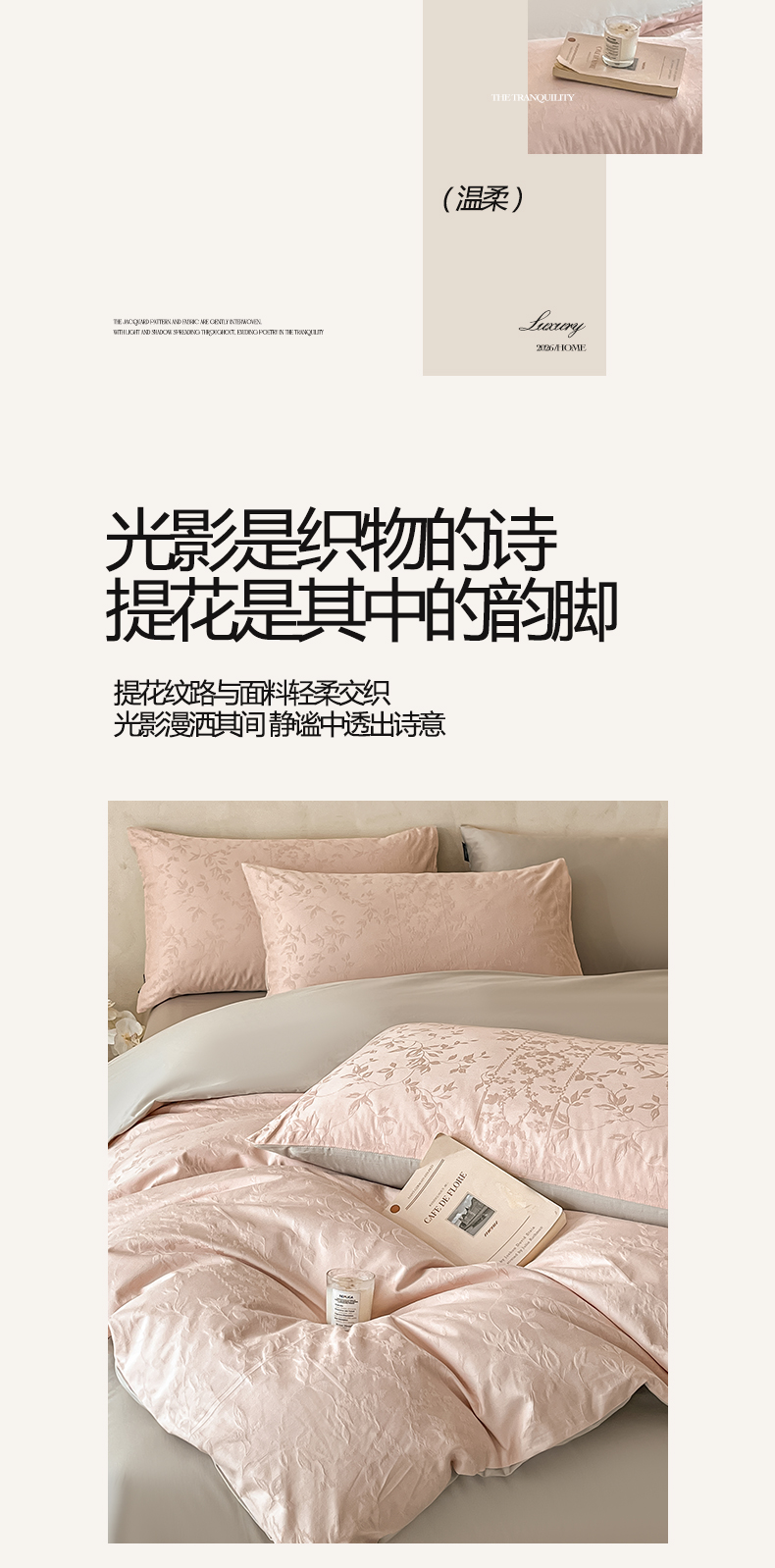当前位置: 91家纺网 > 商品网购 > 床品套件 > 四件套 > 全棉普通四件套 > 涵宸家纺 2026新款全棉提花里拉系列四件套 沁语-粉金