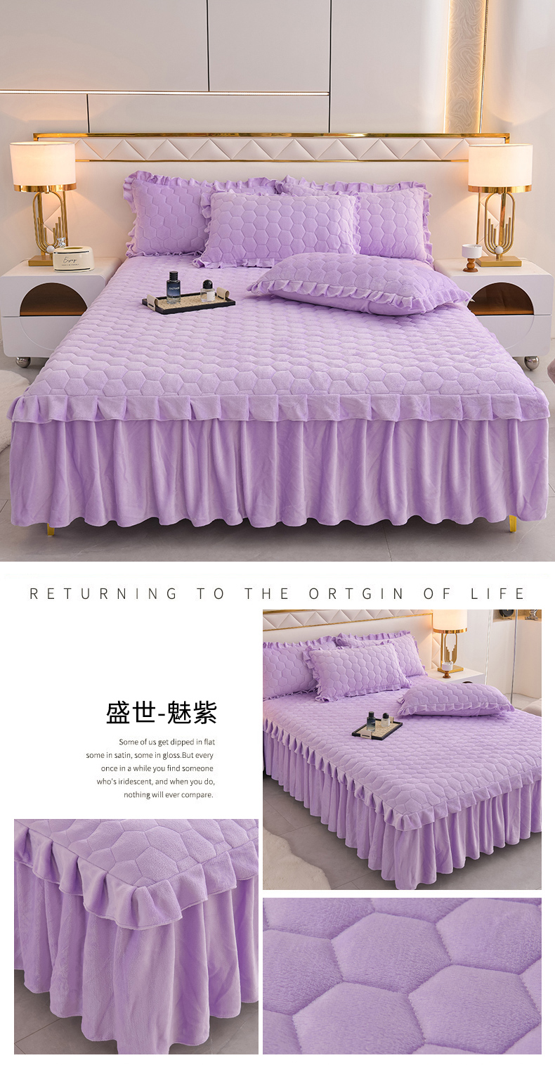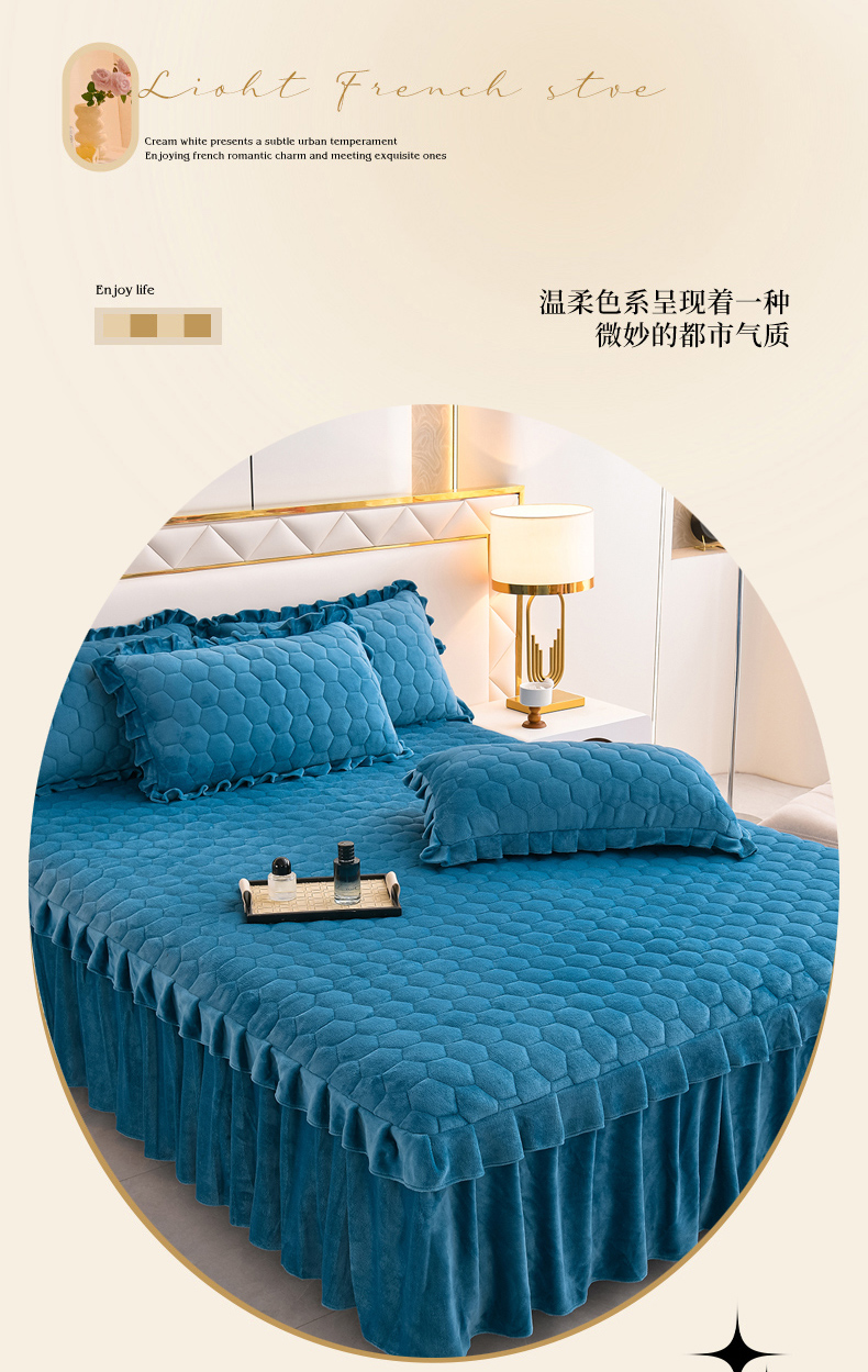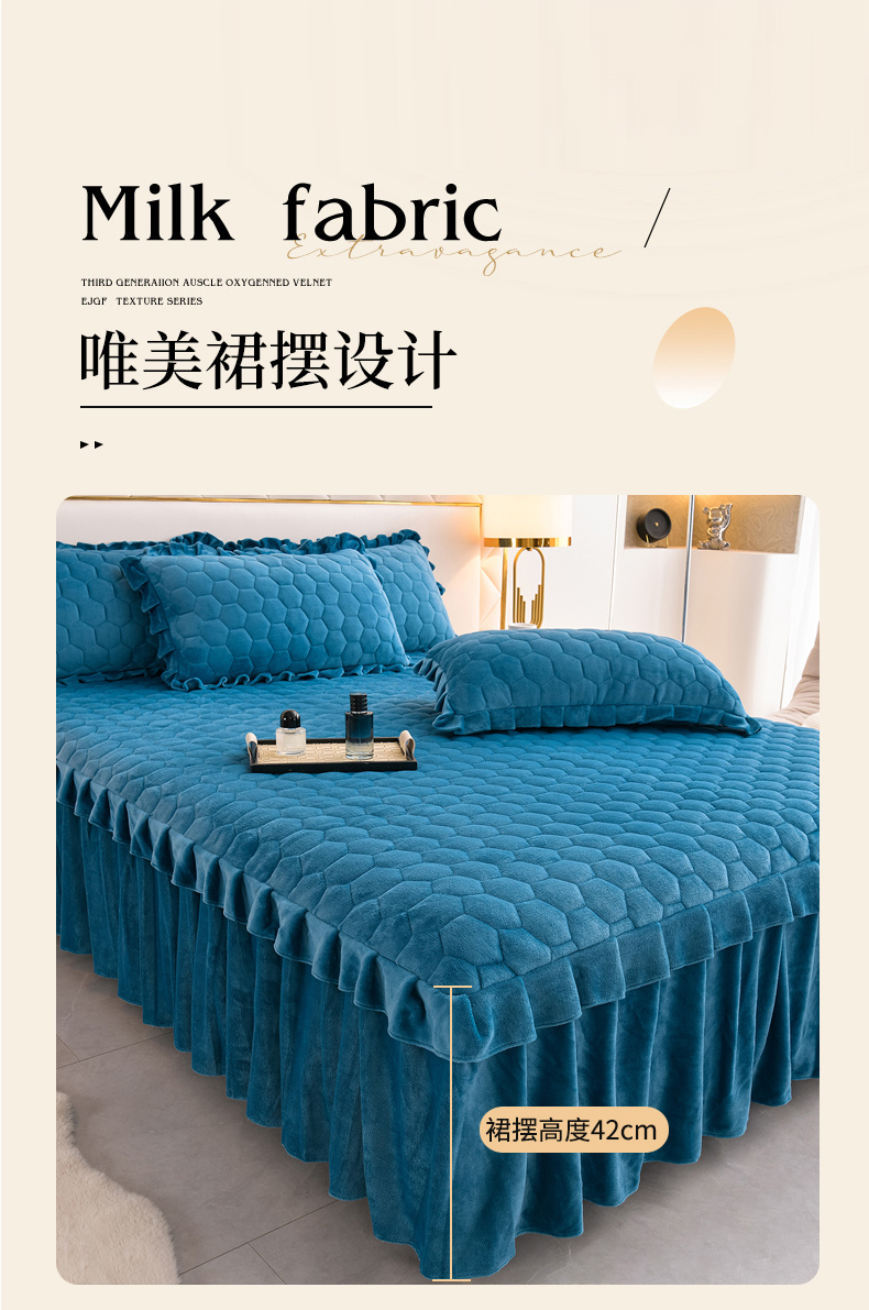 (总)优家居工厂店 2026新款纯色韩版花边牛奶绒床裙床罩加厚直播外贸可定做,盛世-宝蓝,盛世-翠绿,盛世-豆沙,盛世-粉玉,盛世-魅紫,盛世-米白,盛世-杏黄,盛世-银灰