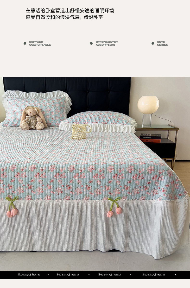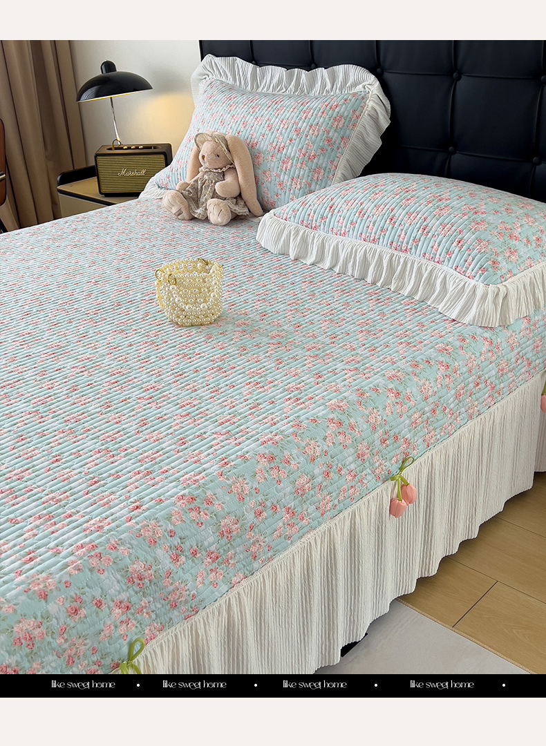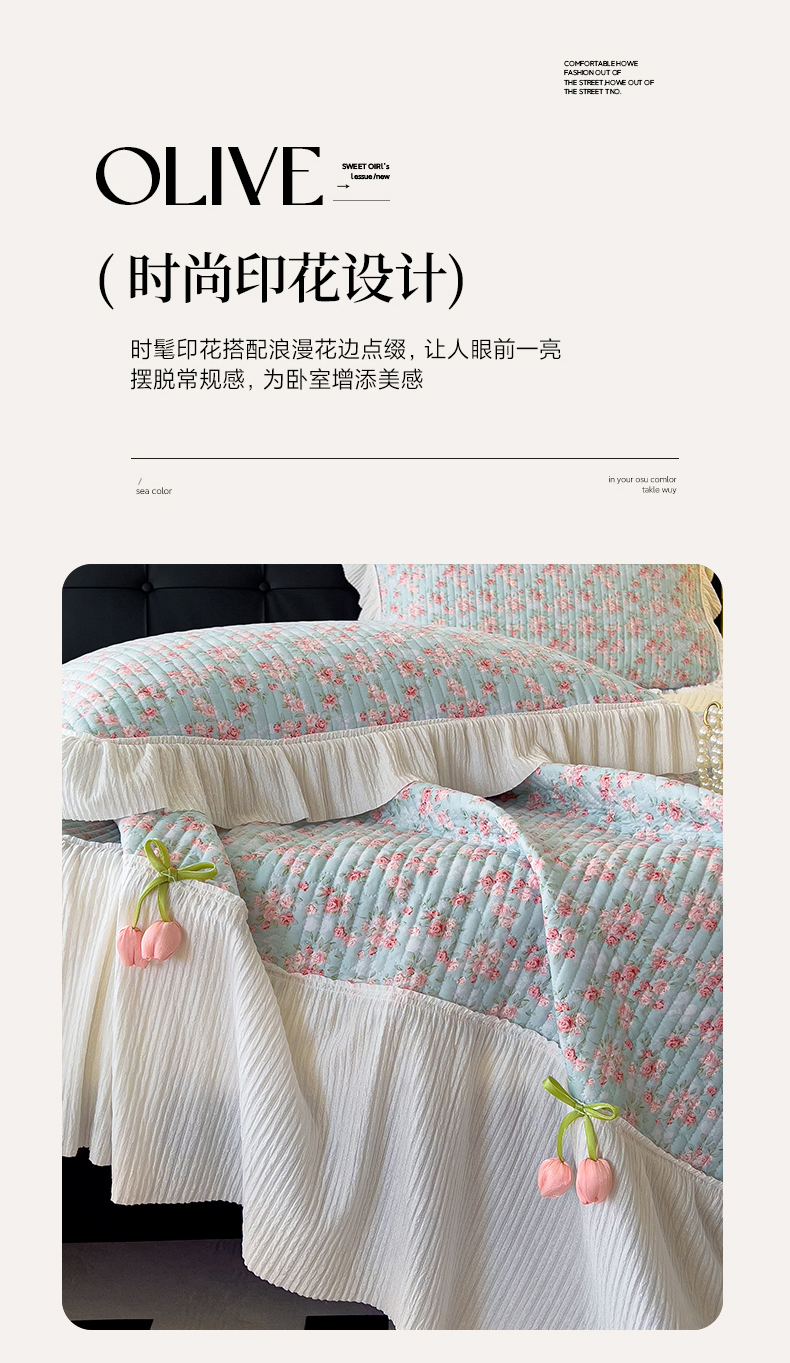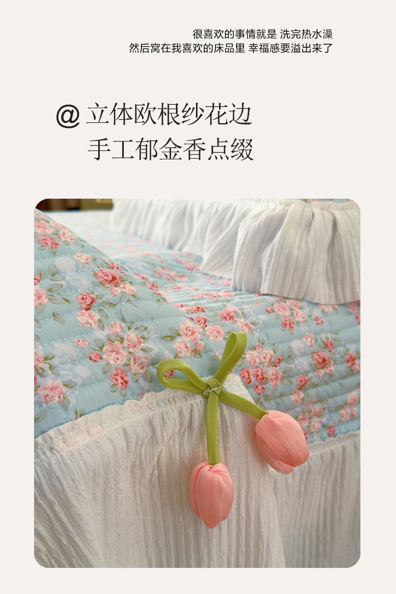 商品名称:花漾家居 2026新款雪尼尔雪纺蕾丝大花边床盖单品床盖单件三件套 伊水芙蓉
