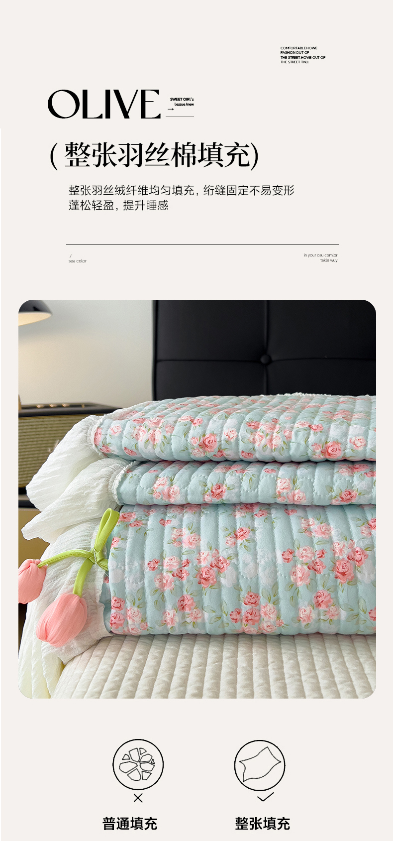 210x235cm单床盖+枕套一对(尺寸不含花边)