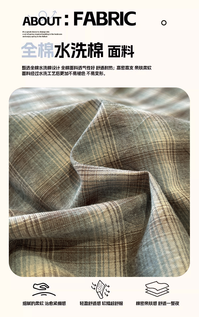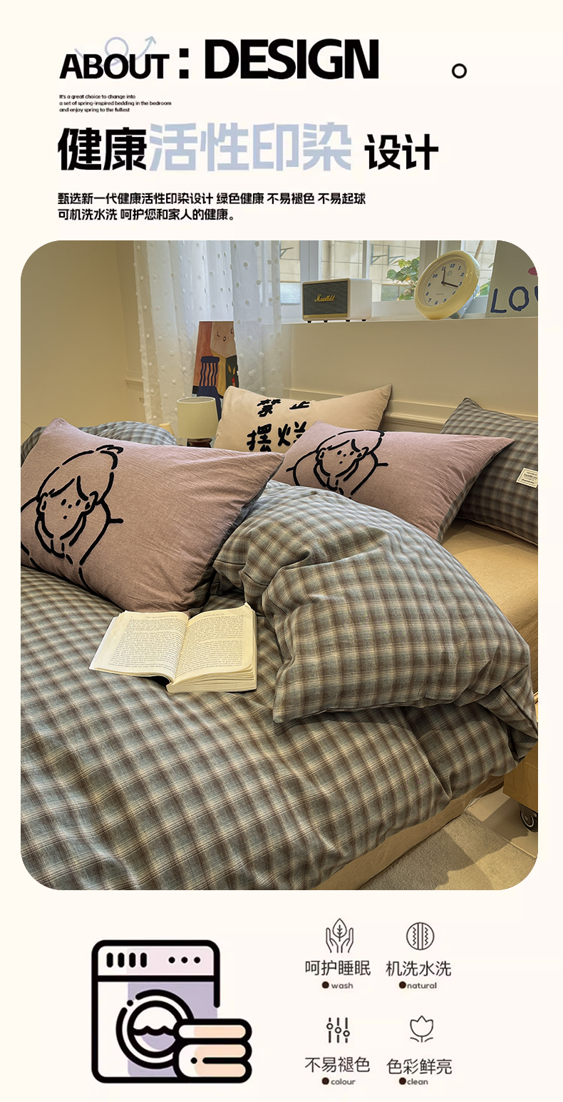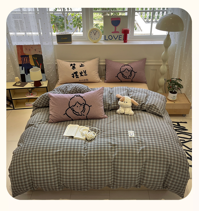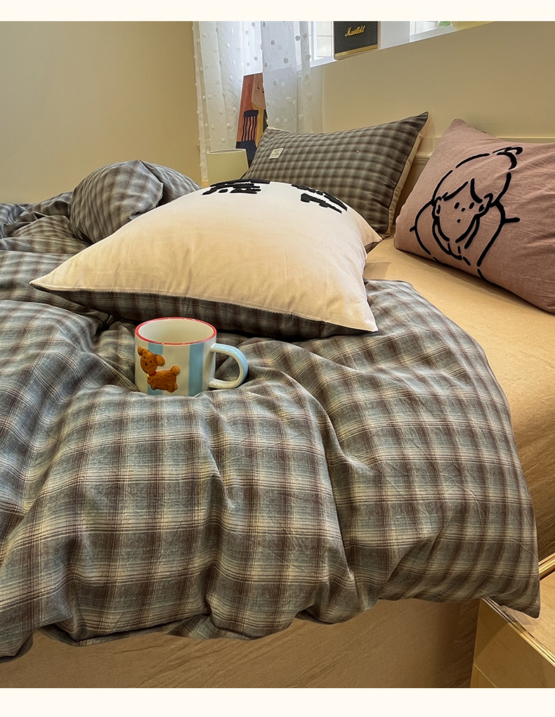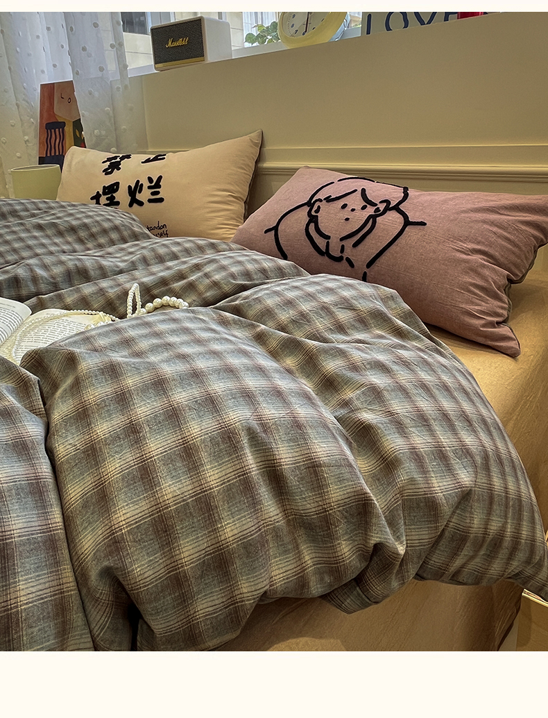 当前位置: 91家纺网 > 商品网购 > 床品套件 > 四件套 > 全棉普通四件套 > 花漾家居 2026新款无印宿舍简约全棉色织水洗棉毛巾绣四件套 蓝咖格