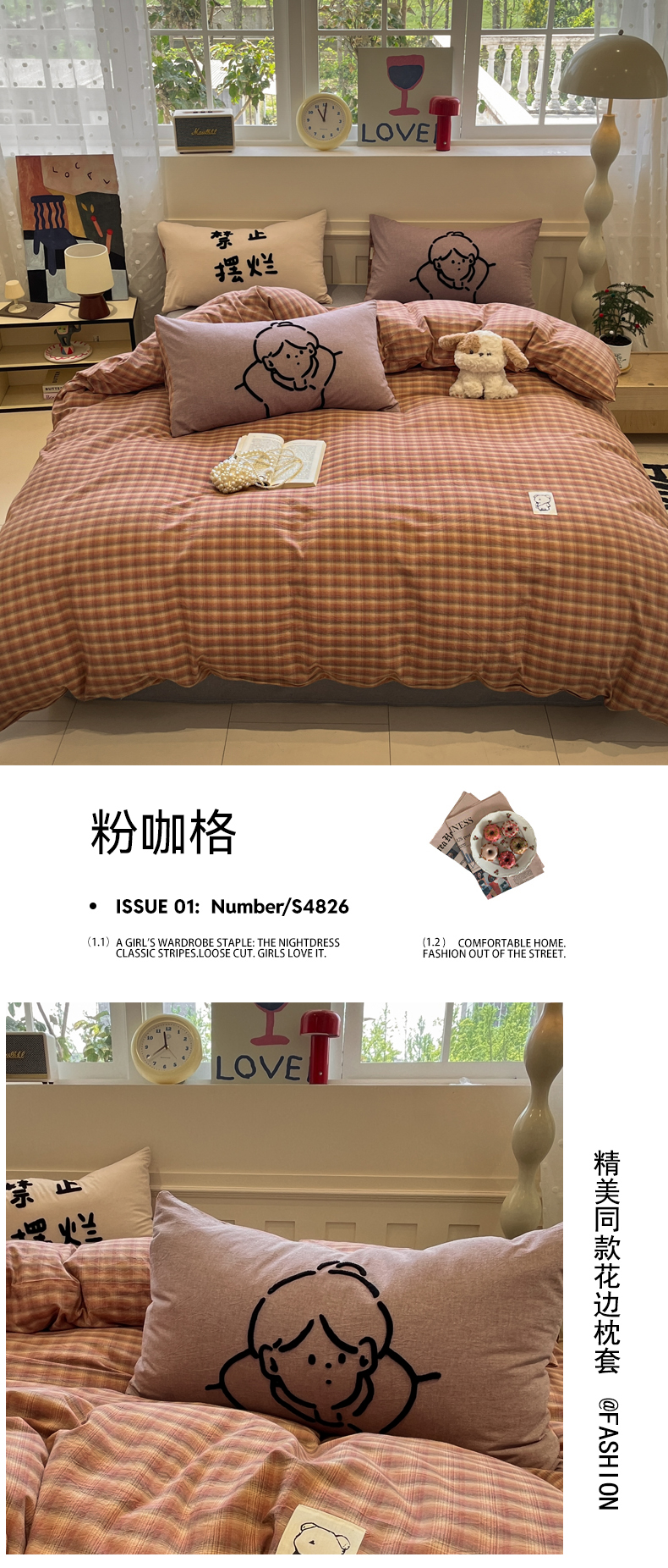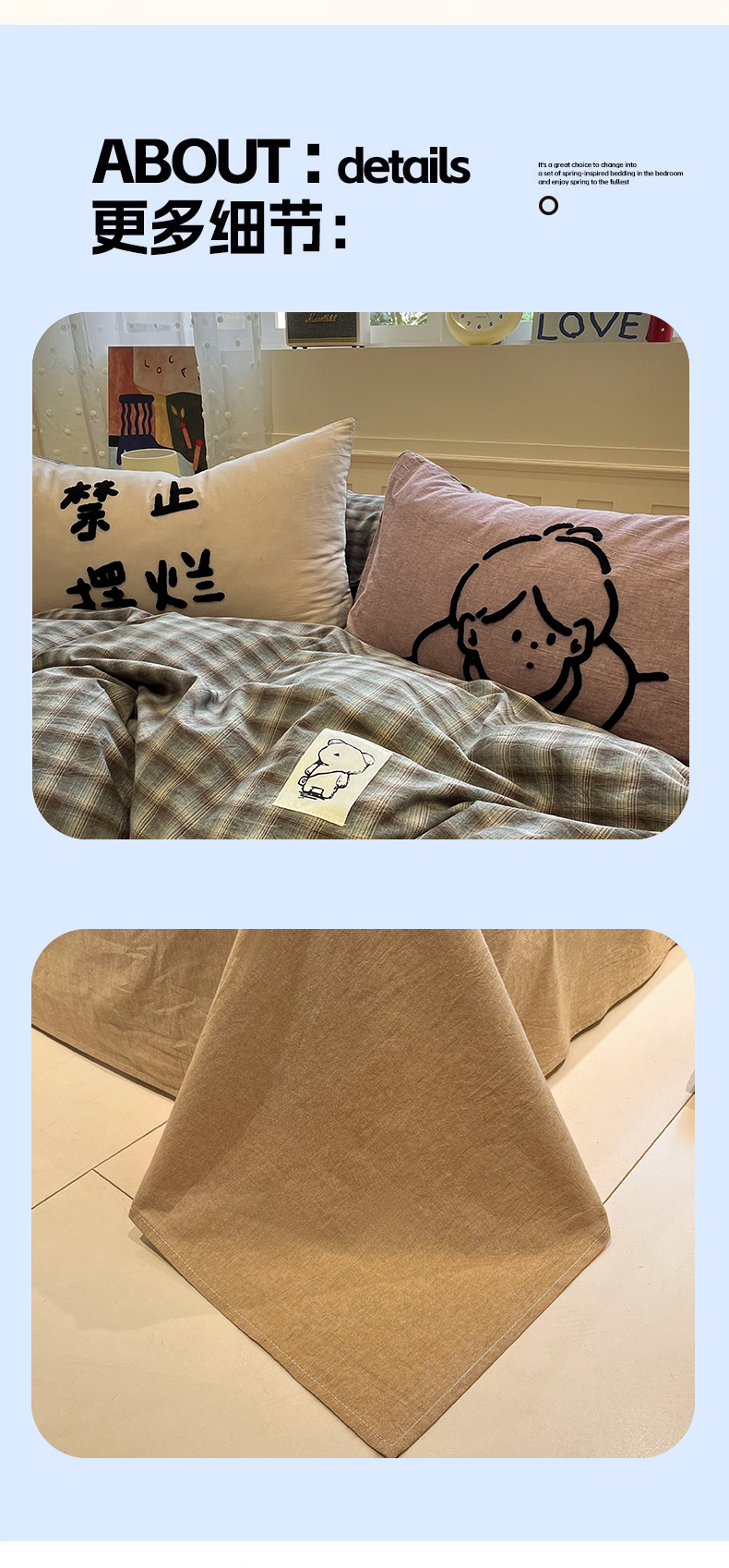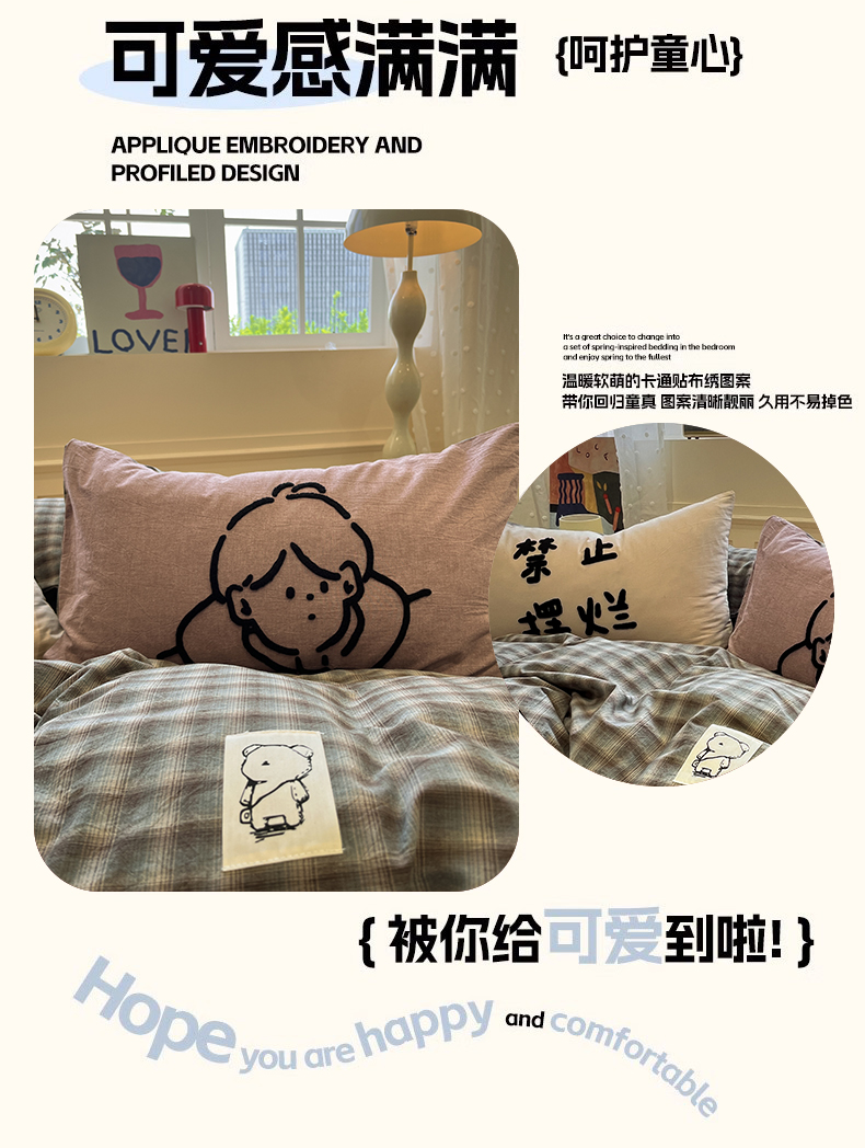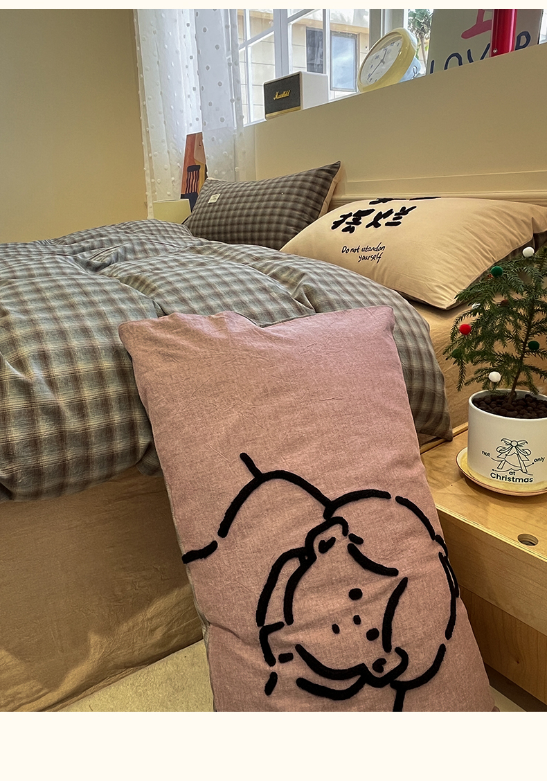 当前位置: 91家纺网 > 商品网购 > 床品套件 > 四件套 > 全棉普通四件套 > 花漾家居 2026新款无印宿舍简约全棉色织水洗棉毛巾绣四件套 蓝咖格