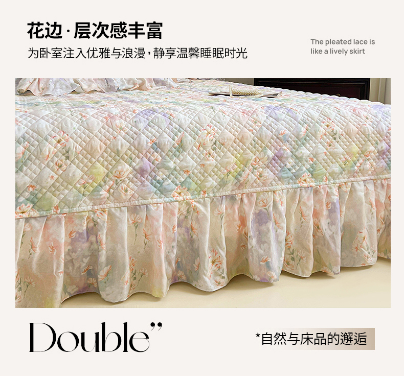 (总)宜凡家纺 2026新款莱赛尔印花夹棉床裙四件套,海棠碎影,海棠听风,兰枝玉树,蓝铃风语,鸢尾幽梦,栀子花年