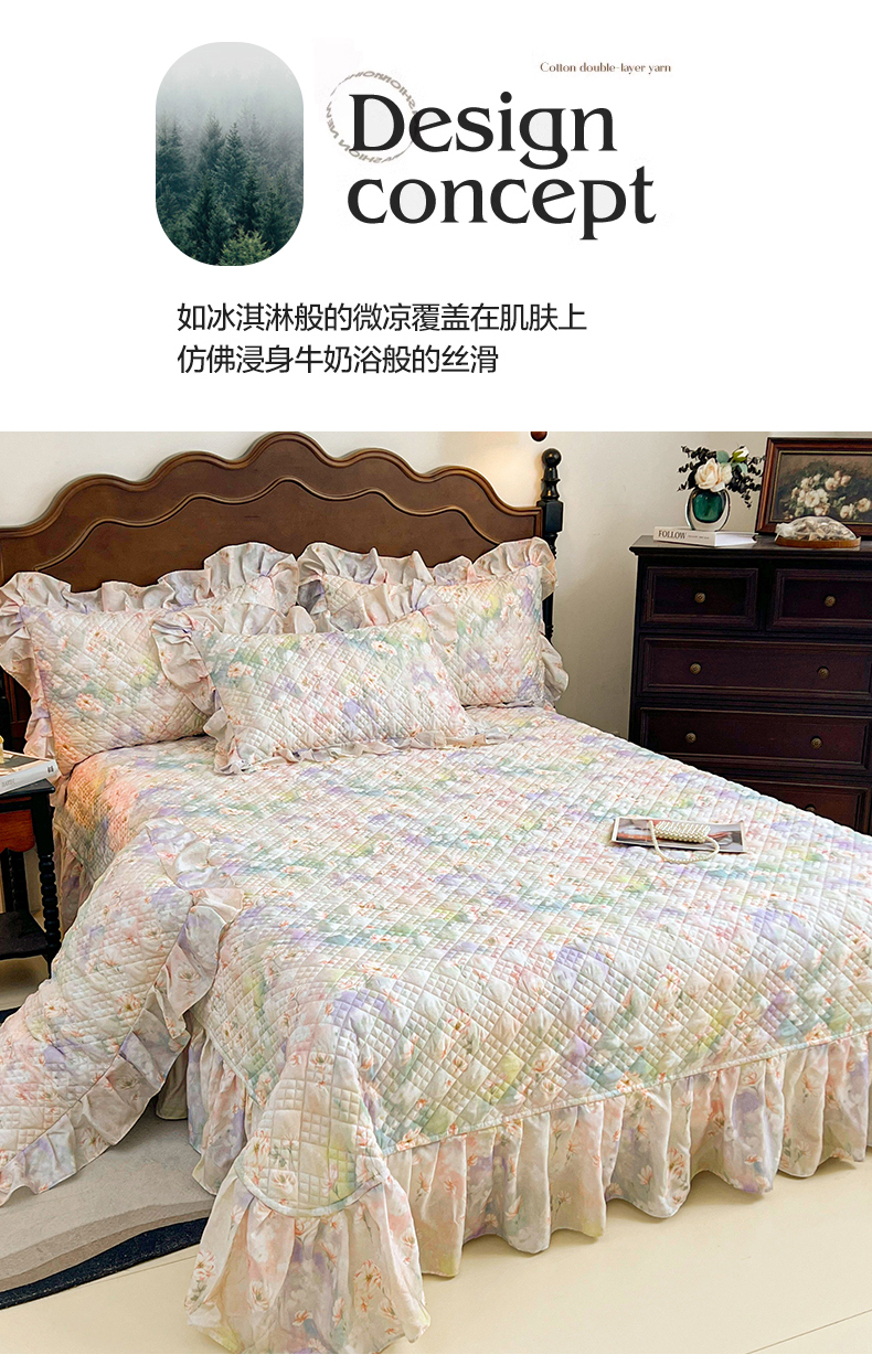 • 91家纺网 家纺一手货源 找家纺 (总)宜凡家纺 2026新款莱赛尔天丝印花床裙夏被四件套,海棠碎影,海棠听风,兰枝玉树,蓝铃风语,鸢尾幽梦,栀子花年