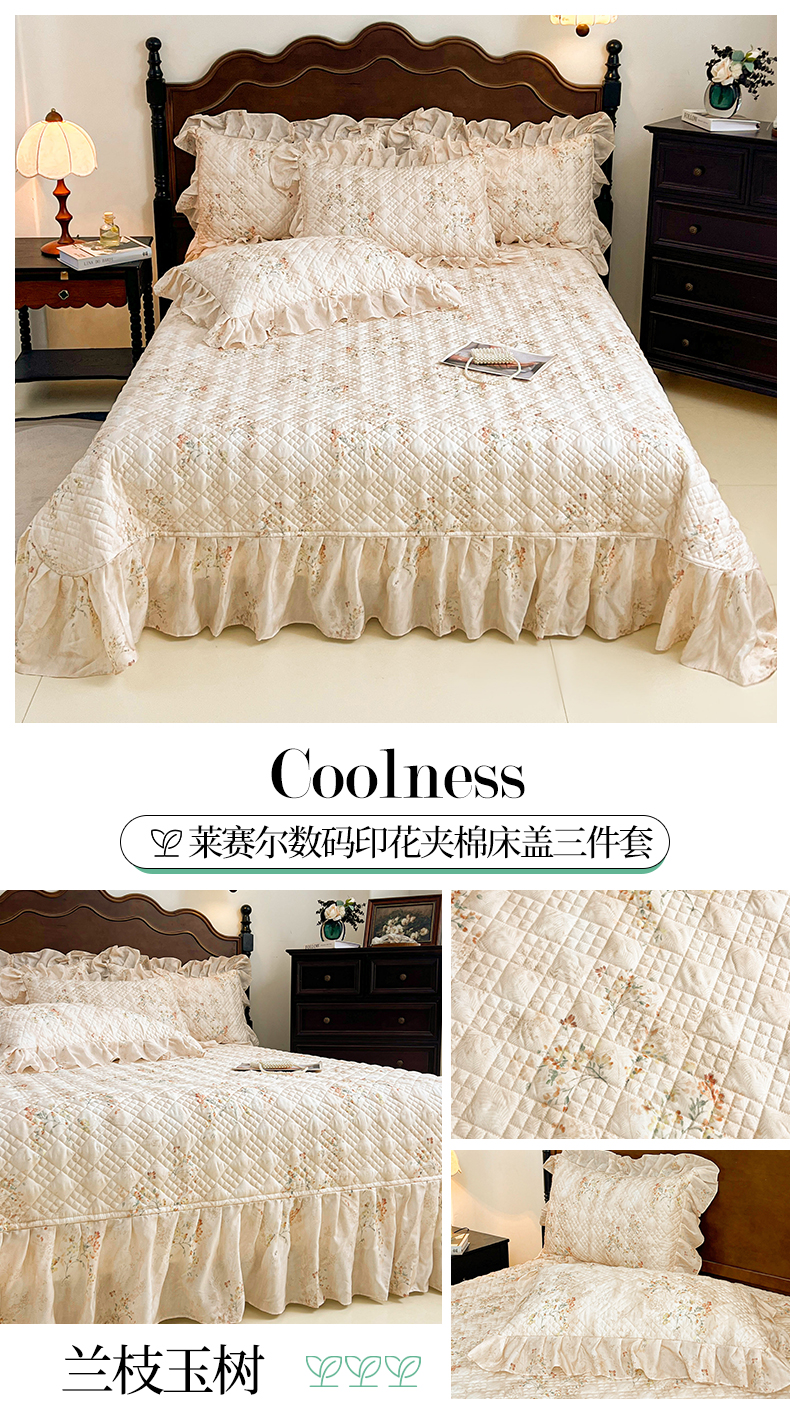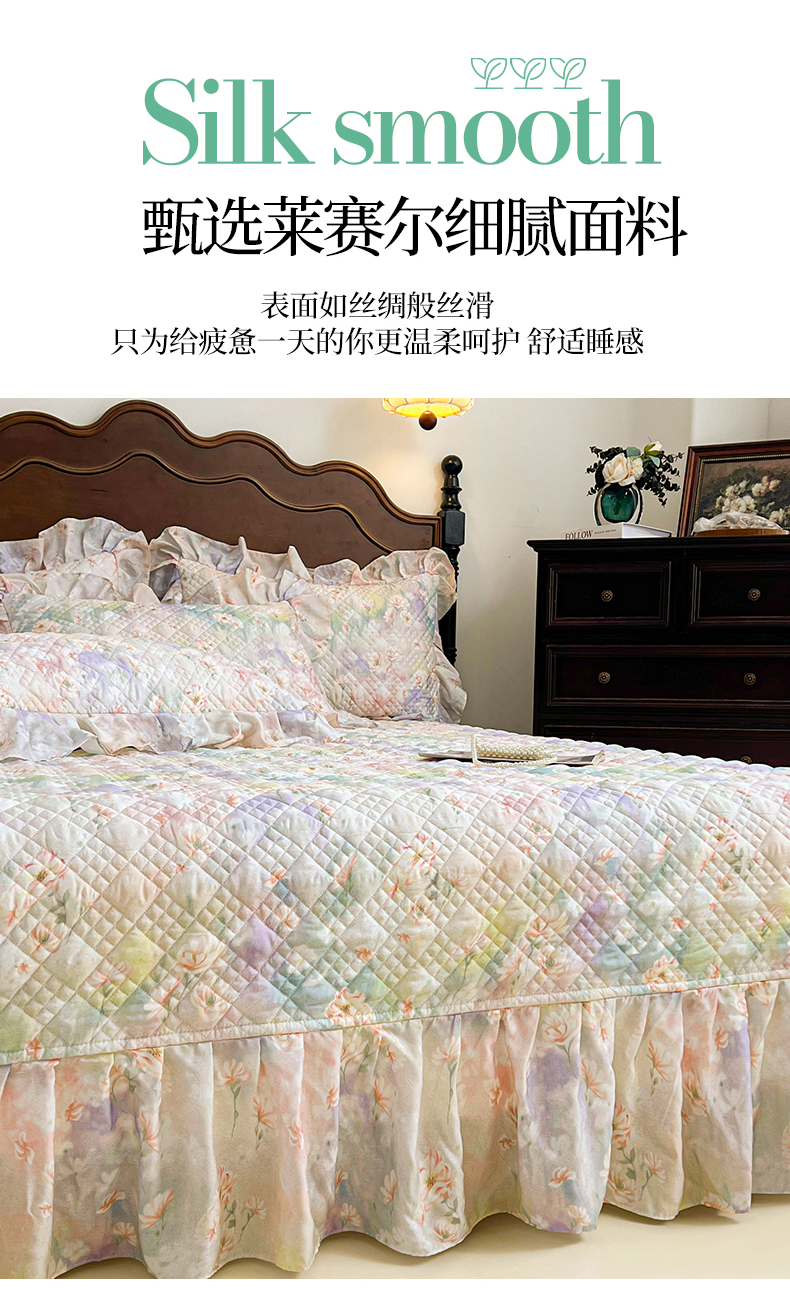 (总)宜凡家纺 2026新款莱赛尔印花夹棉单床裙床裙三件套,海棠碎影,海棠听风,兰枝玉树,蓝铃风语,鸢尾幽梦,栀子花年