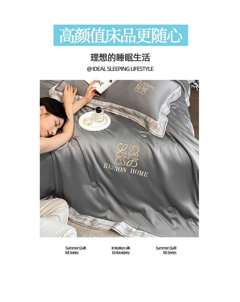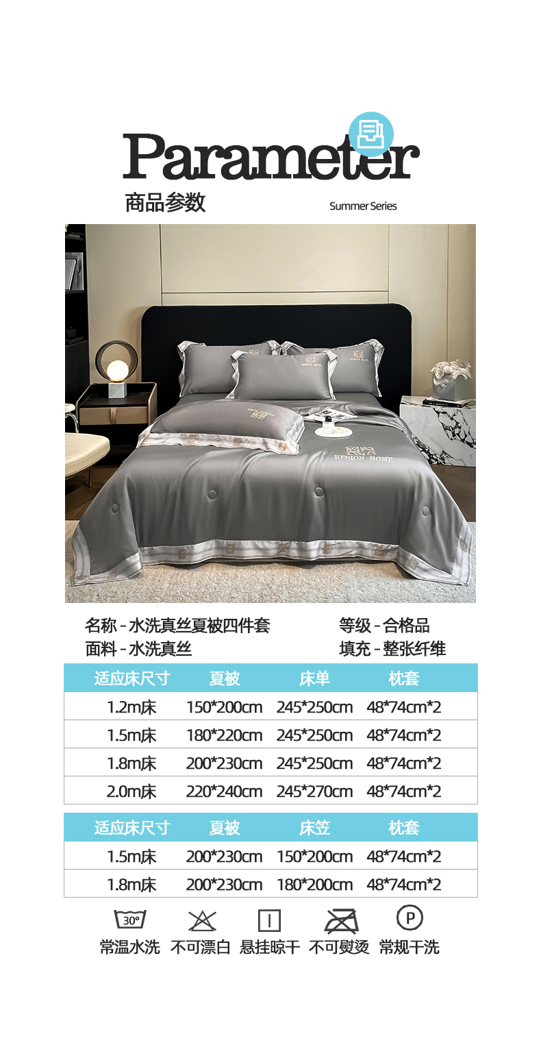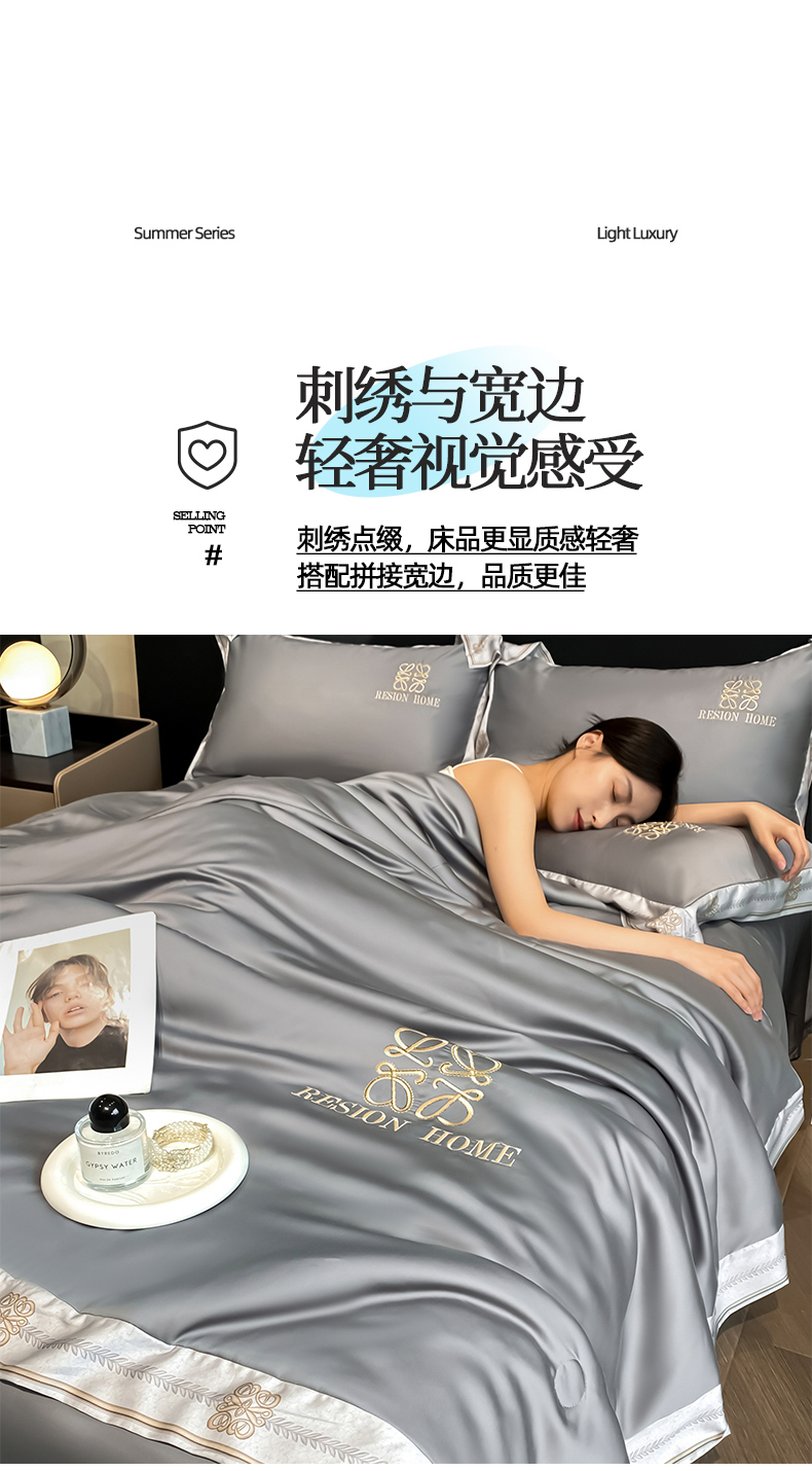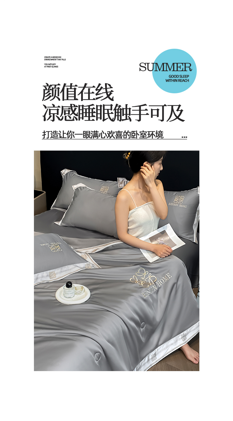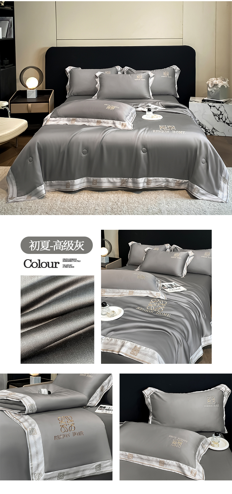 • 91家纺网 家纺一手货源 找家纺 露梦家纺 2026新款初夏水洗真丝夏被四件套 初夏-高级灰