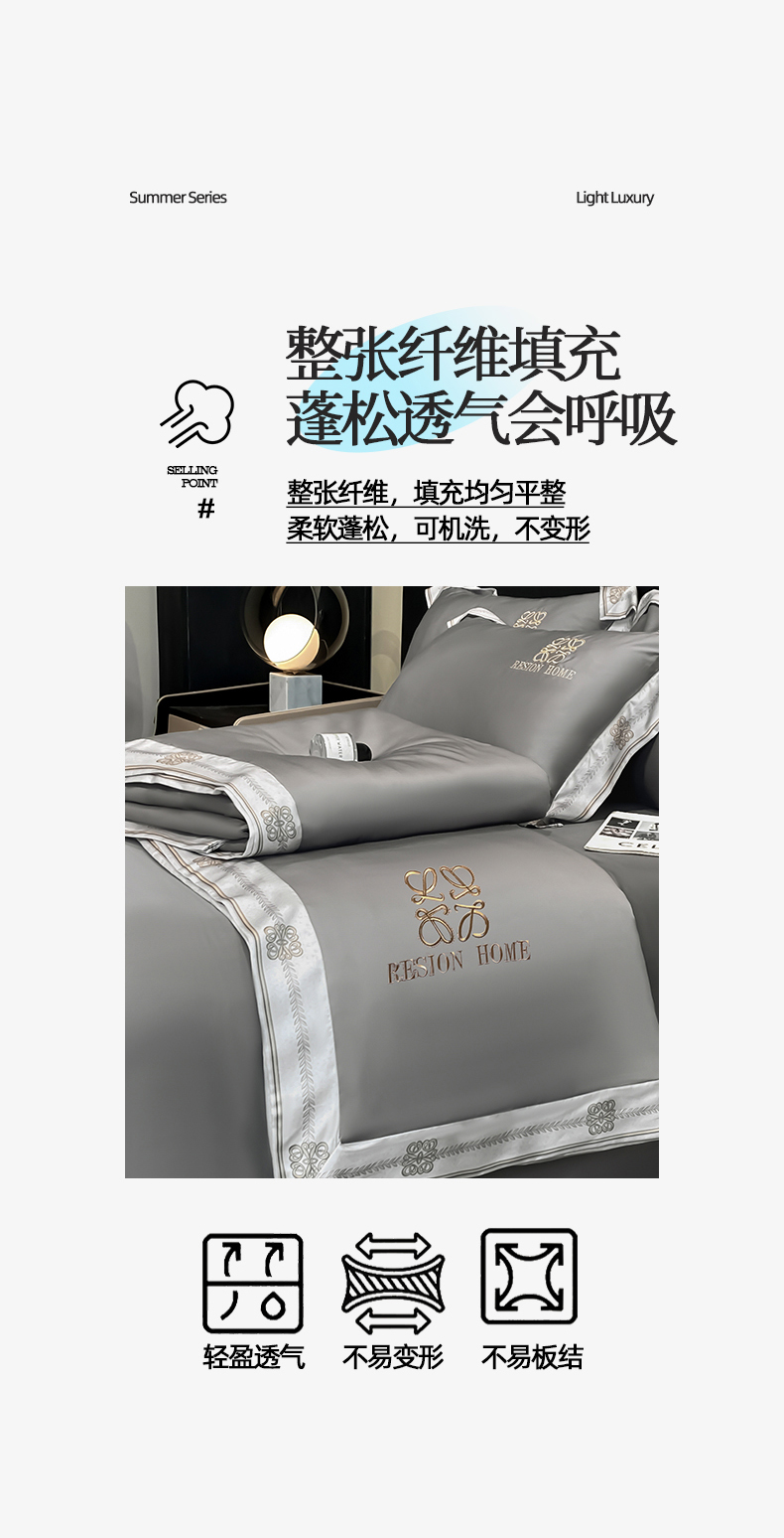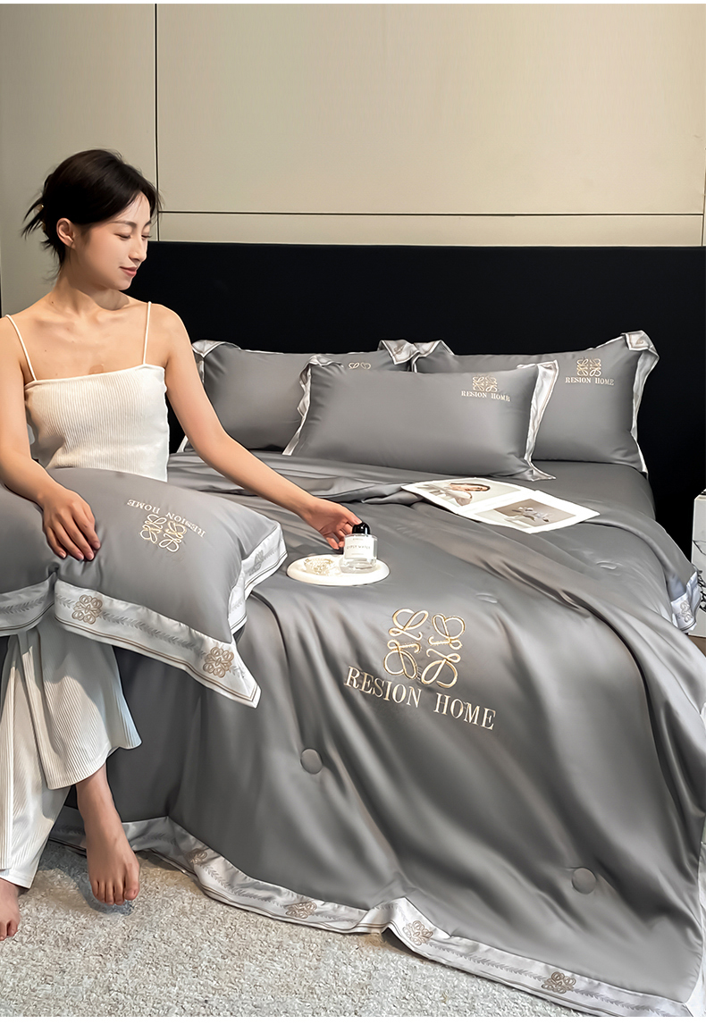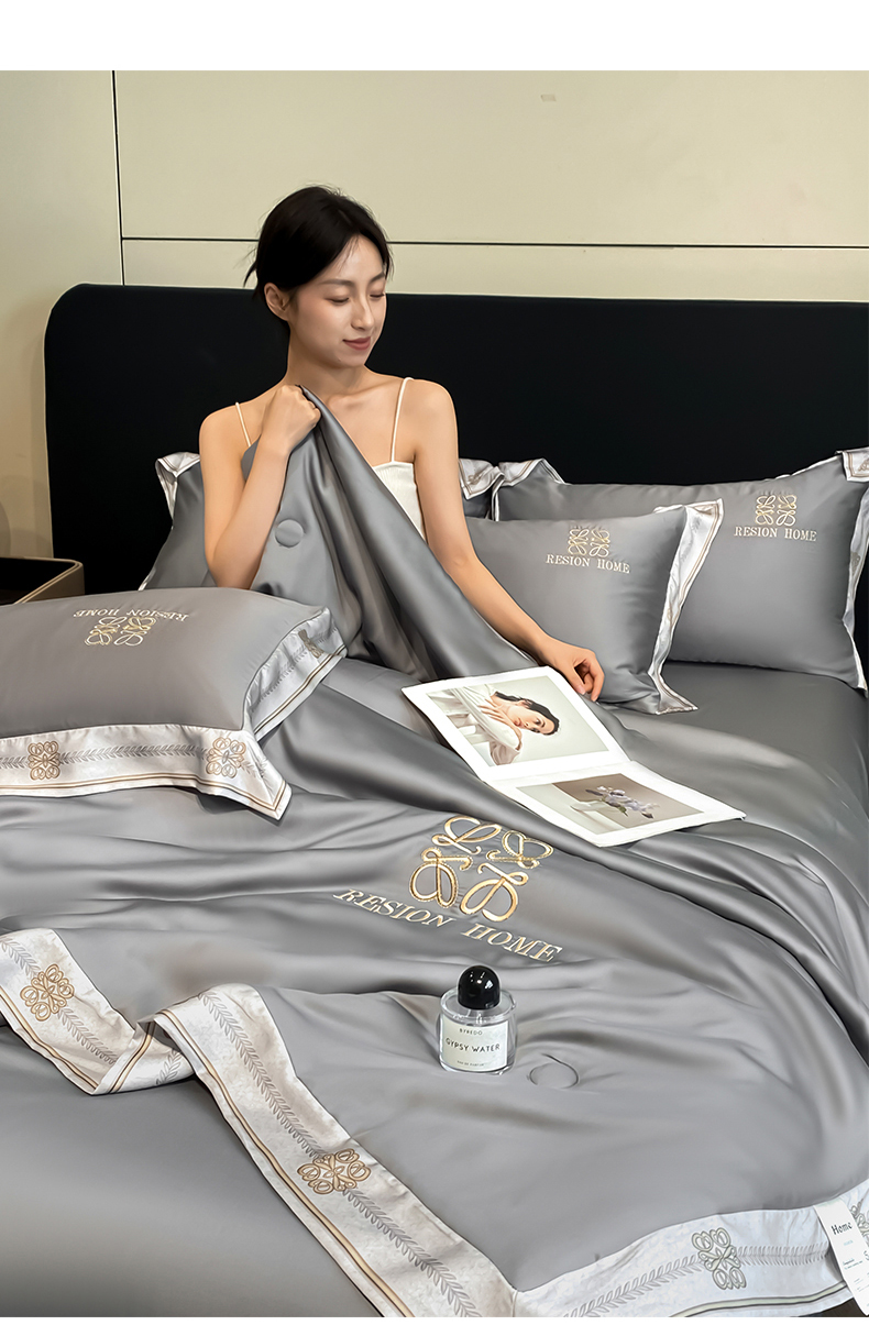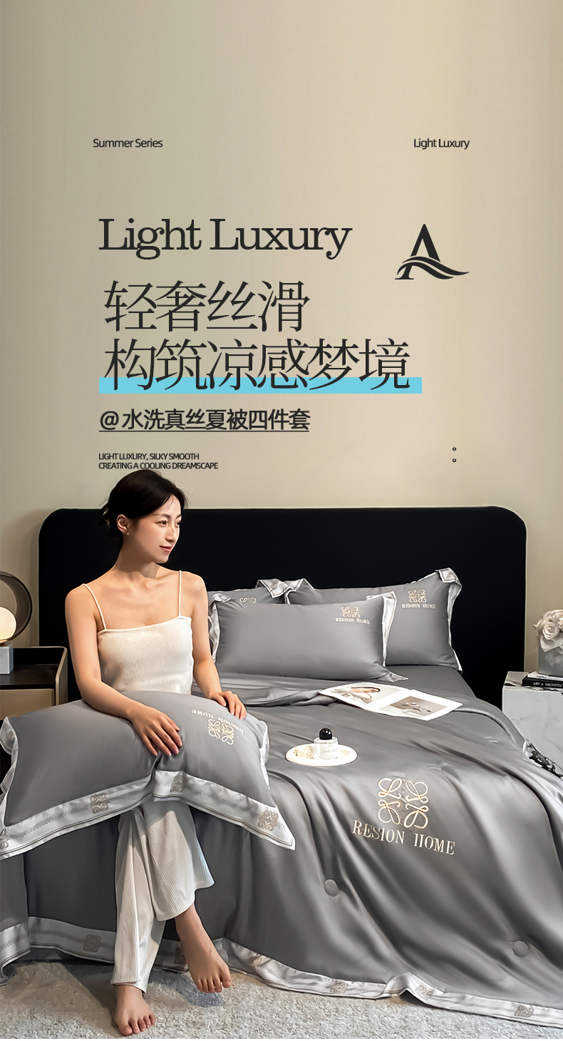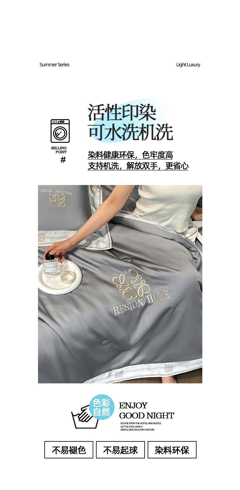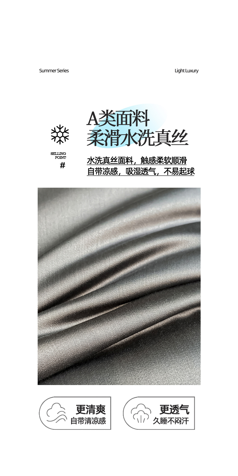 • 91家纺网 家纺一手货源 找家纺 露梦家纺 2026新款初夏水洗真丝夏被四件套 初夏-高级灰