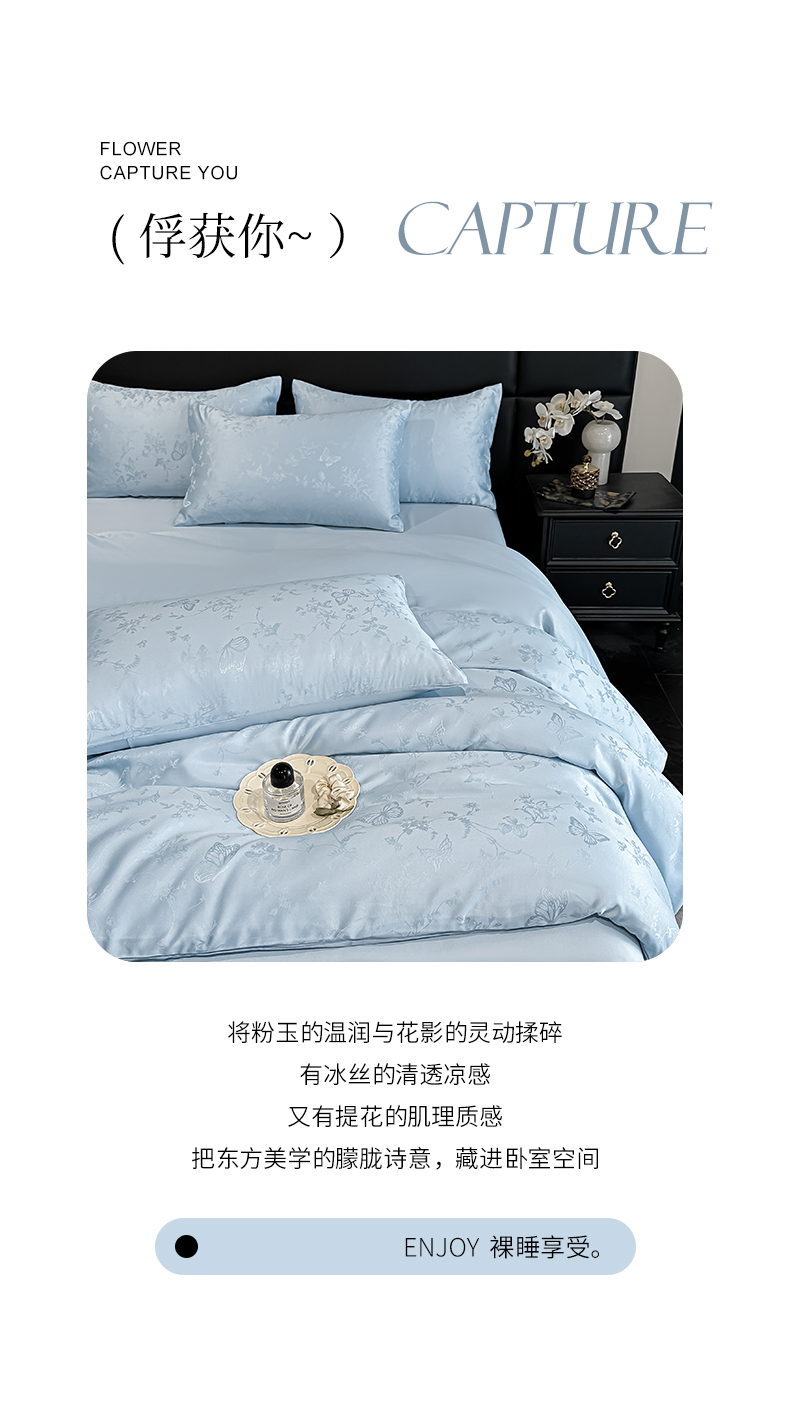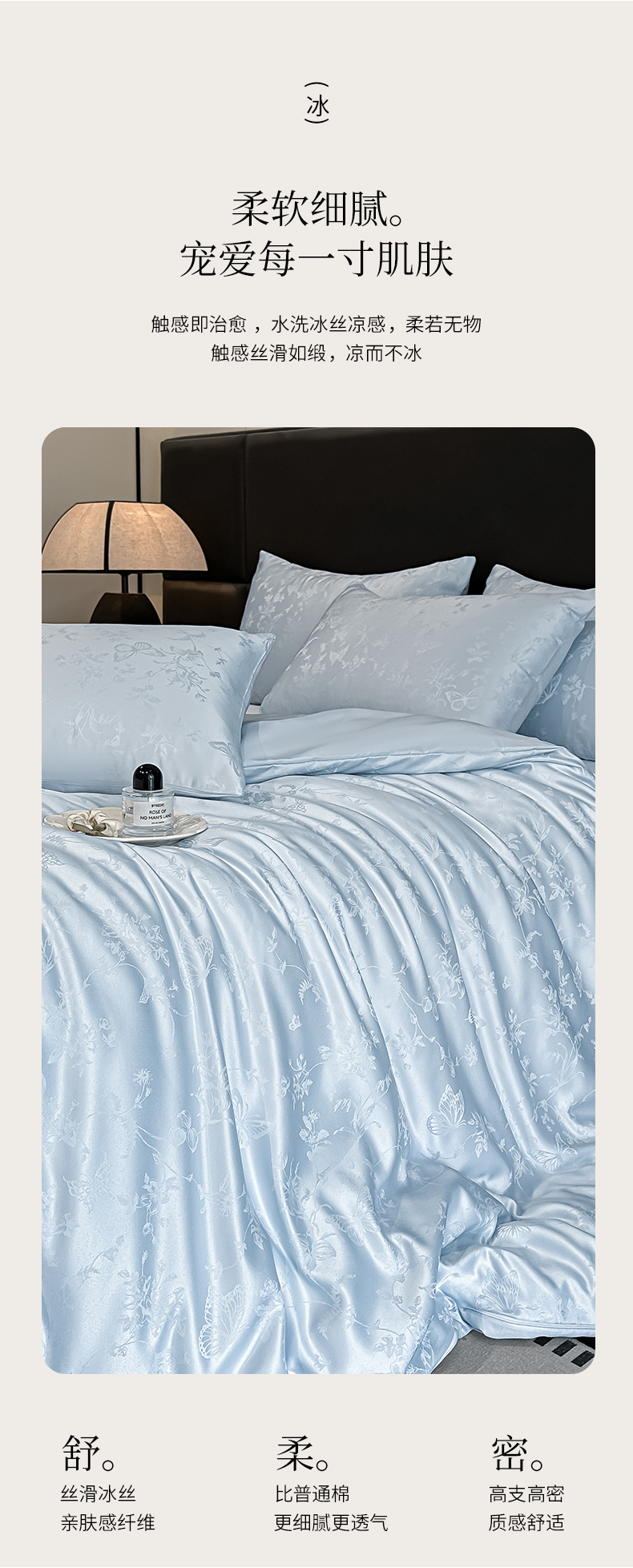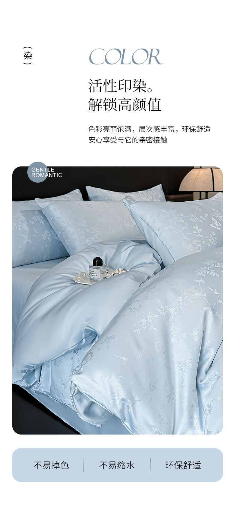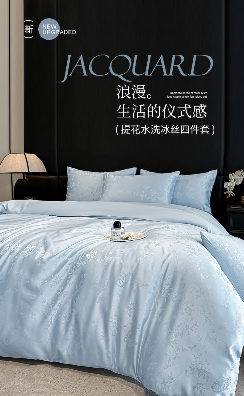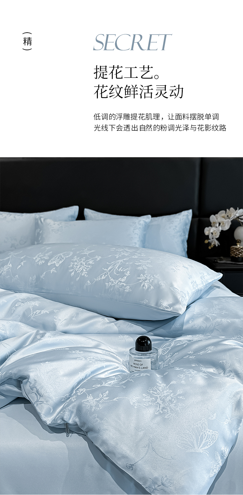 当前位置: 91家纺网 > 商品网购 > 床品套件 > 四件套 > 其它四件套 > 顺兴家居 2026新款提花水洗真丝四件套 雾中花影-天蓝