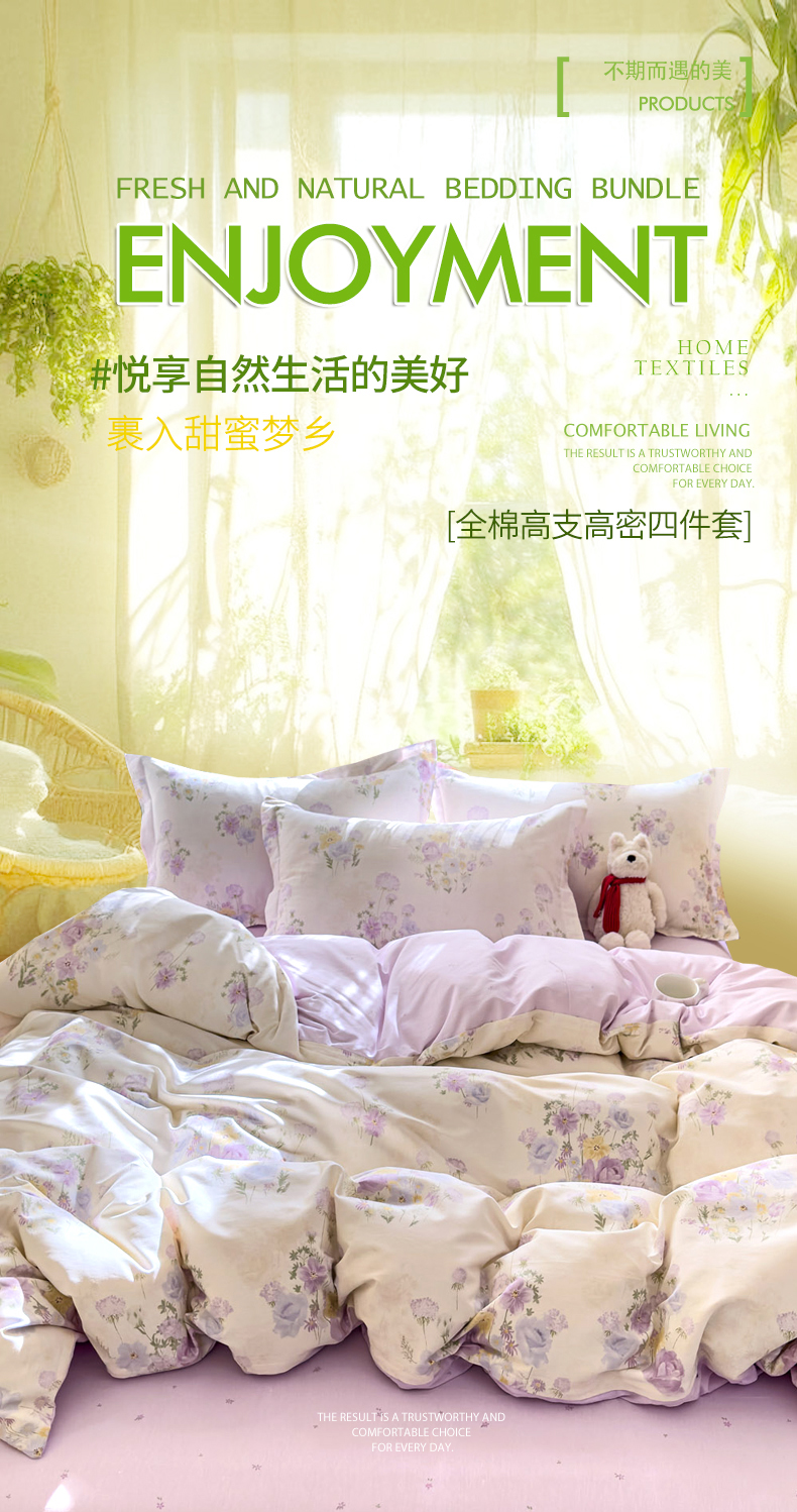 当前位置: 91家纺网 > 商品网购 > 床品套件 > 四件套 > 全棉普通四件套 > 洺兰家居 2026新款全棉纯棉13070小清新印花四件套 若兰